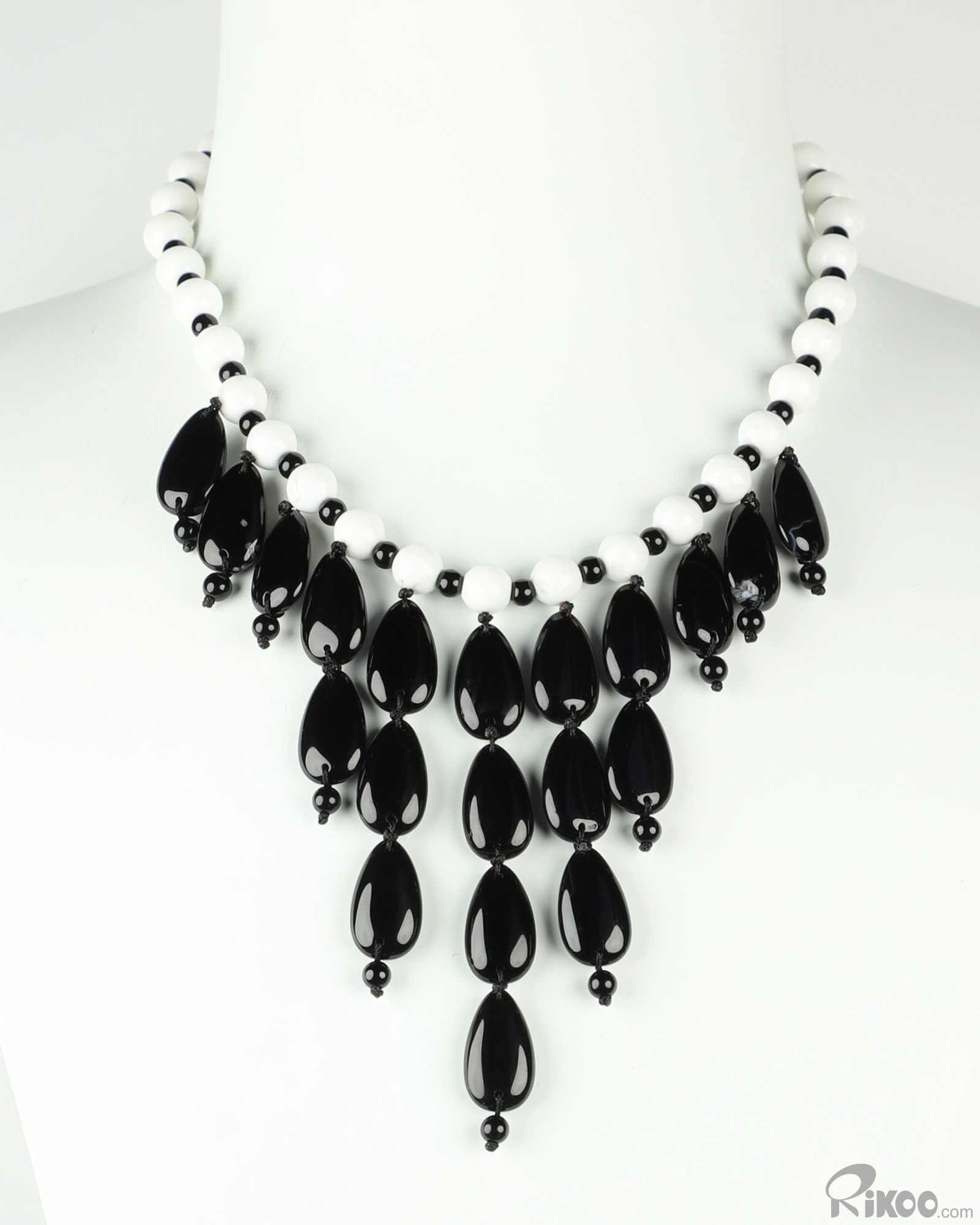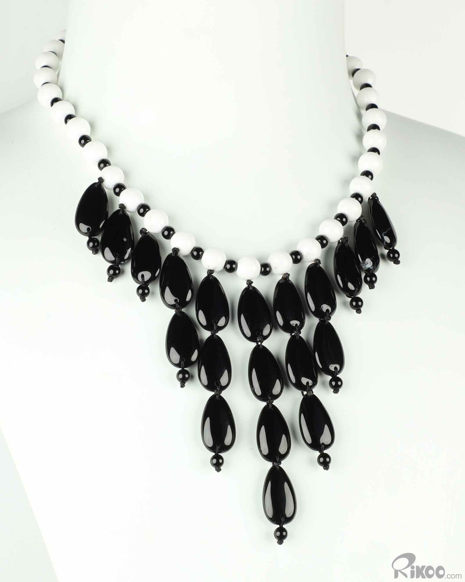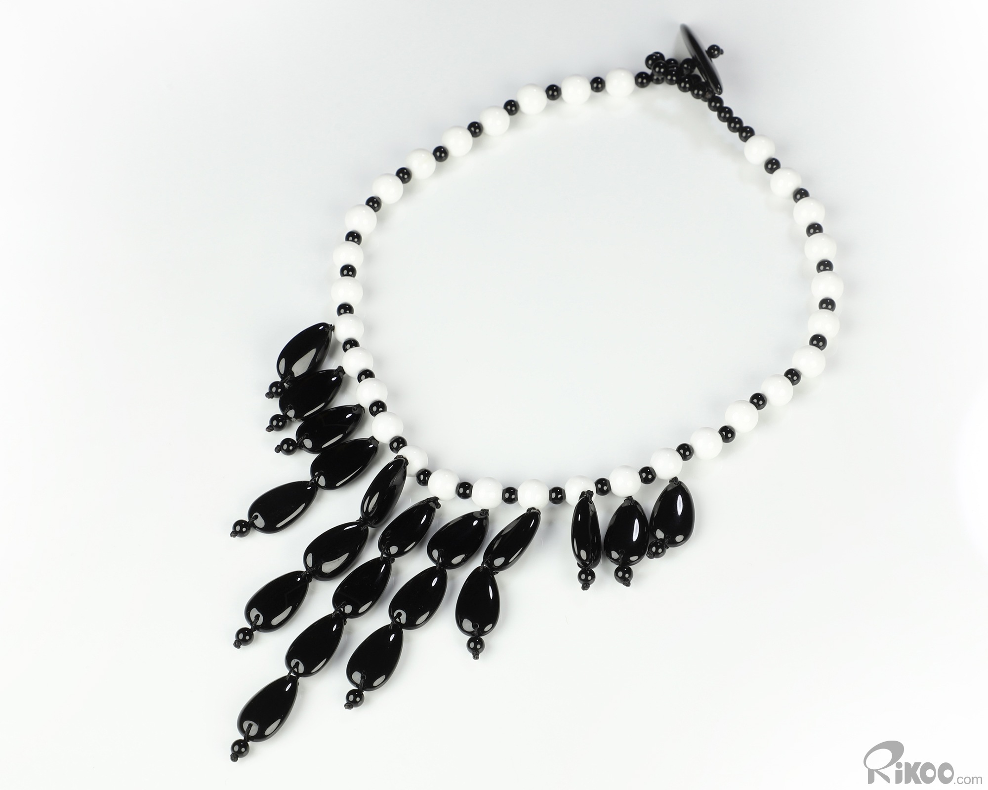 0.7" Black Obsidian and White Jasper Hand Carved Crystal Necklace, Crystal Healing