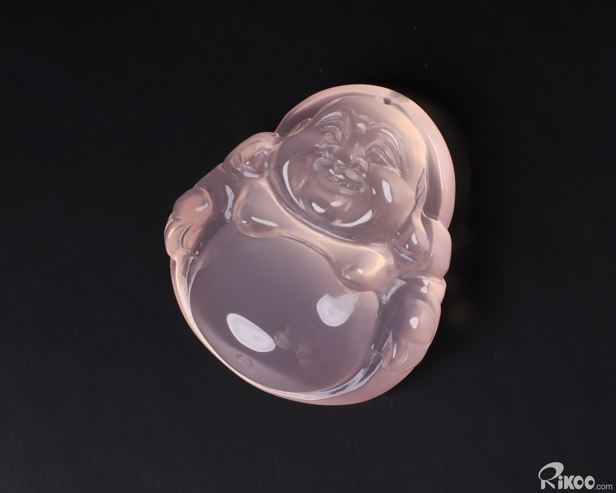 1.1" Rose Quartz Carved Crystal Buddha Pendant, Crystal Healing