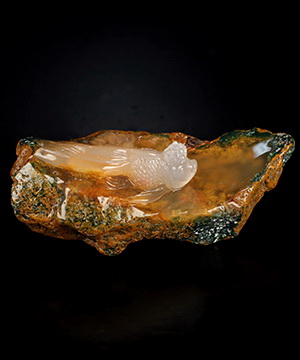 You are looking at an Indian Agate sculpture. The sculpture is 1.3 inches long.