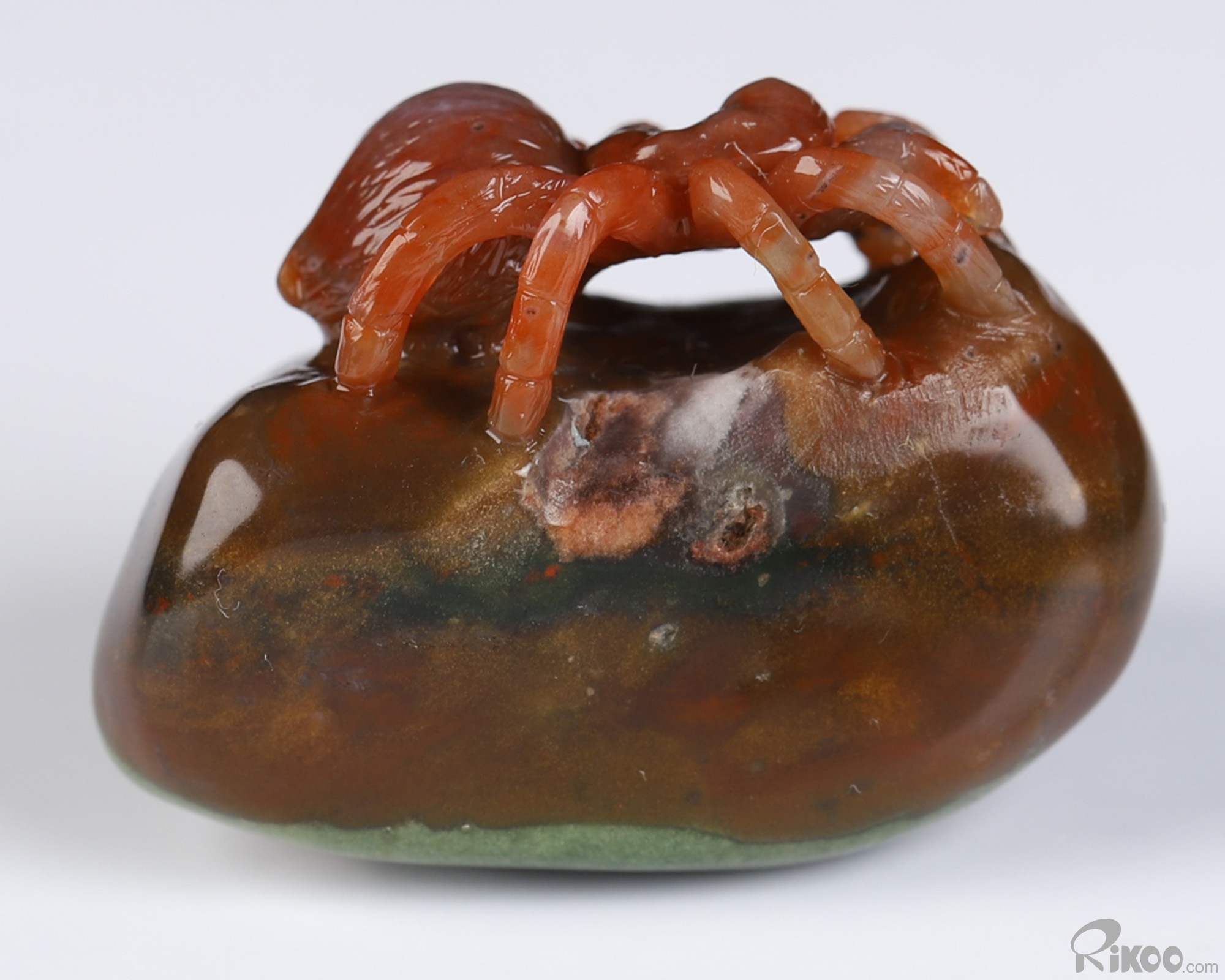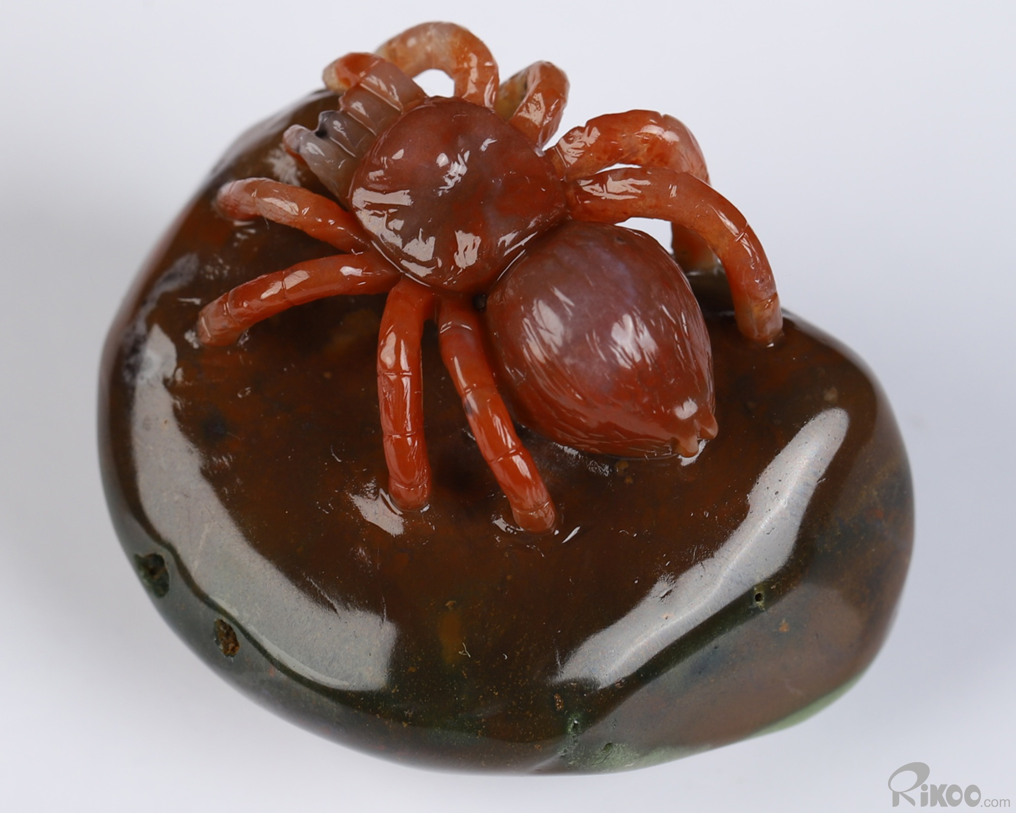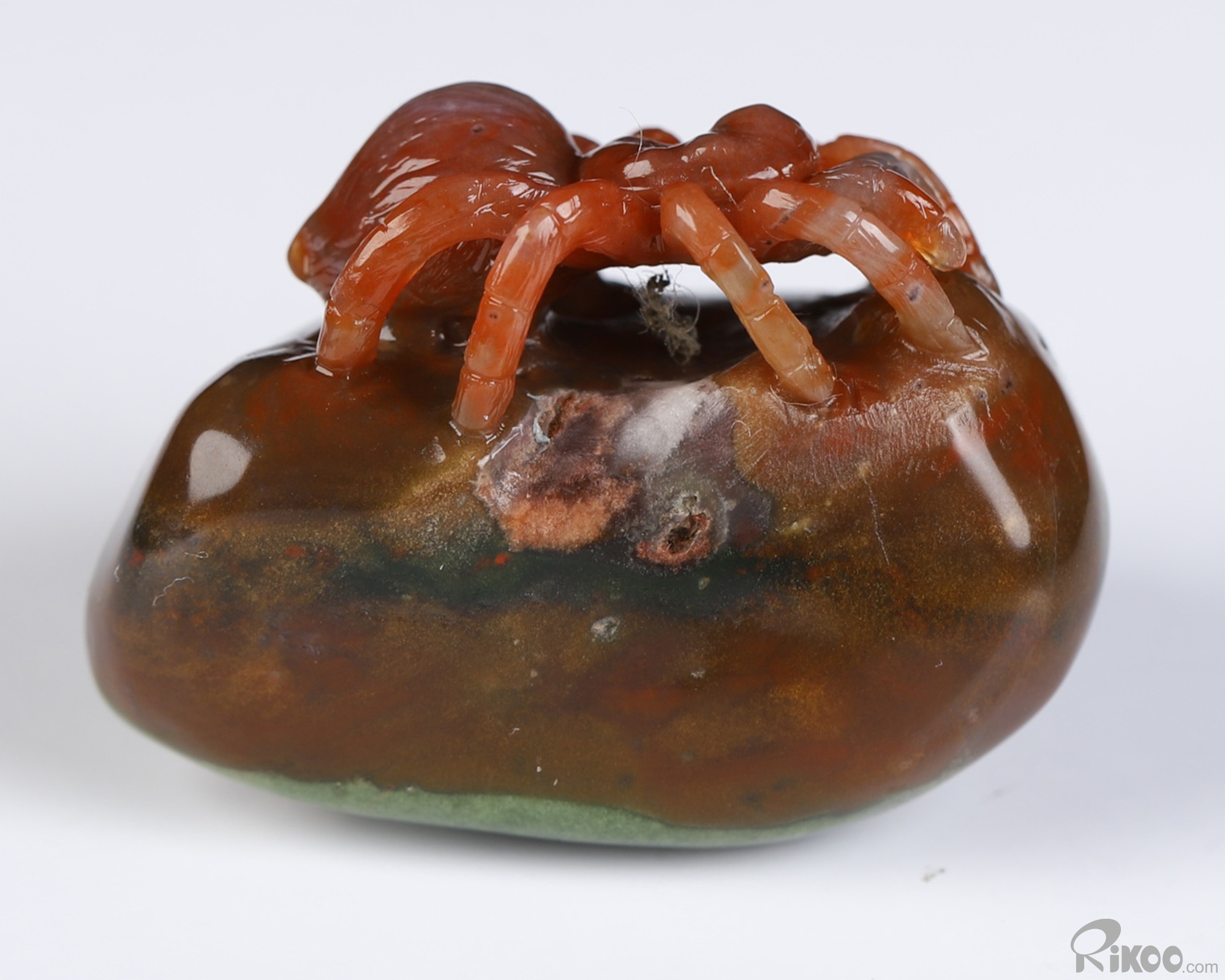 You are looking at a Bloodstone Spider sculpture. The sculpture is 1.4 inches long.