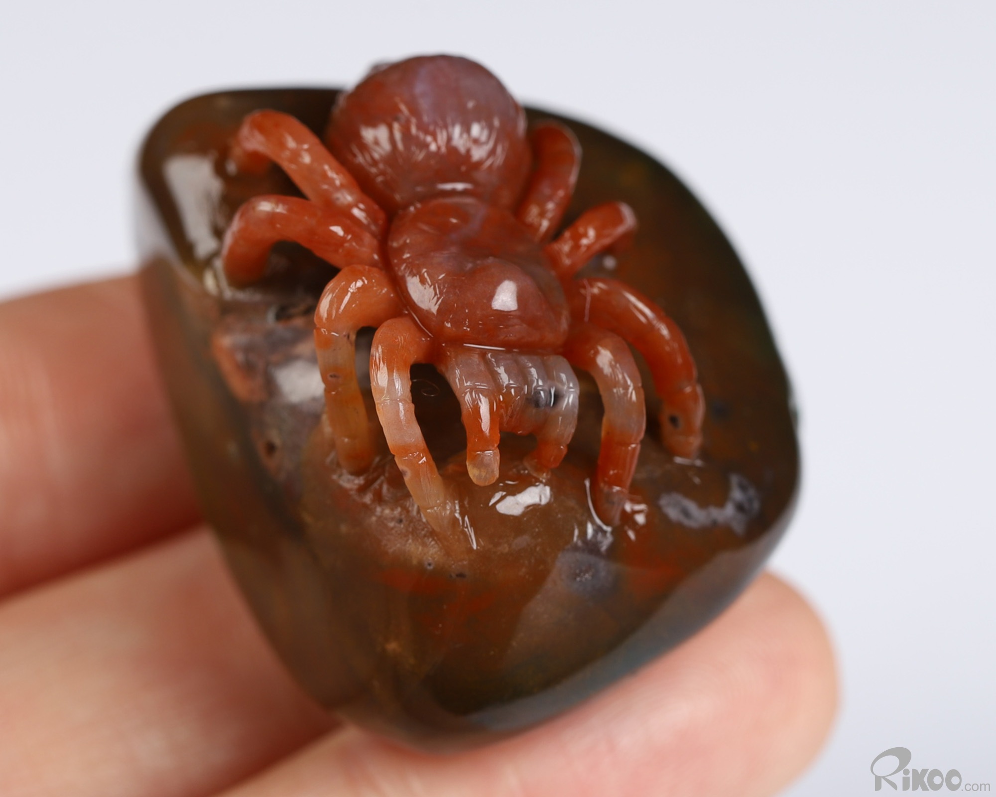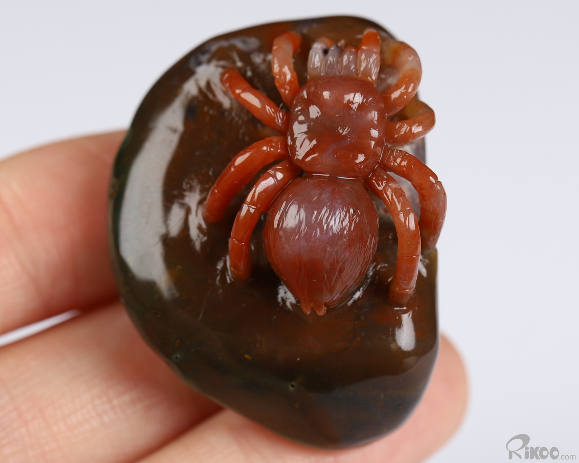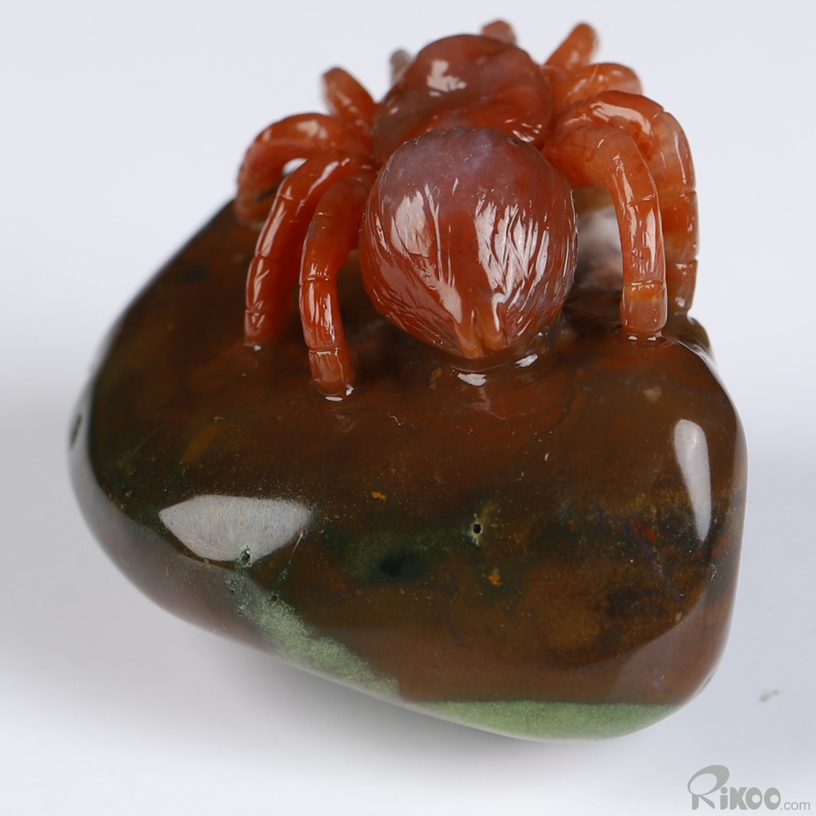 1.4" Bloodstone Hand Carved Crystal Spider Sculpture, Crystal Healing