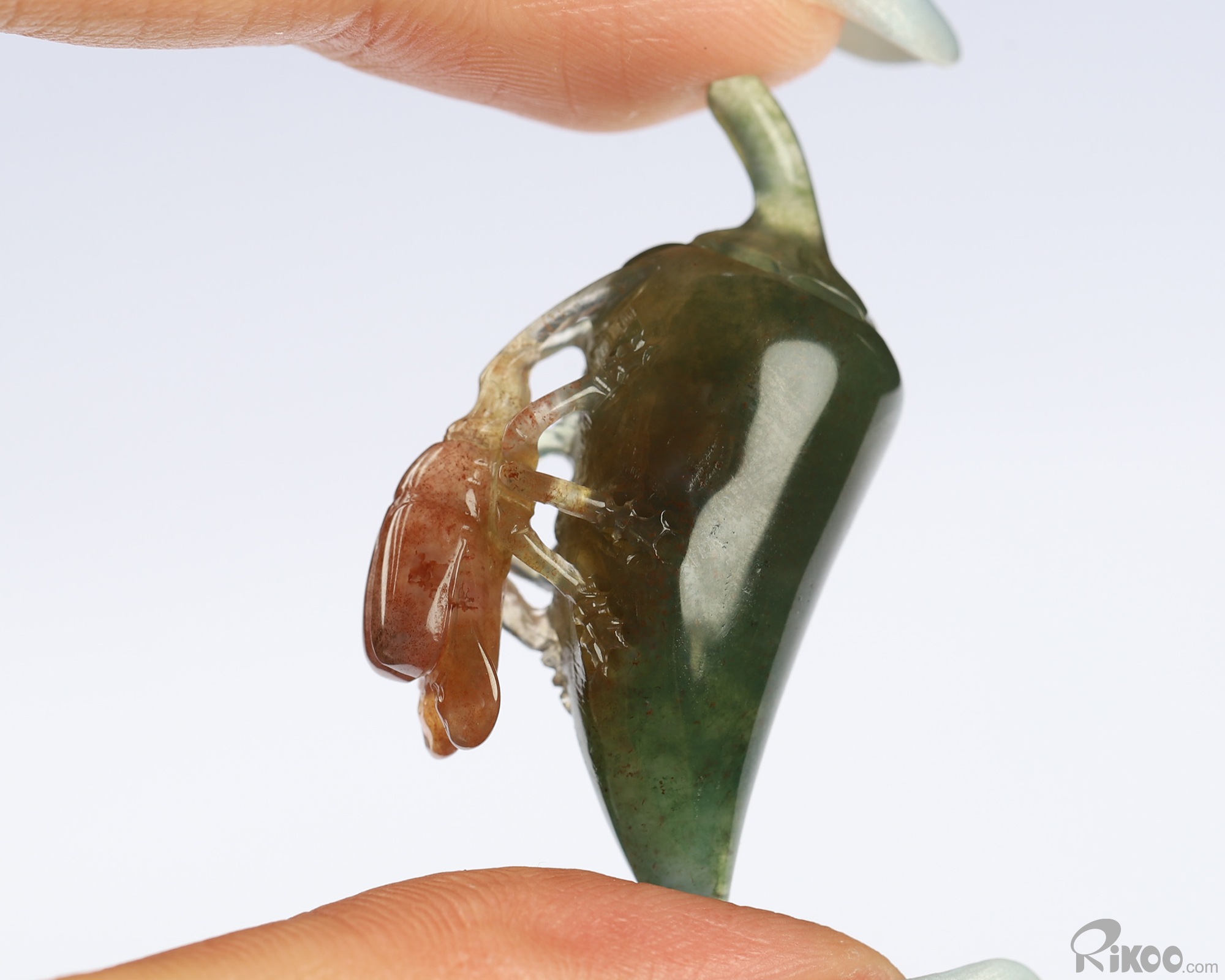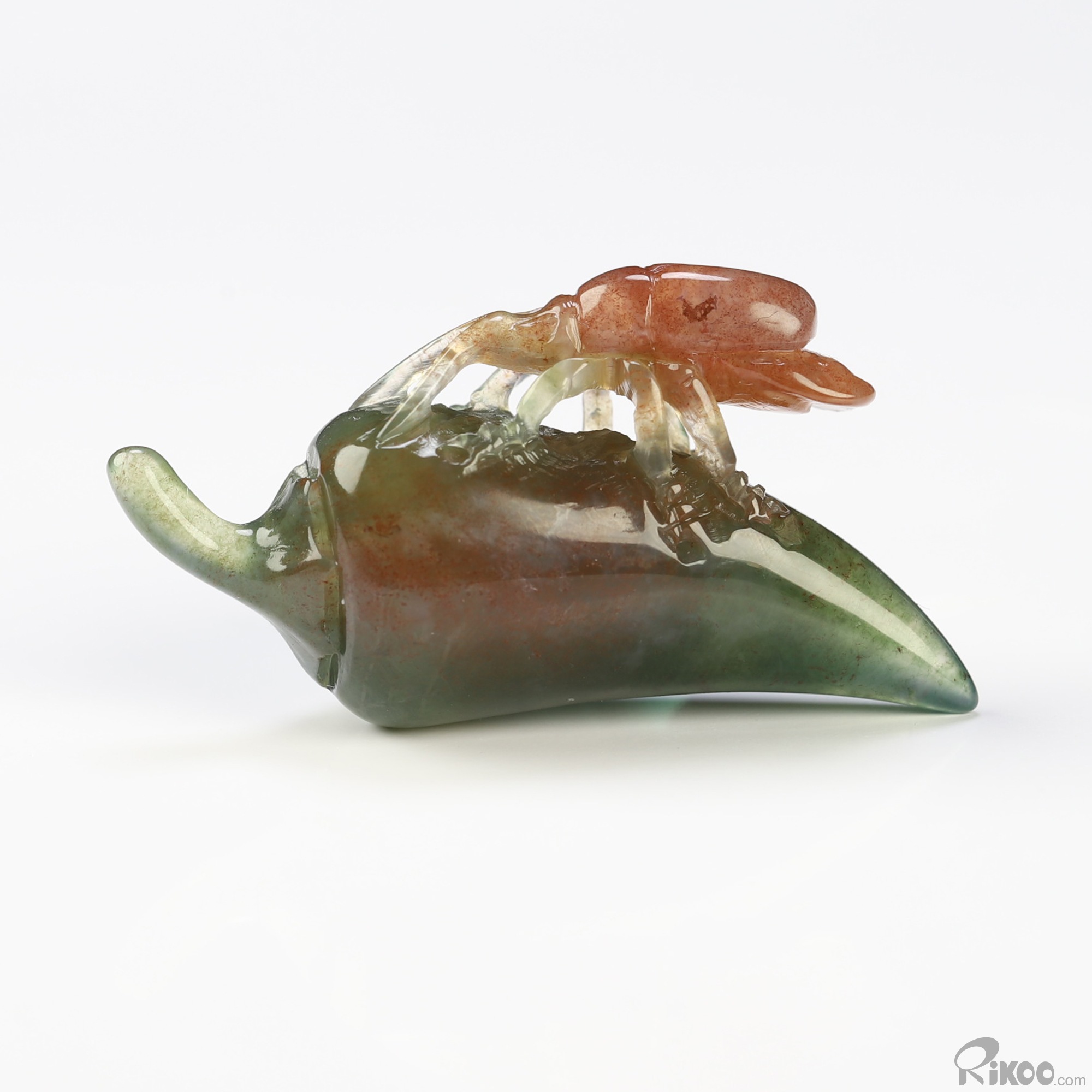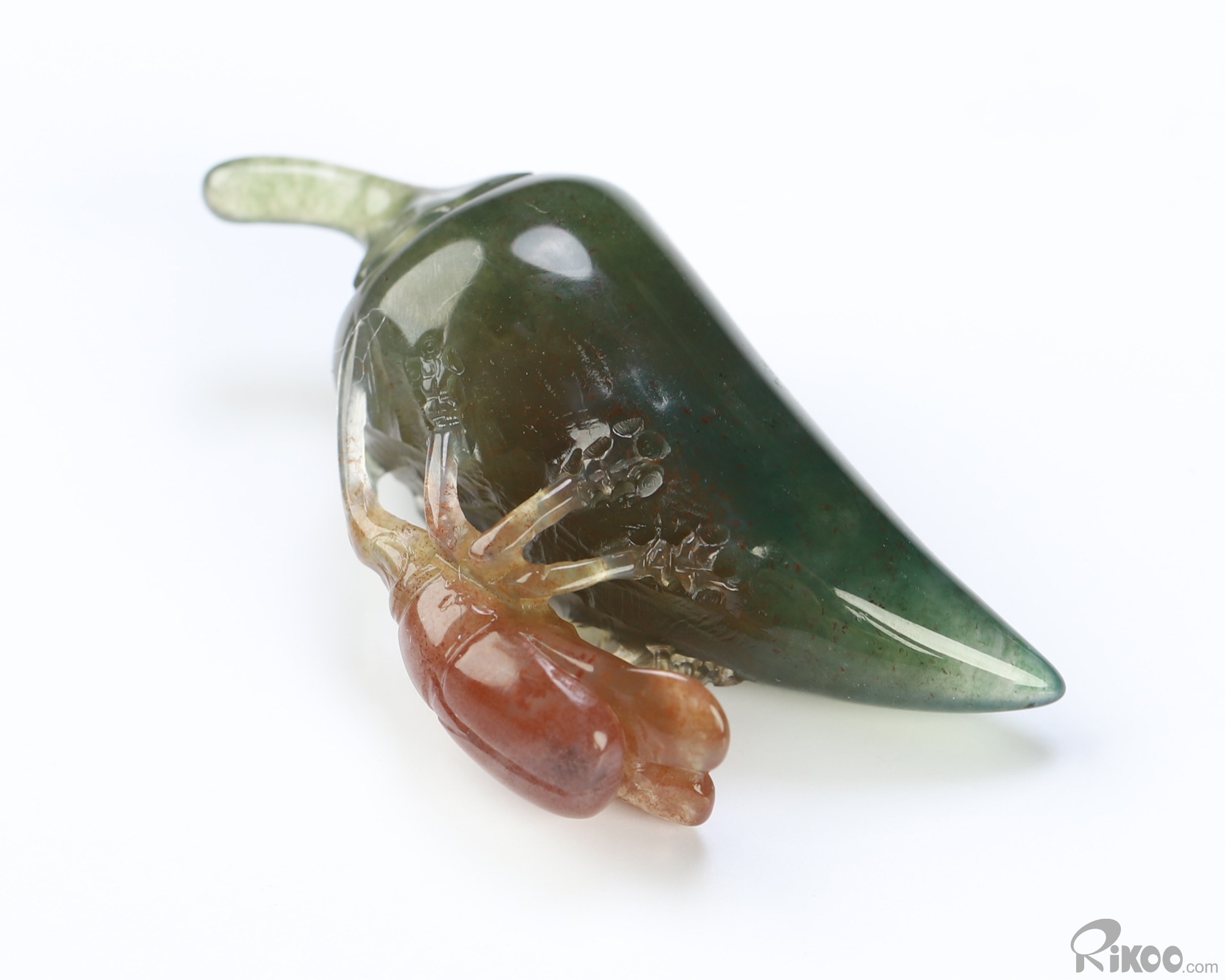 1.4" Indian Agate Hand Carved Crystal Pepper and Cicada Sculpture, Crystal Healing