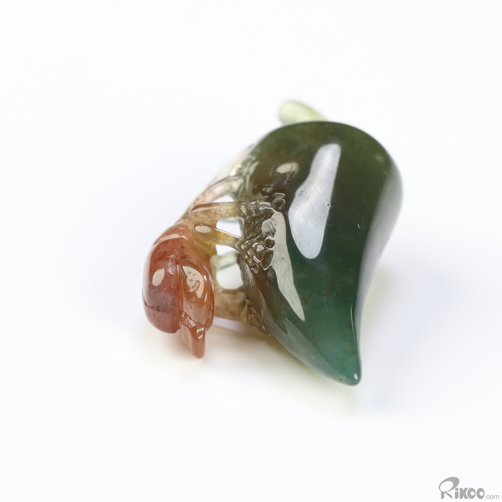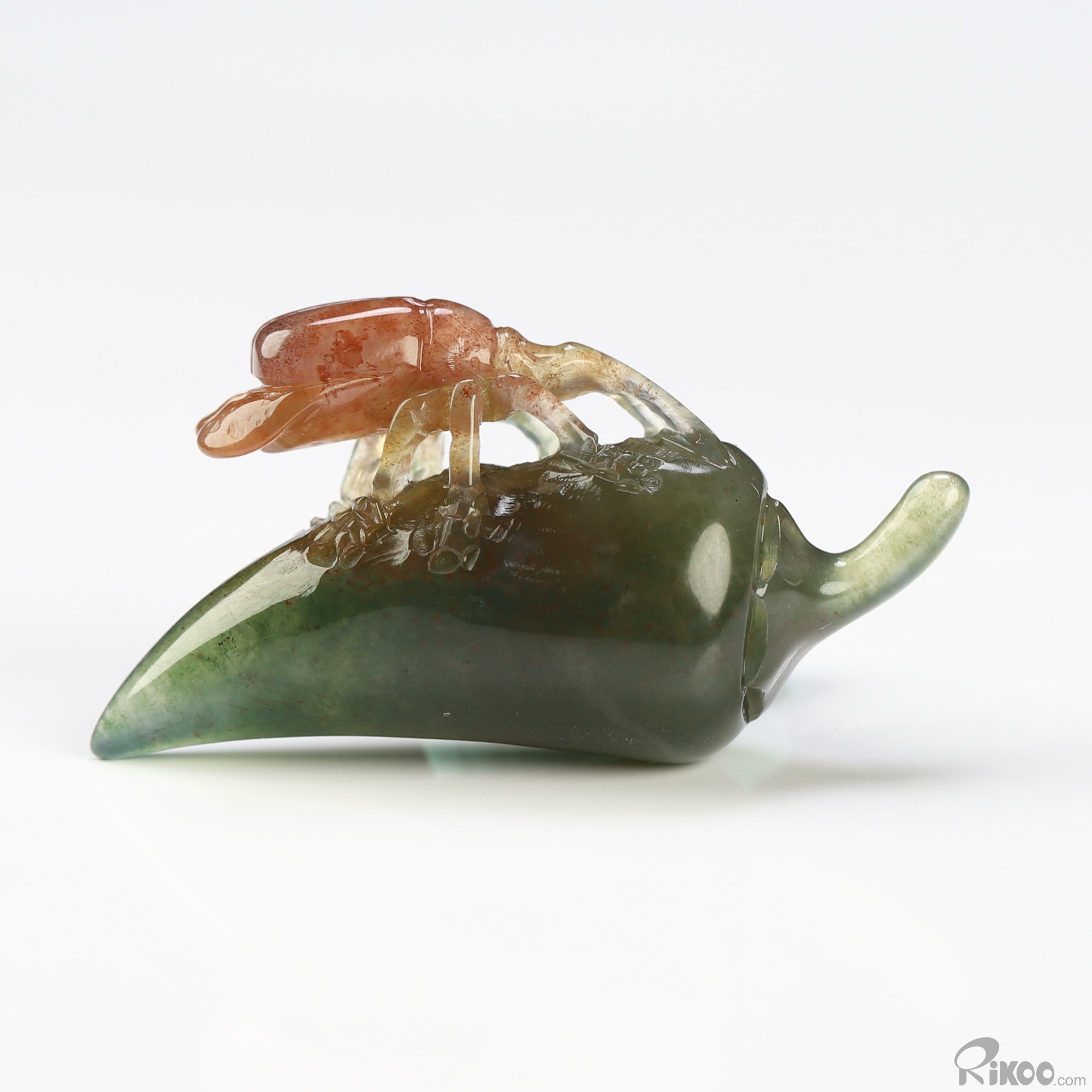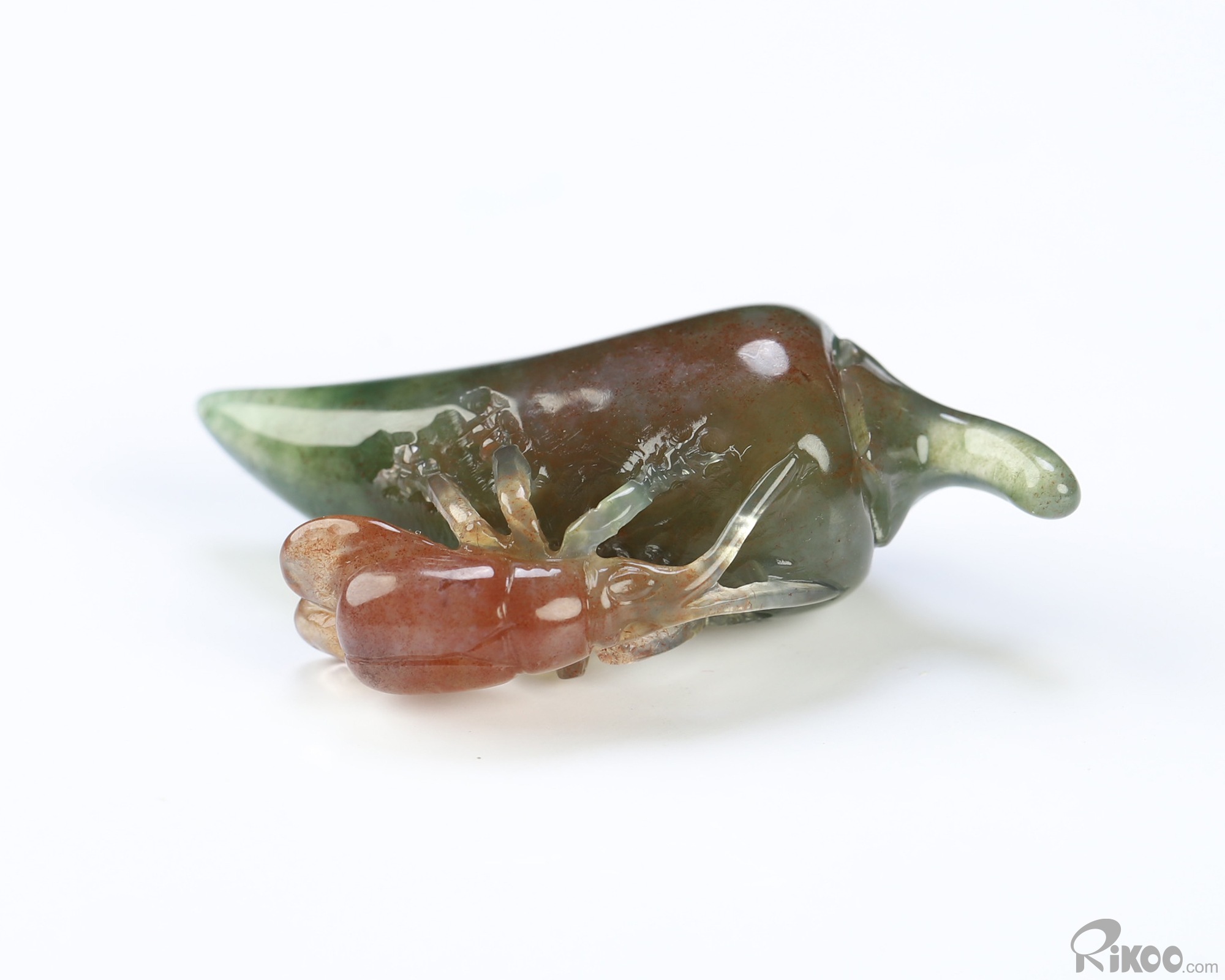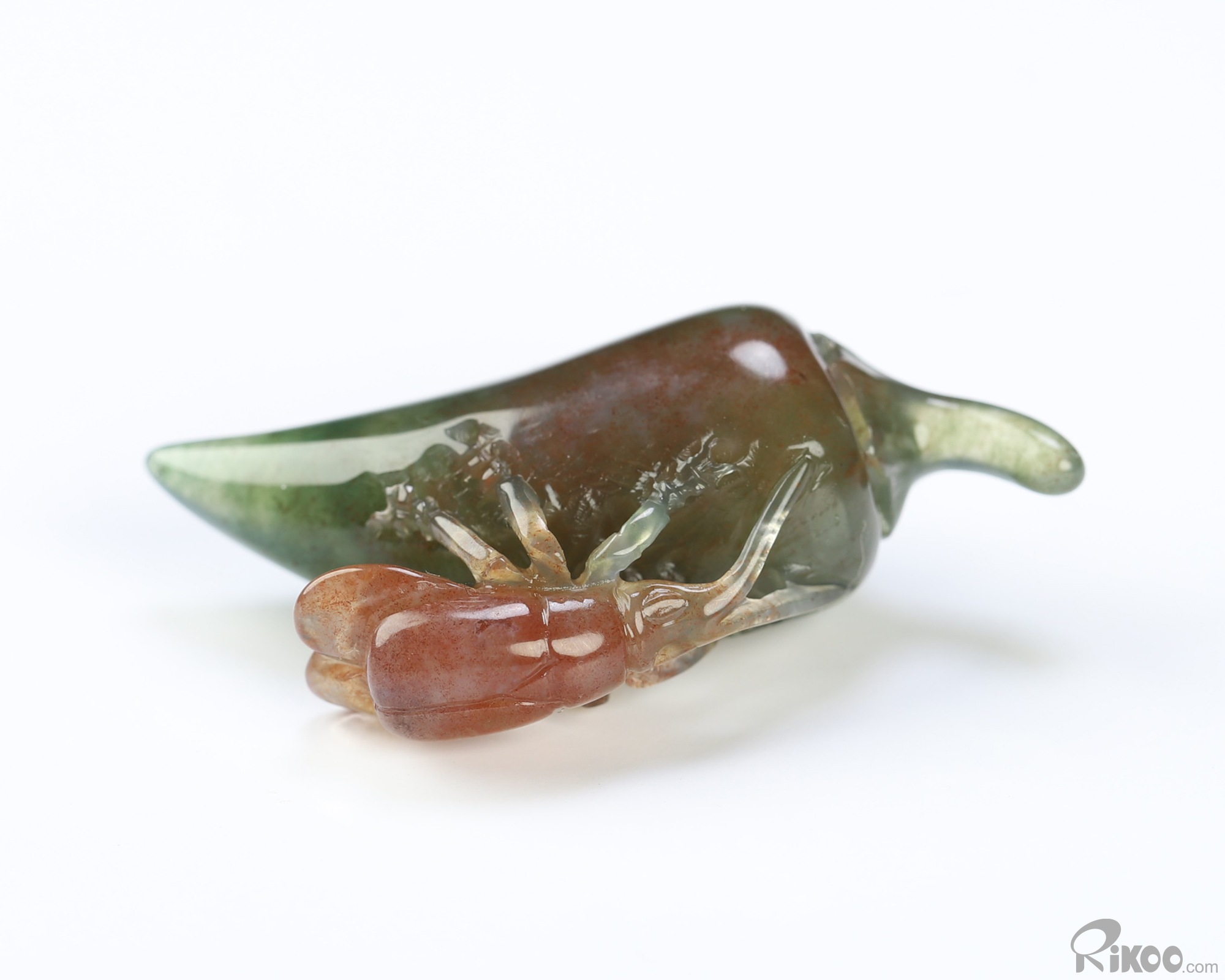 1.4" Indian Agate Hand Carved Crystal Pepper and Cicada Sculpture, Crystal Healing