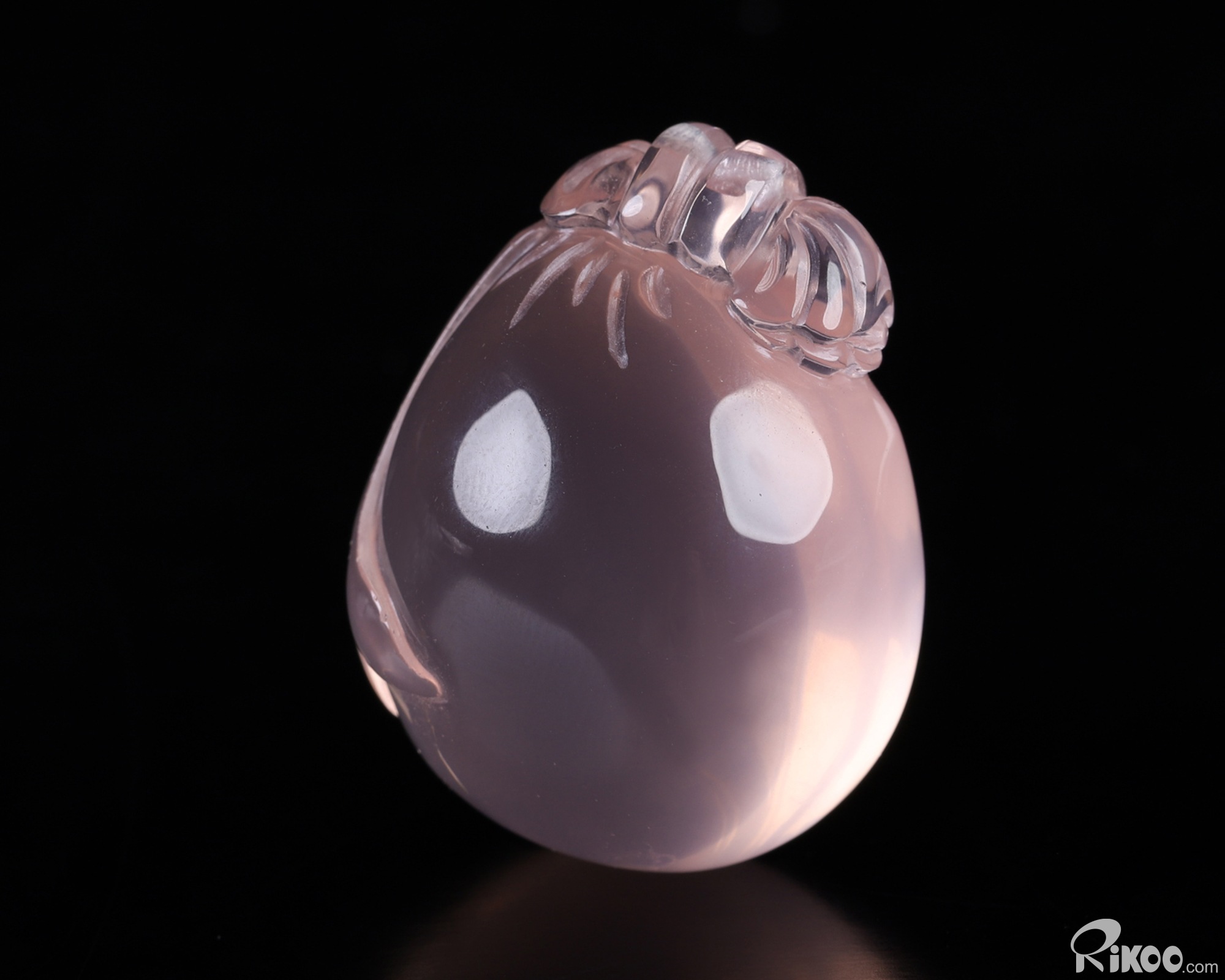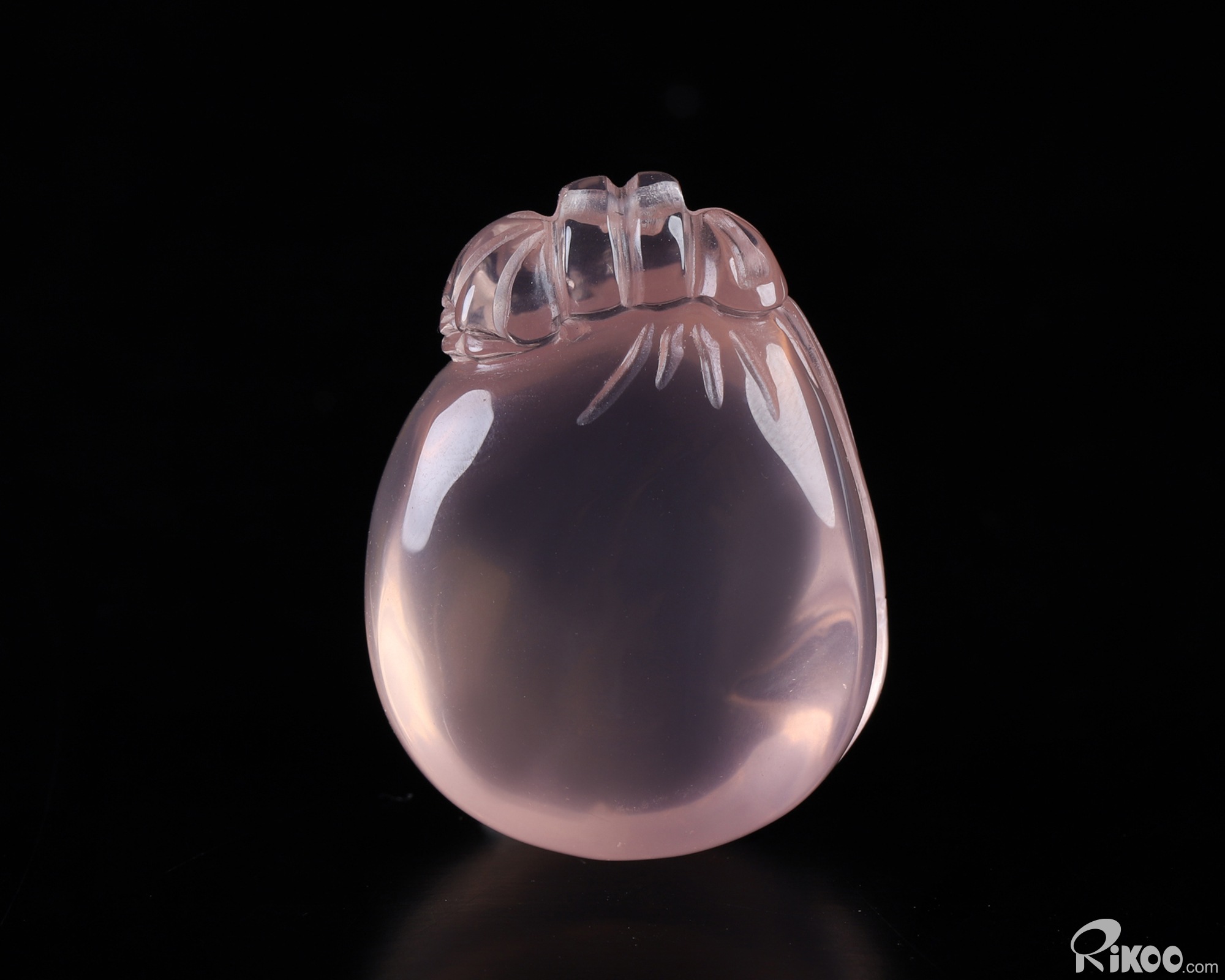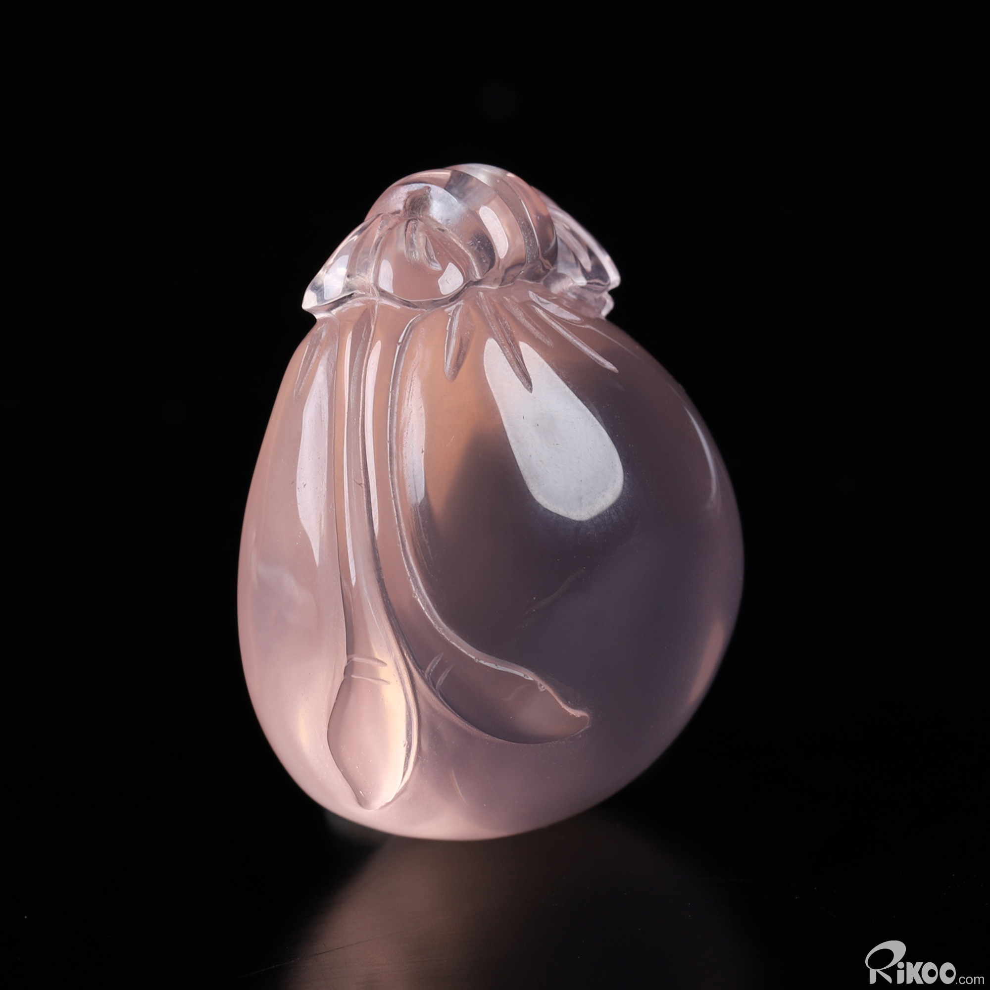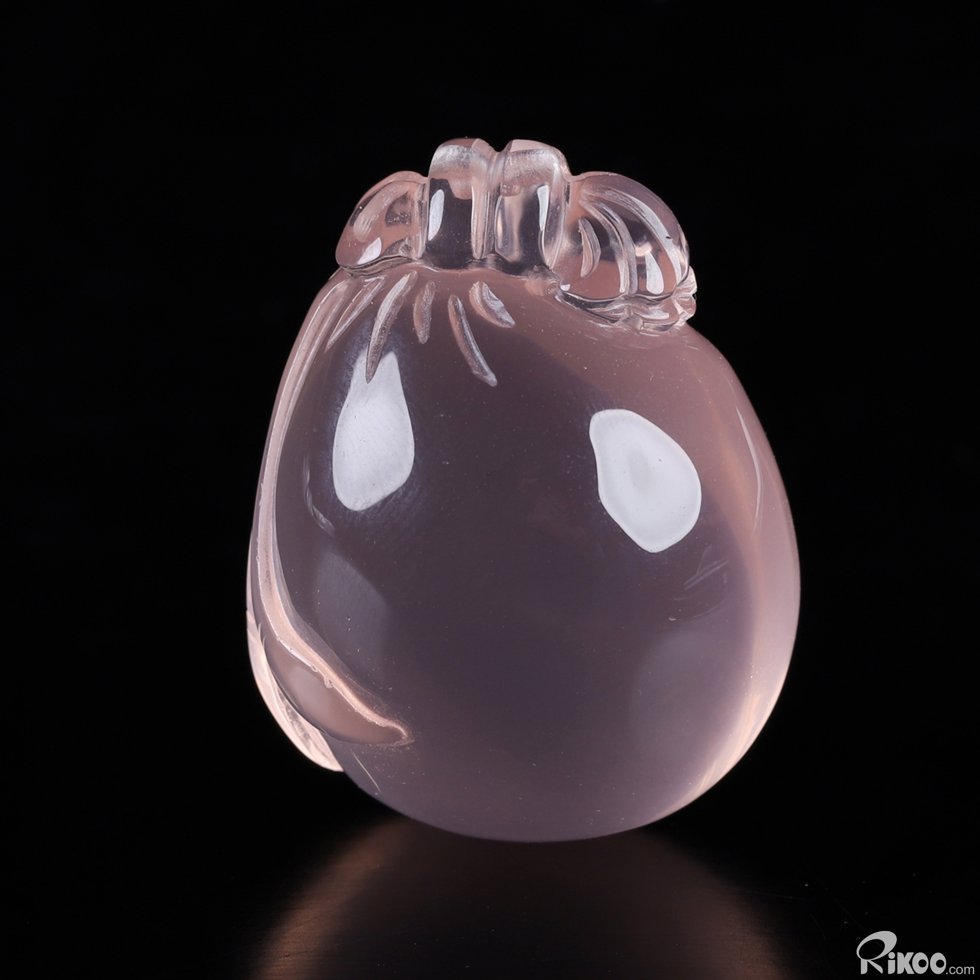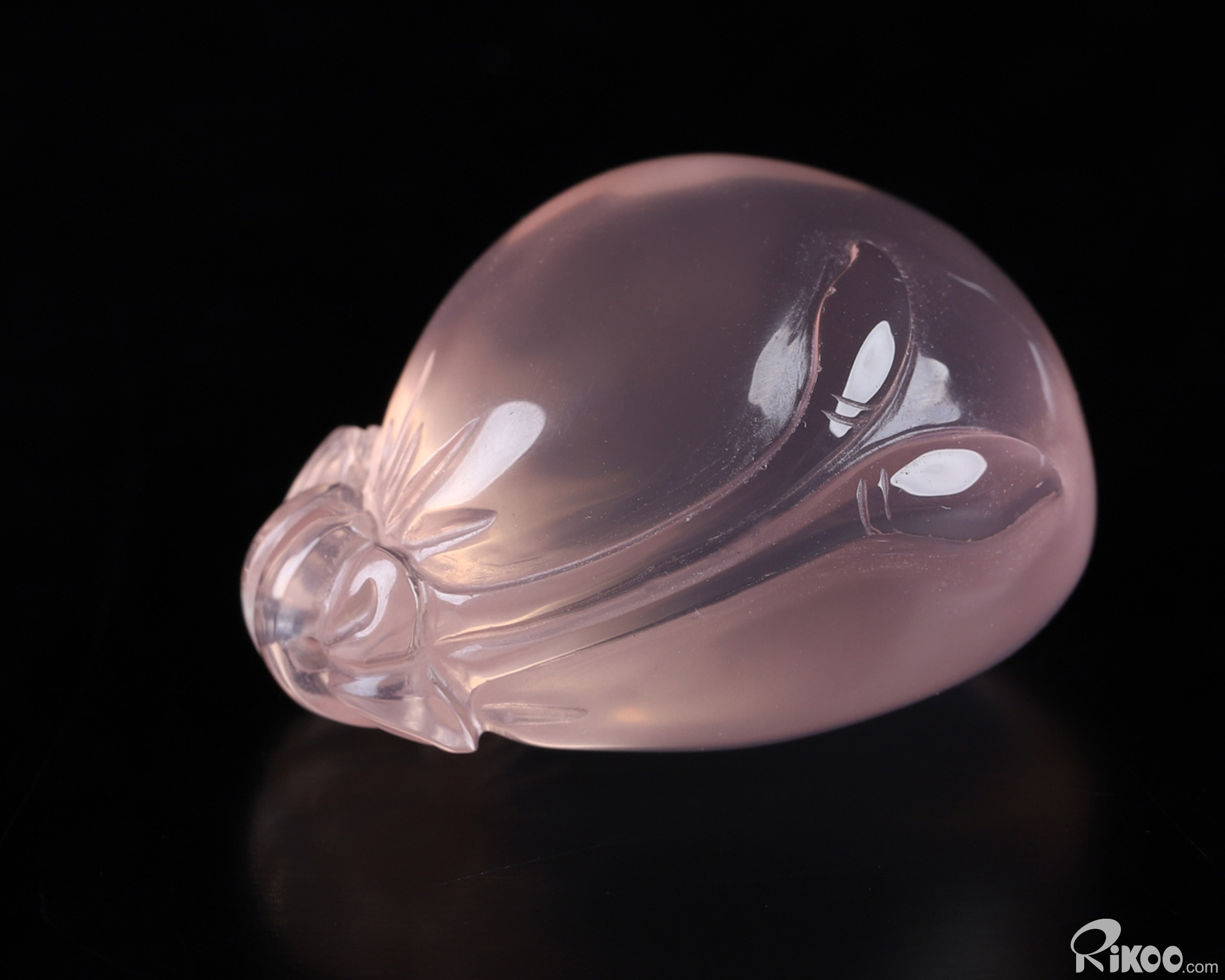 You are looking at a Rose Quartz sculpture. The sculpture is 1.4 inches long.