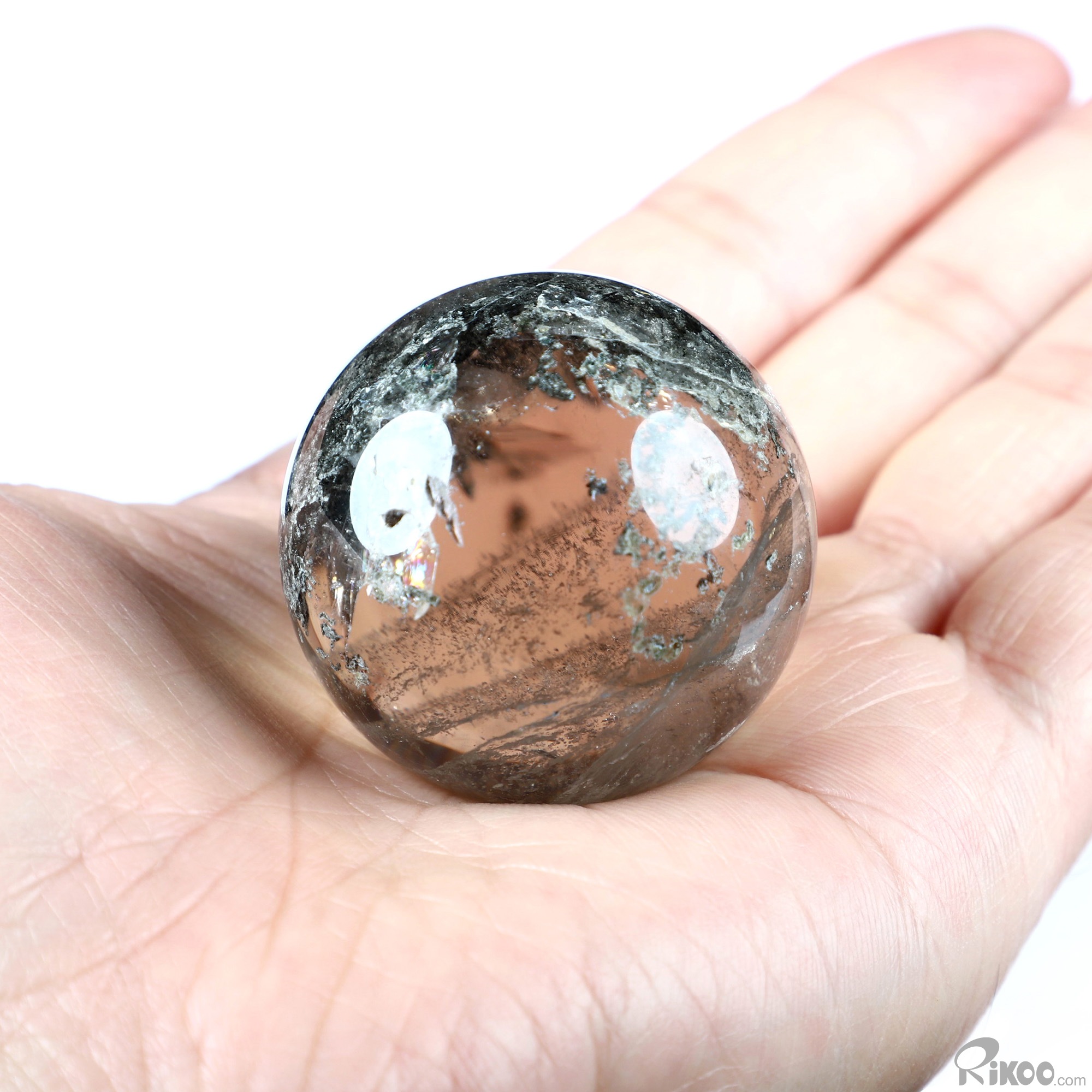 1.6" Phantom Quartz Rock Crystal Hand Carved Crystal Ball/Sphere, Crystal Healing