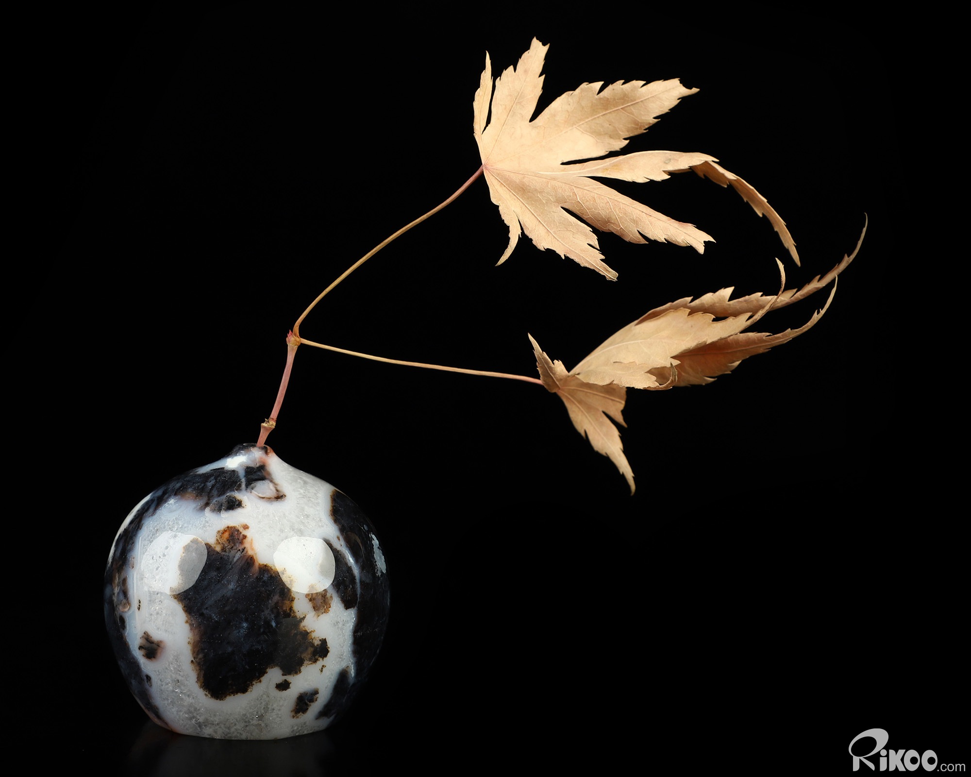 1.7" Black Zebra Agate Hand Carved Crystal Vase Sculpture, Crystal Healing