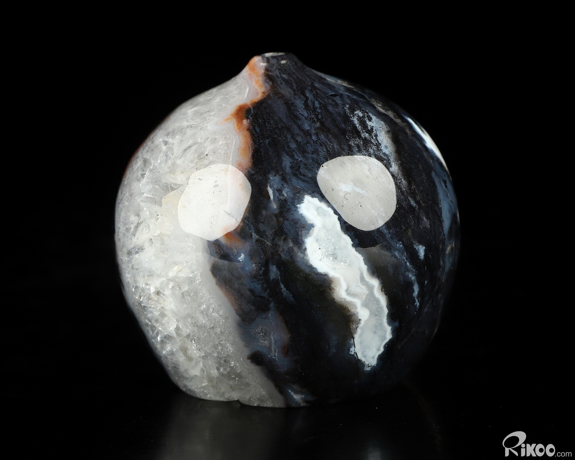You are looking at a Black Zebra Agate sculpture. The sculpture is 1.7 inches long.