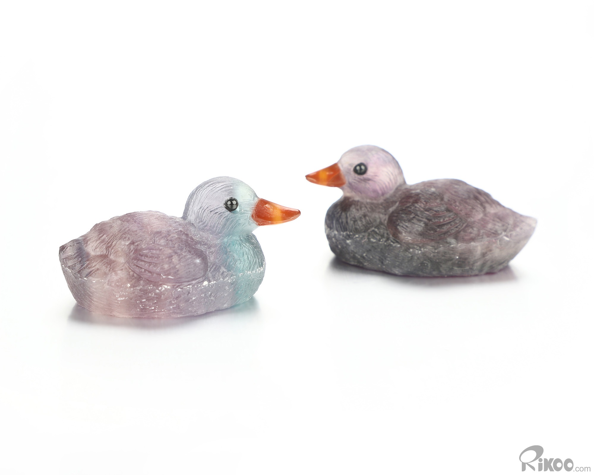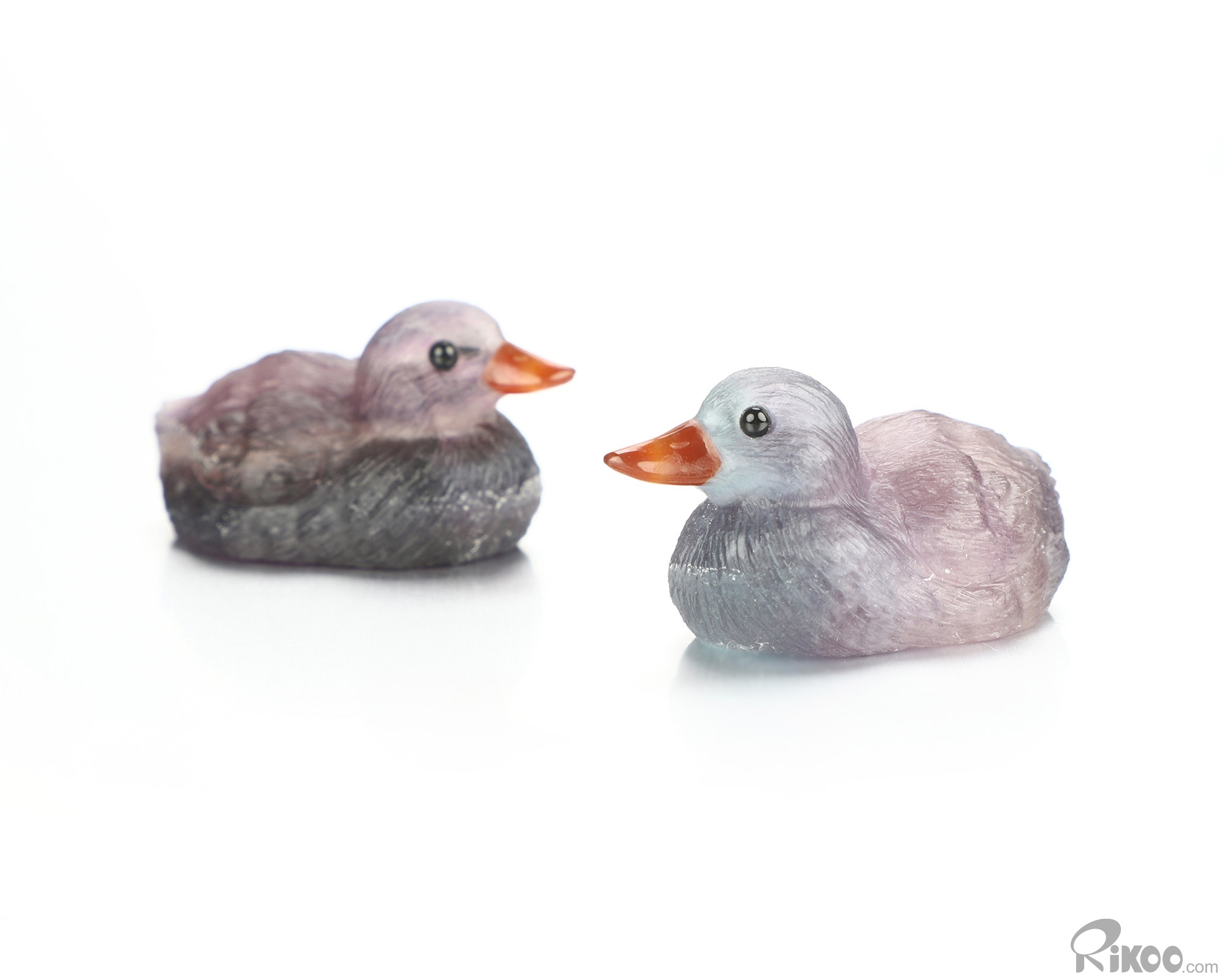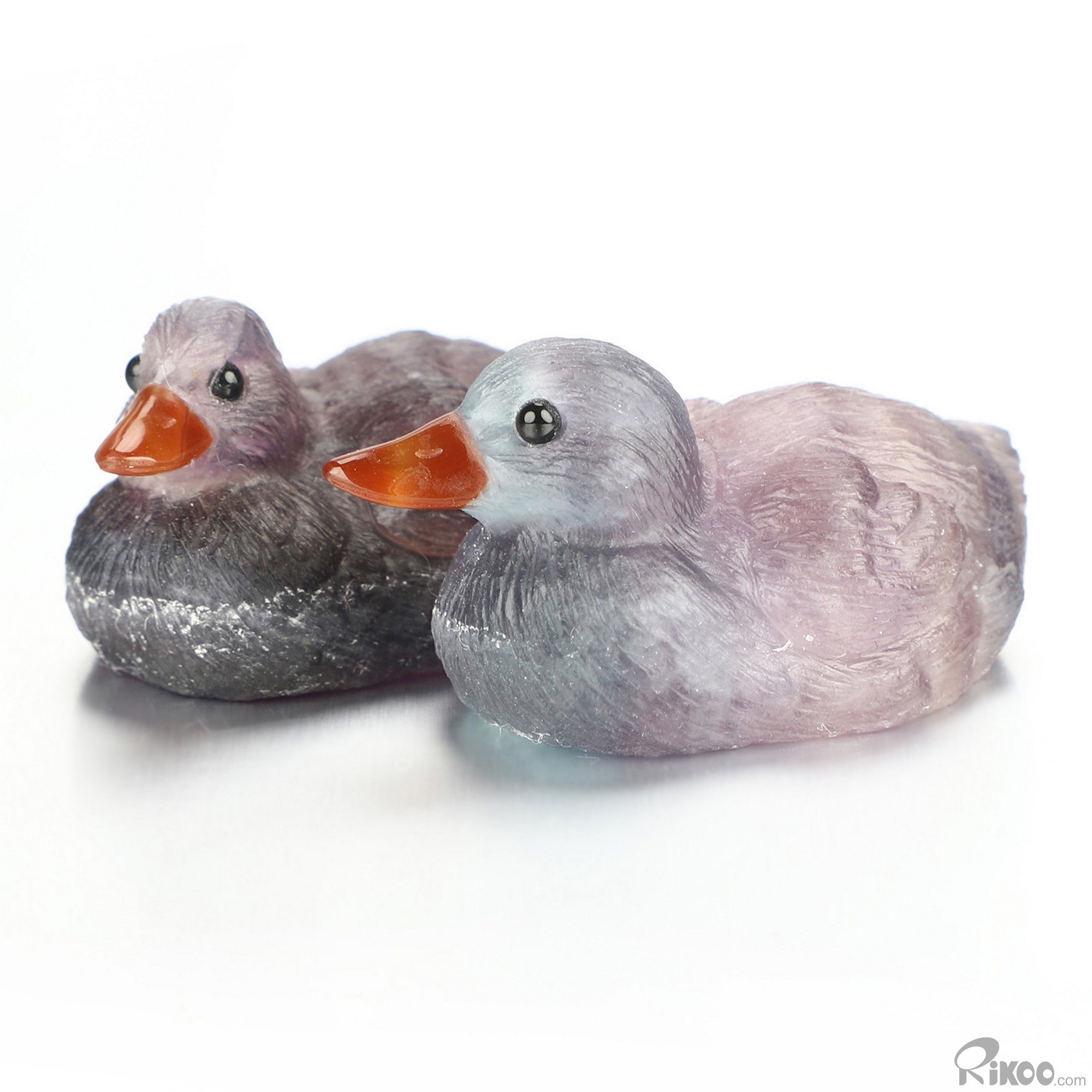 1.7" Fluorite Hand Carved Crystal Ducks Sculpture, Crystal Healing