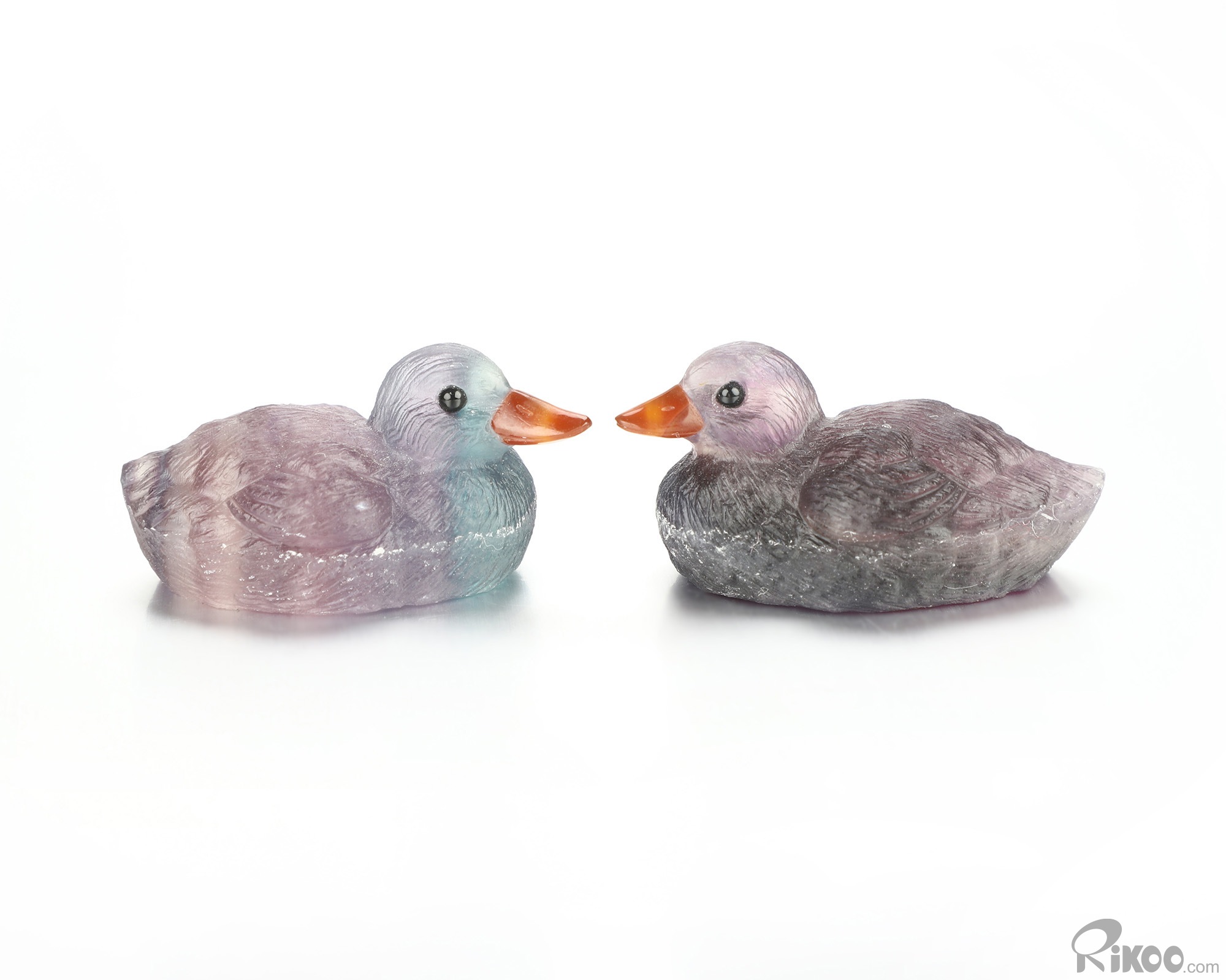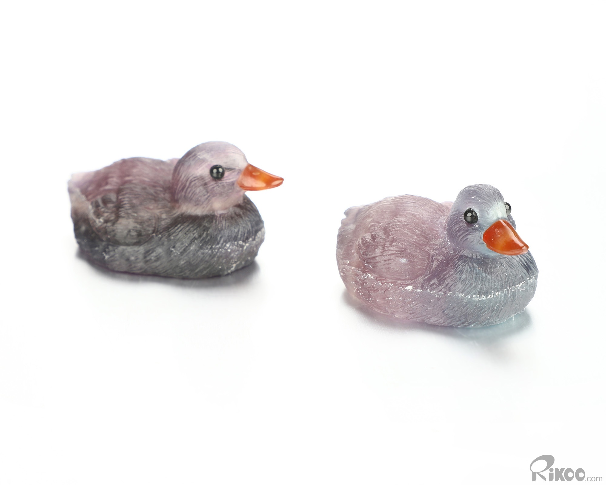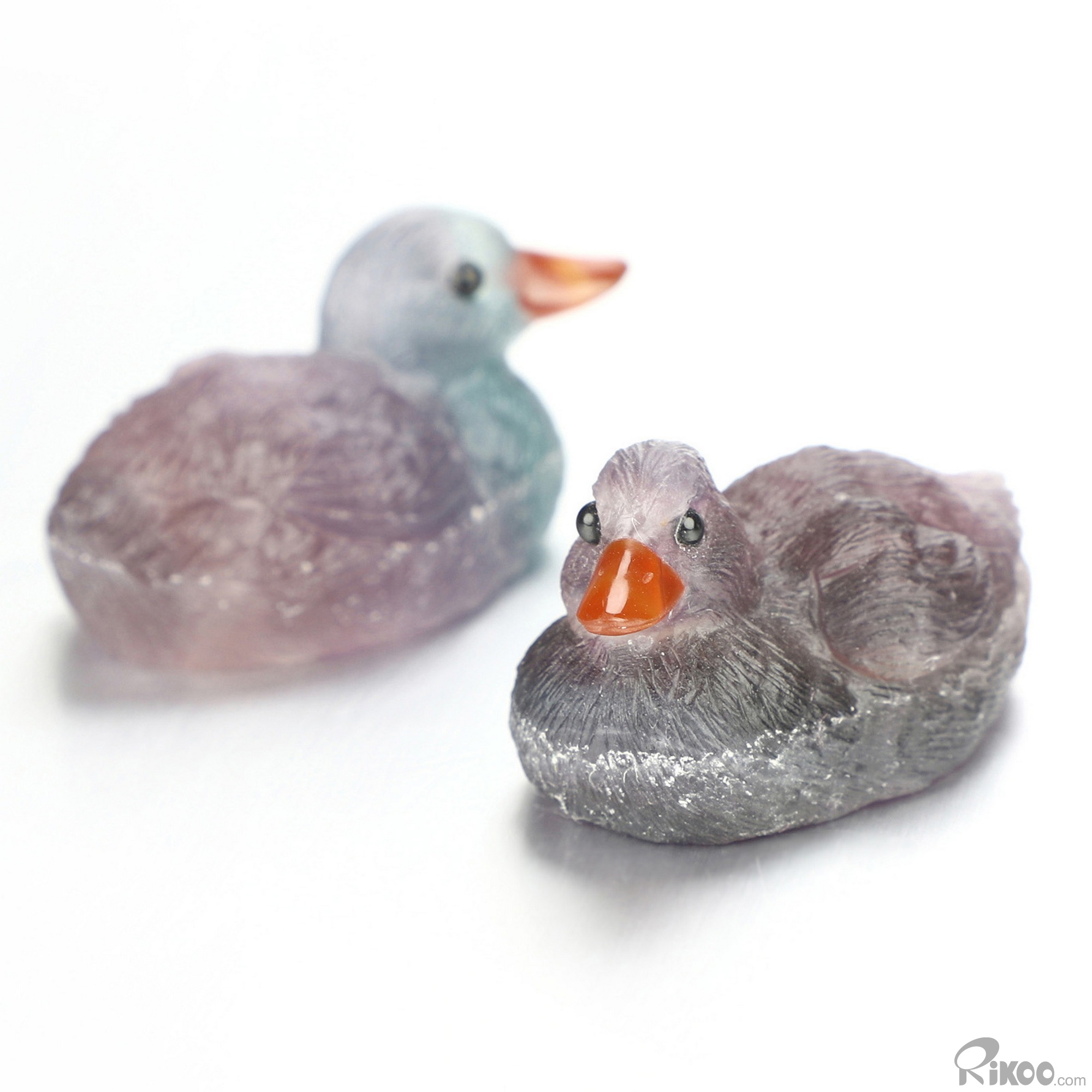 1.7" Fluorite Hand Carved Crystal Ducks Sculpture, Crystal Healing