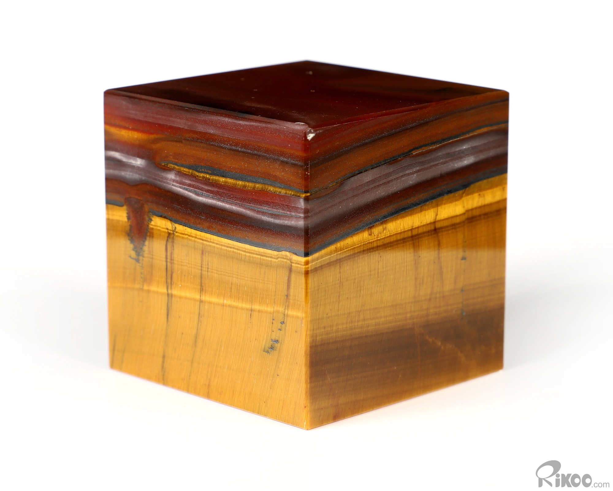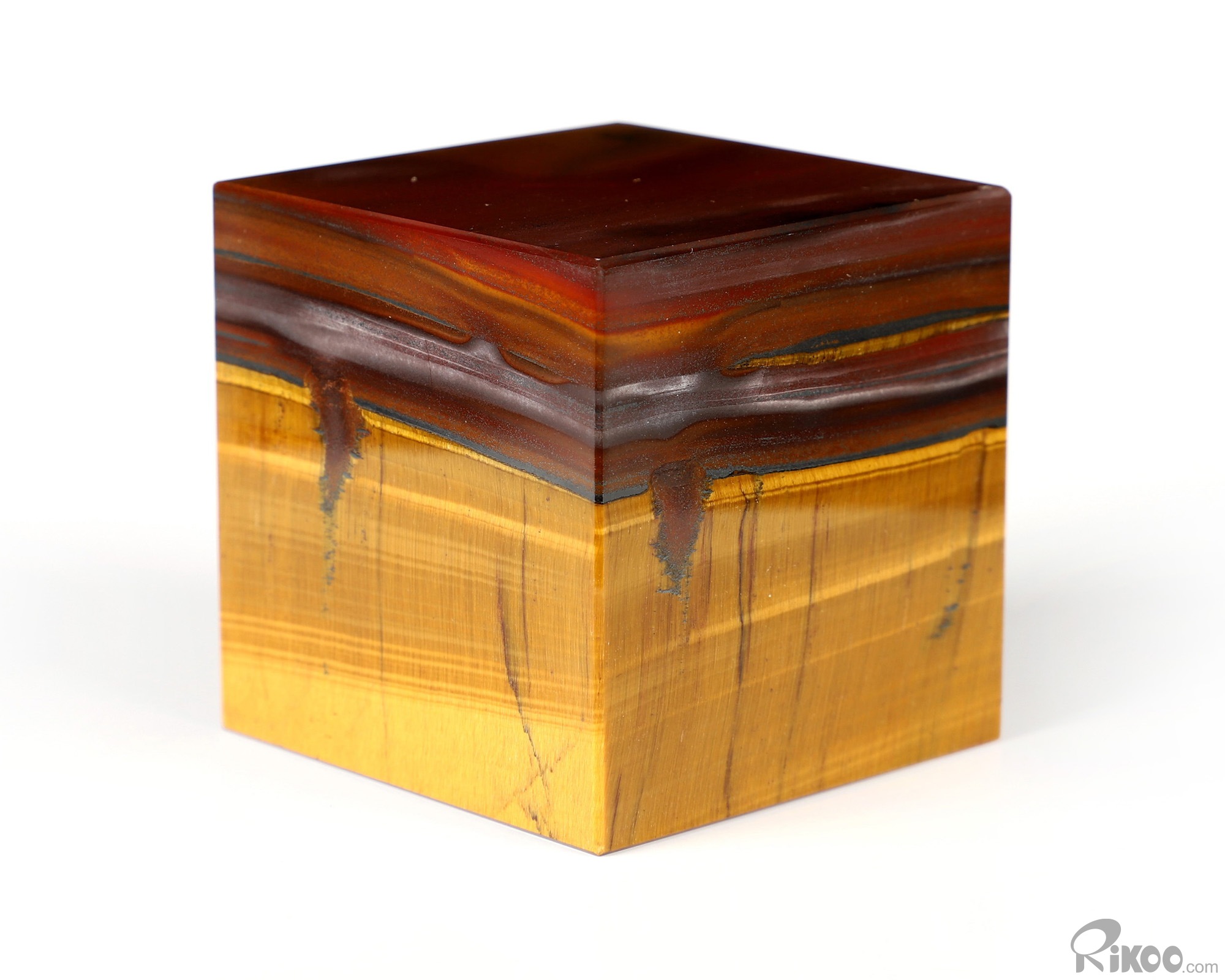 1.7" Gold Tiger's Eye Hand Carved Crystal Cube, Crystal Healing