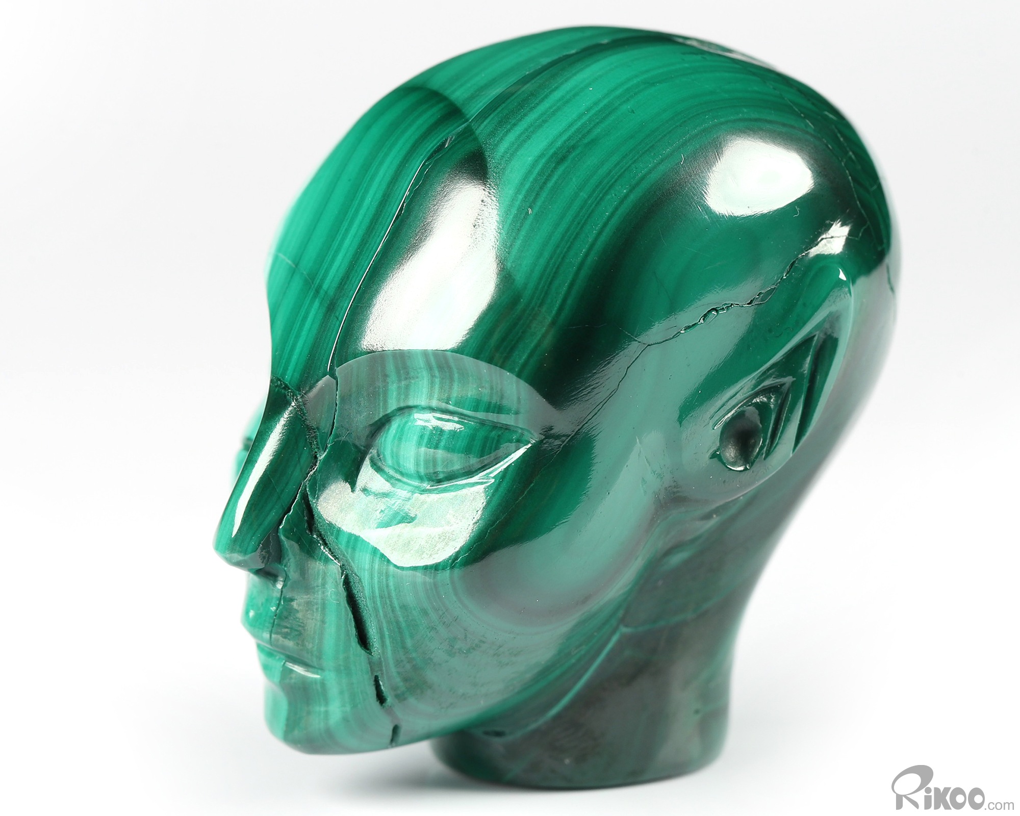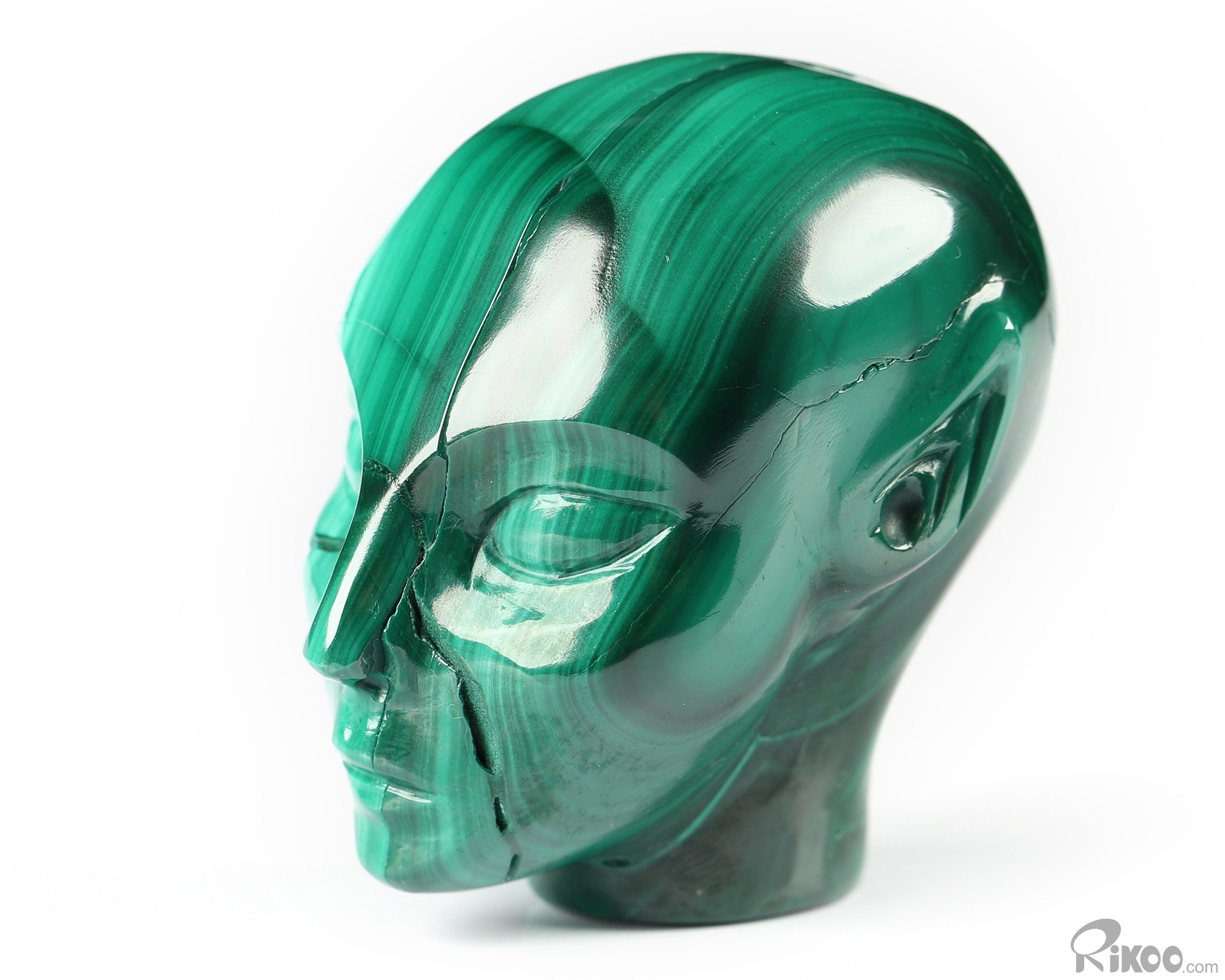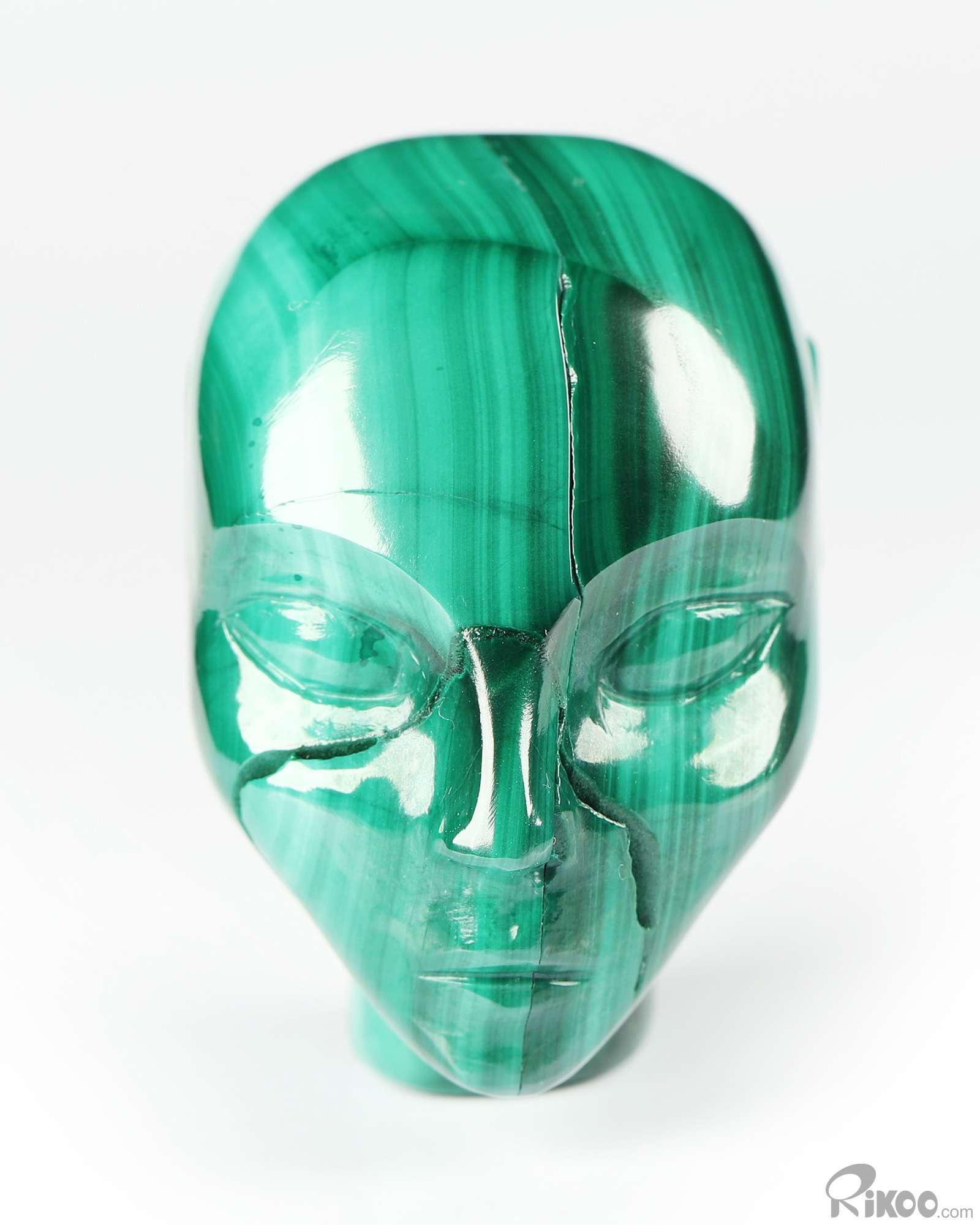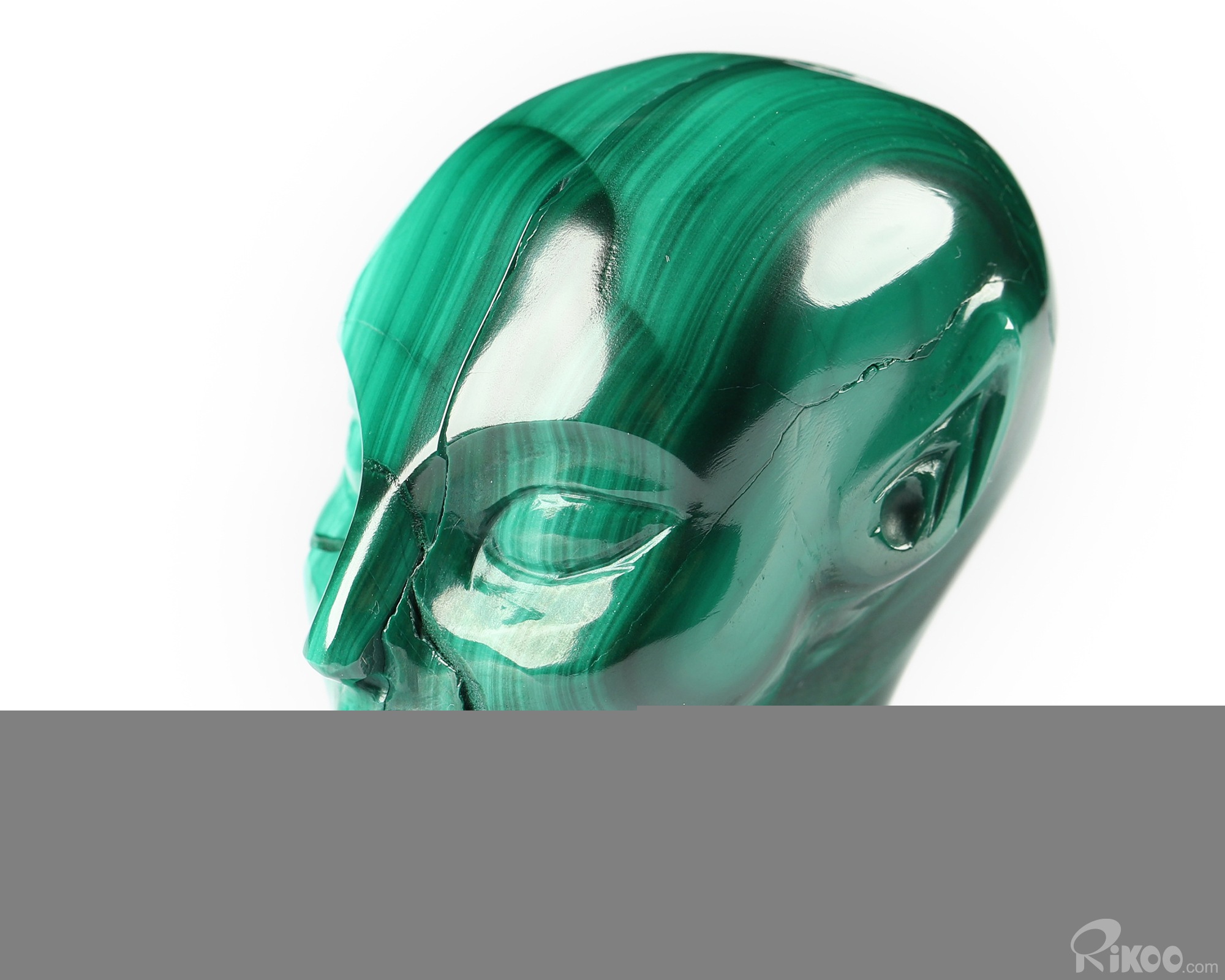 1.7" Malachite Carved Crystal Fairy Elf Alien Crystal Skull Companion Sculpture, Crystal Healing