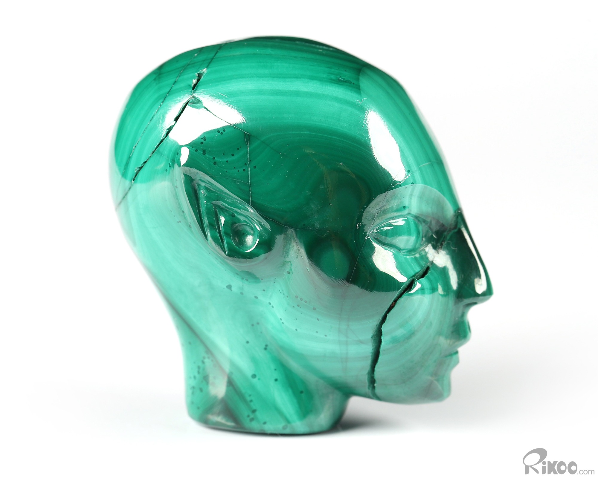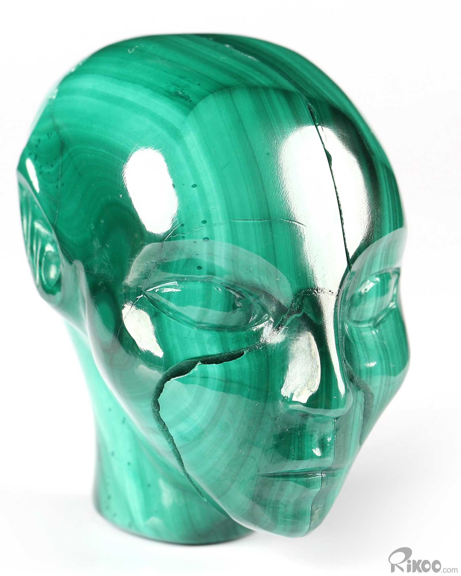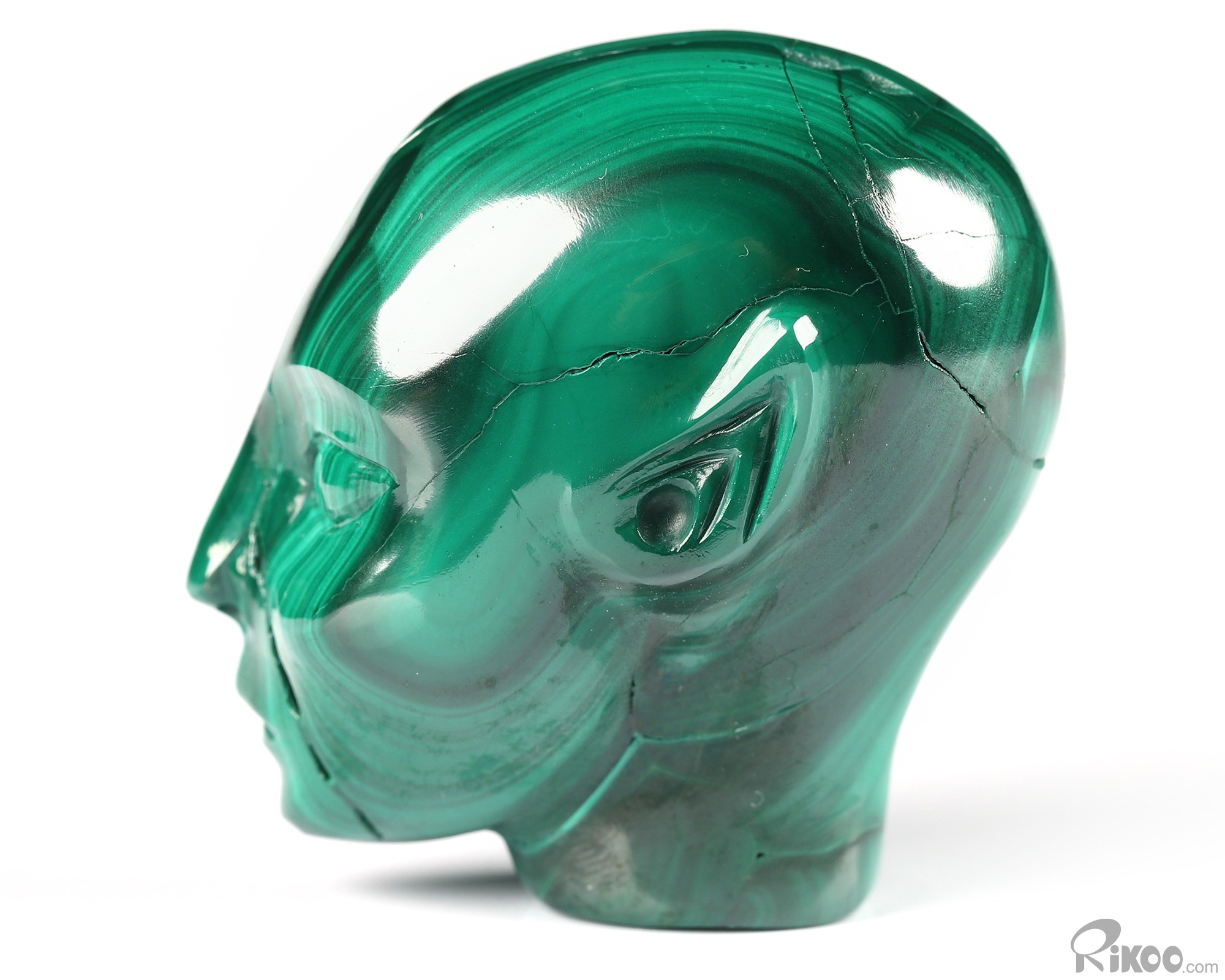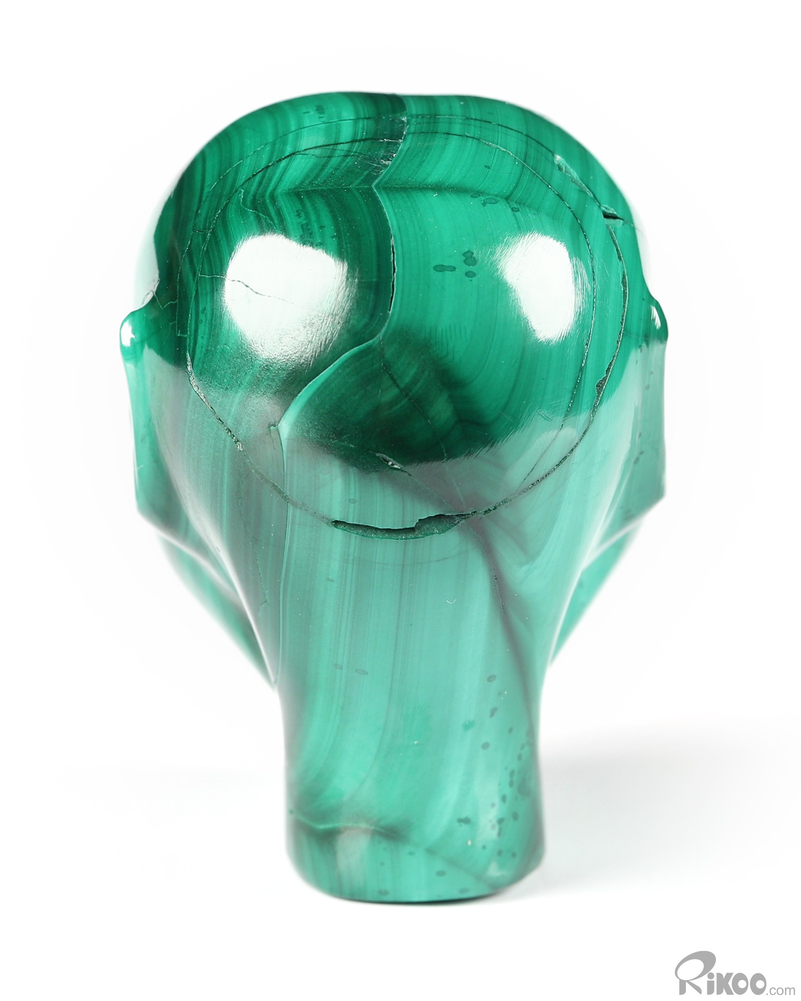 1.7" Malachite Carved Crystal Fairy Elf Alien Crystal Skull Companion Sculpture, Crystal Healing