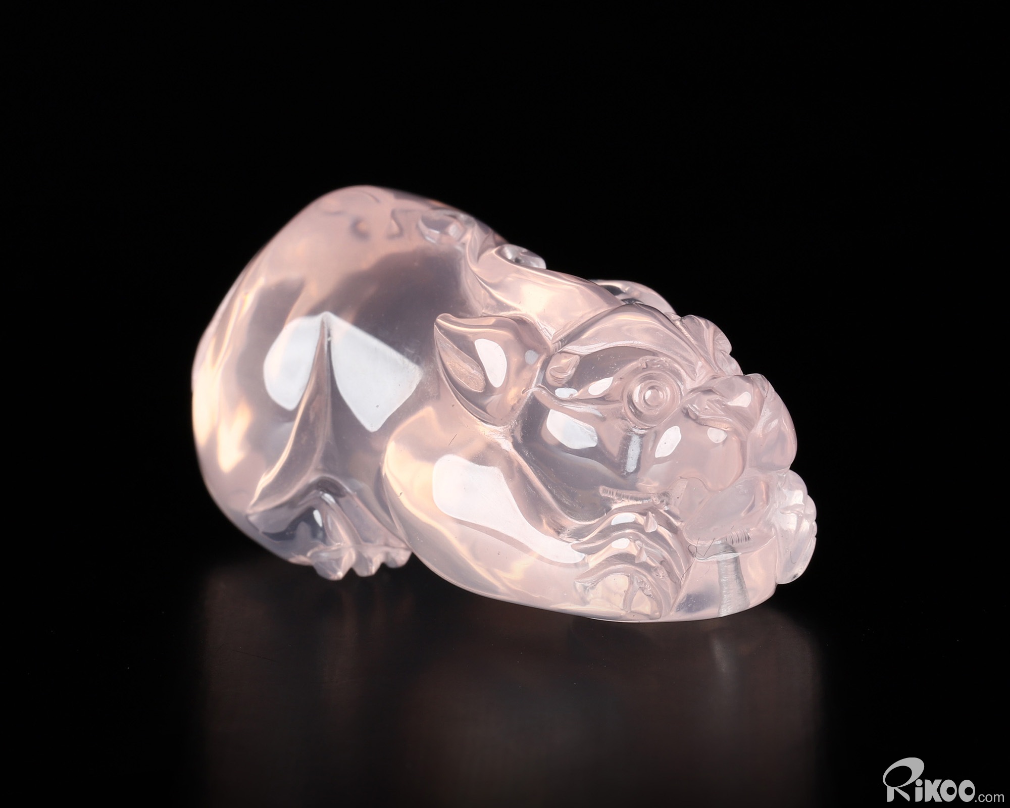 1.7" Rose Quartz Hand Carved Crystal Tiger Sculpture, Crystal Healing