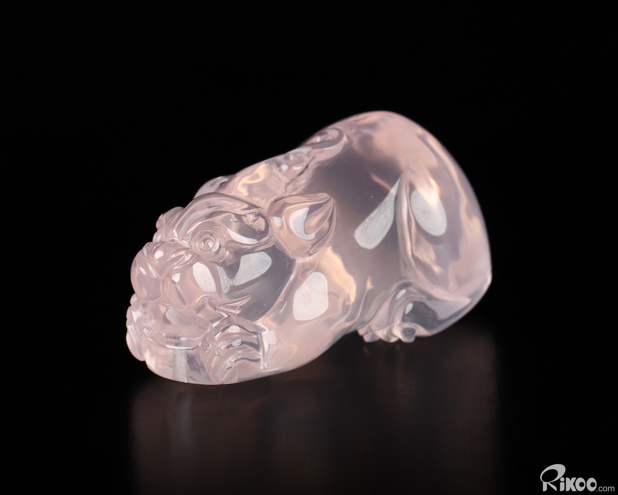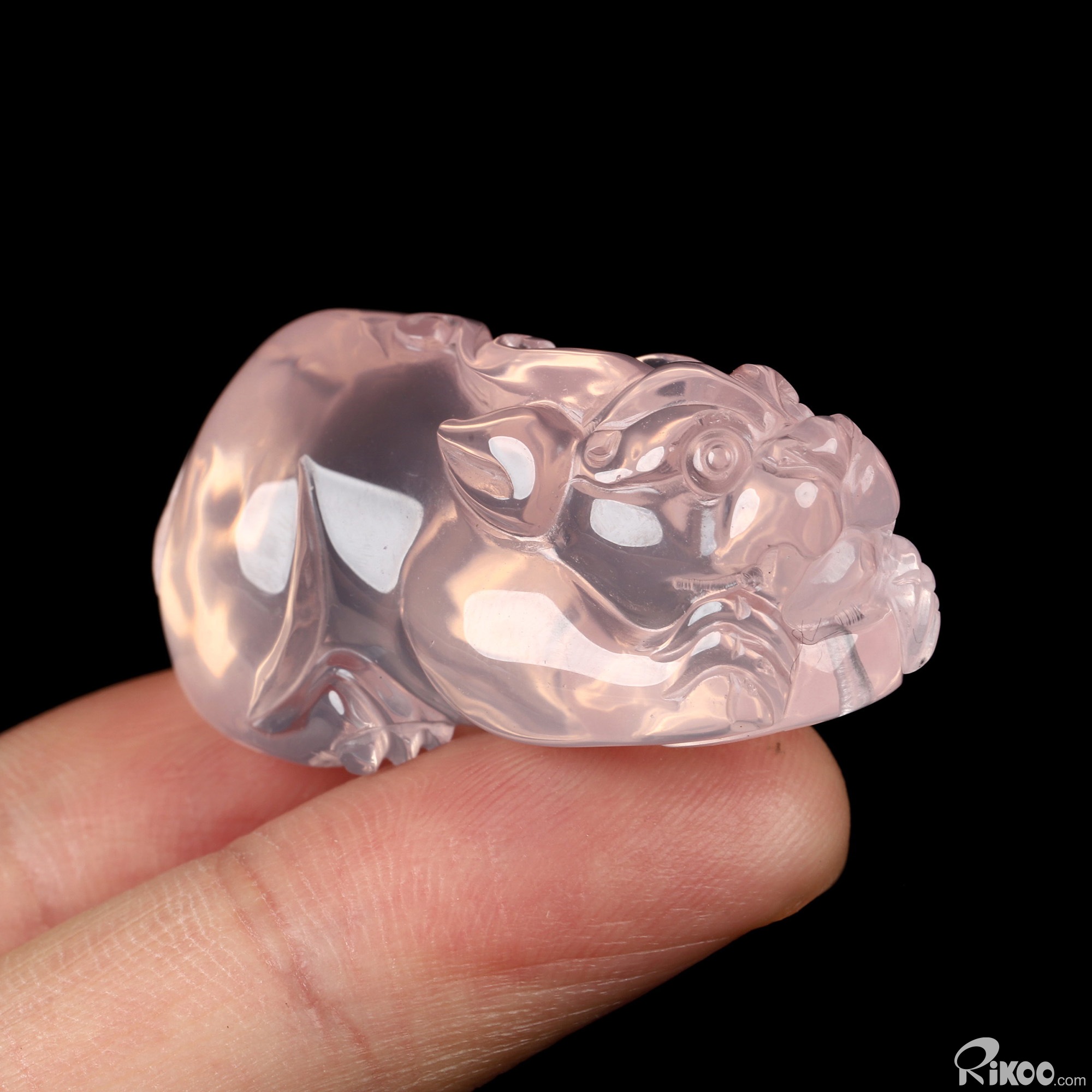 You are looking at a Rose Quartz sculpture. The sculpture is 1.7 inches long.
