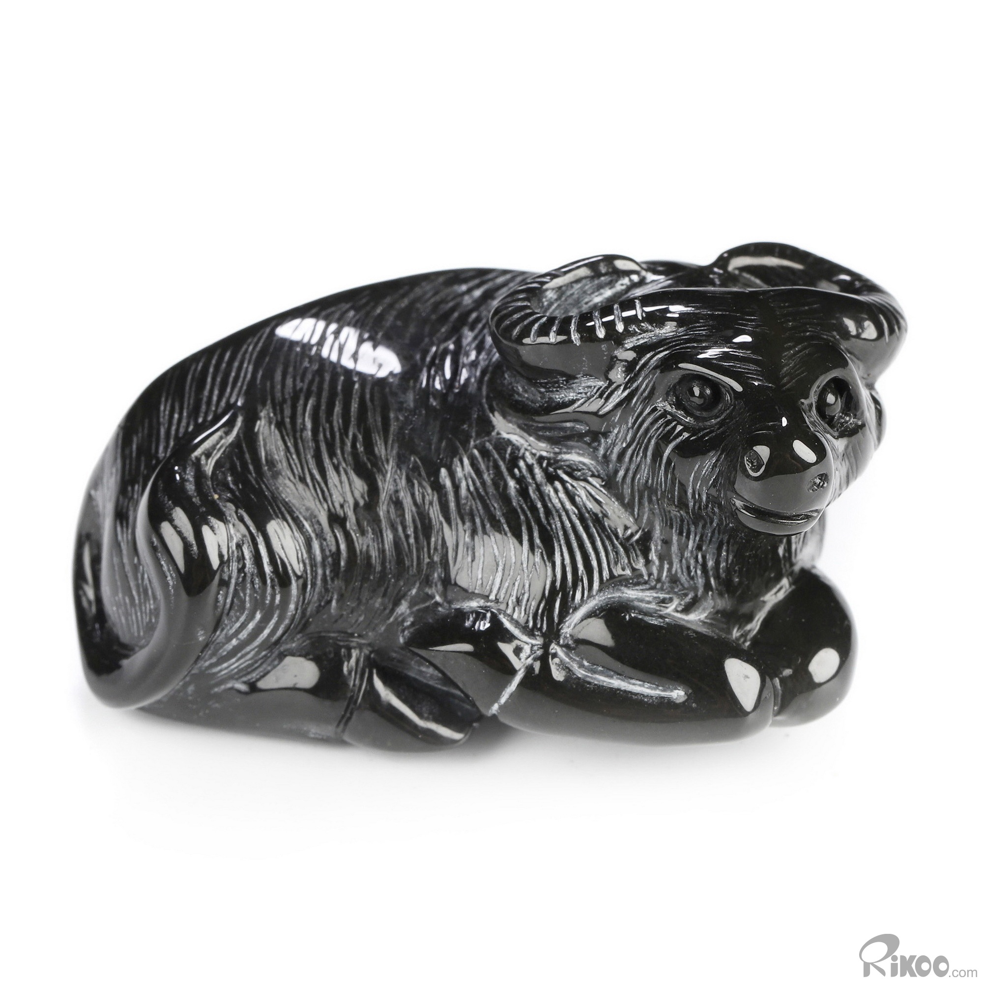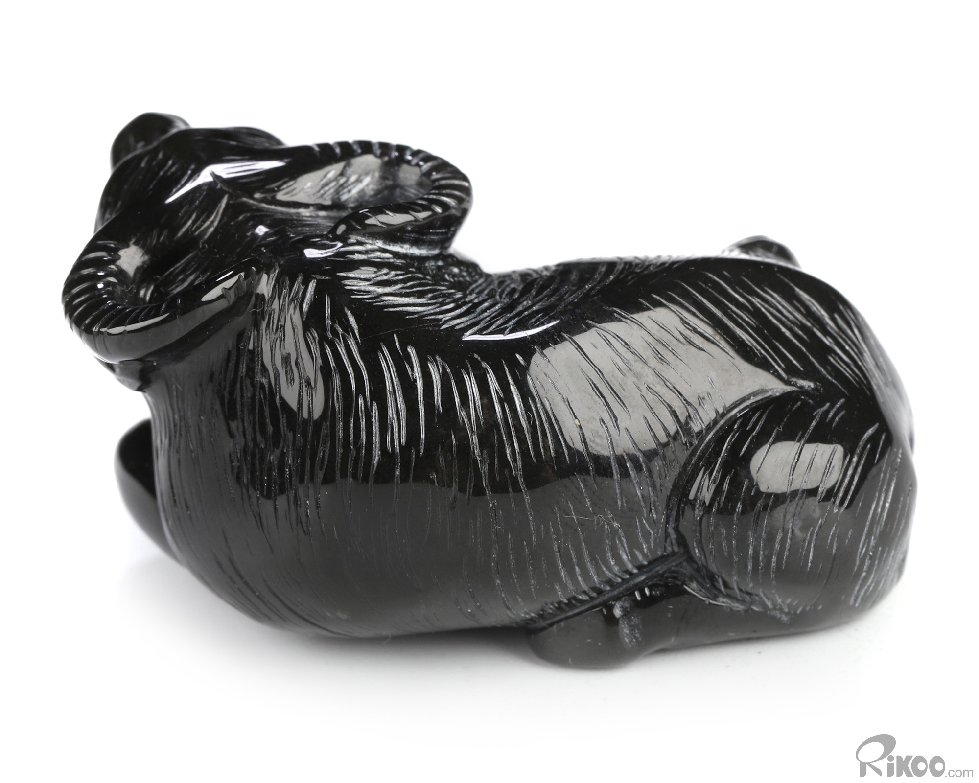 1.8" Black Obsidian Hand Carved Crystal Goat Sculpture, Crystal Healing