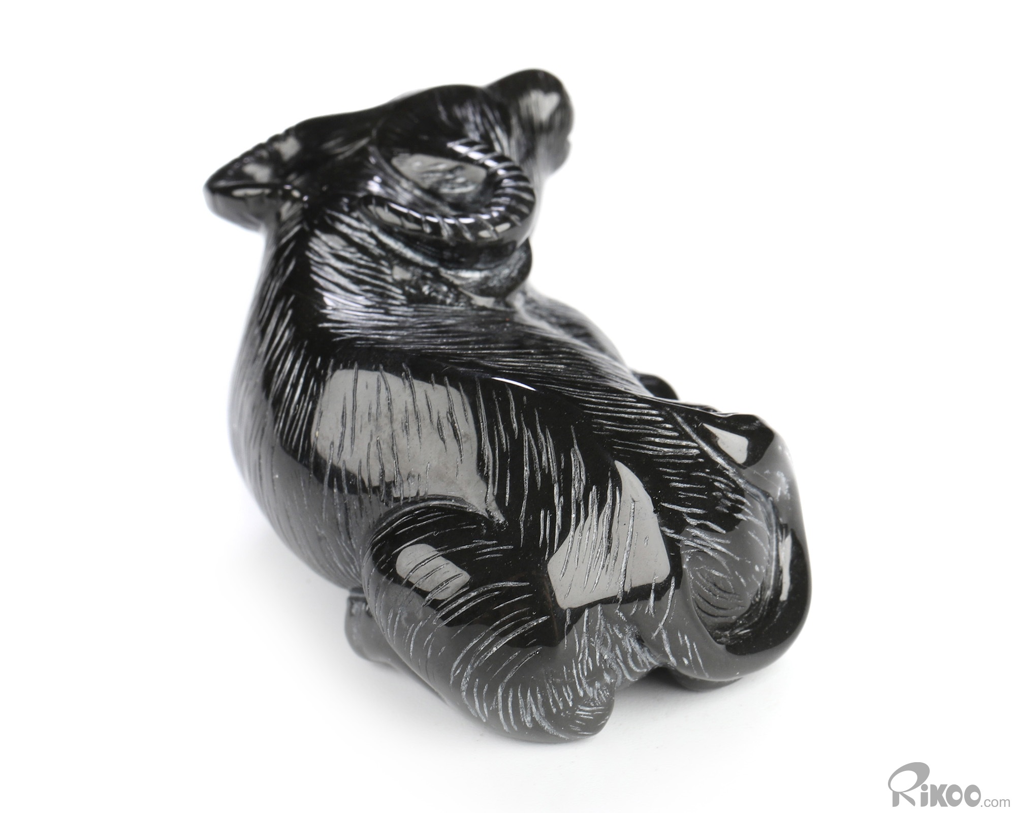 You are looking at a Black Obsidian sculpture. The sculpture is 1.8 inches long.