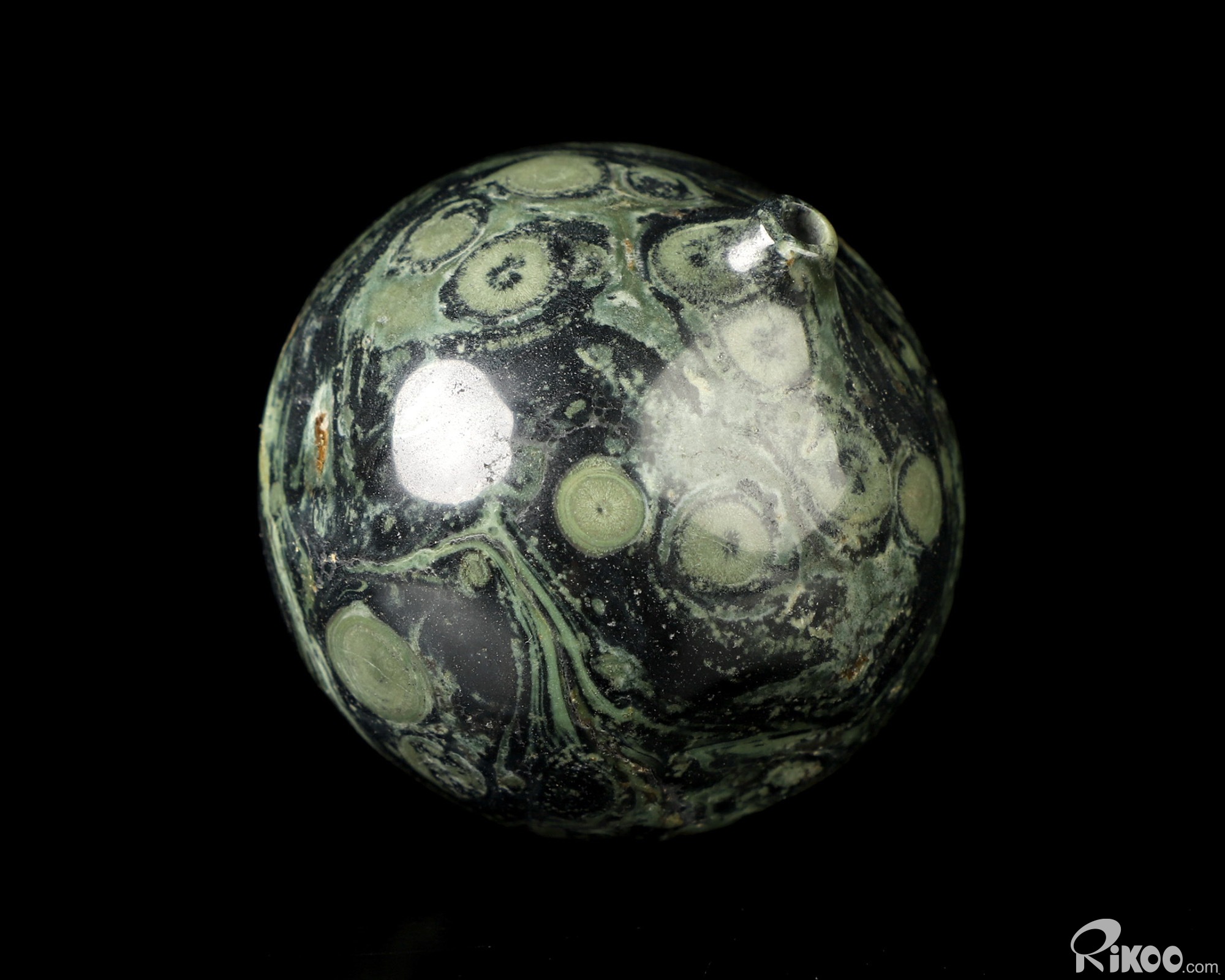 Also known as Brecciated Army Jasper, Camo Stone Kambaba Jasper is an exotic looking jasper from Africa, Its pattern includes speckles and concentric rings. It contains a jumbled jungle of forest green, mint green, black and brown. It is said to mystically soothe the nerves and state of mind. As with other jaspers, traditional lore says that it is good for grounding and protection. It is purported to be beneficial for plant growth and health, particularly in arid environments or where the soil is poor. Crystal healing lore says that Kambaba Jasper helps dietary stabilization, assimilation of vitamins and minerals, and cleansing the body of toxins.