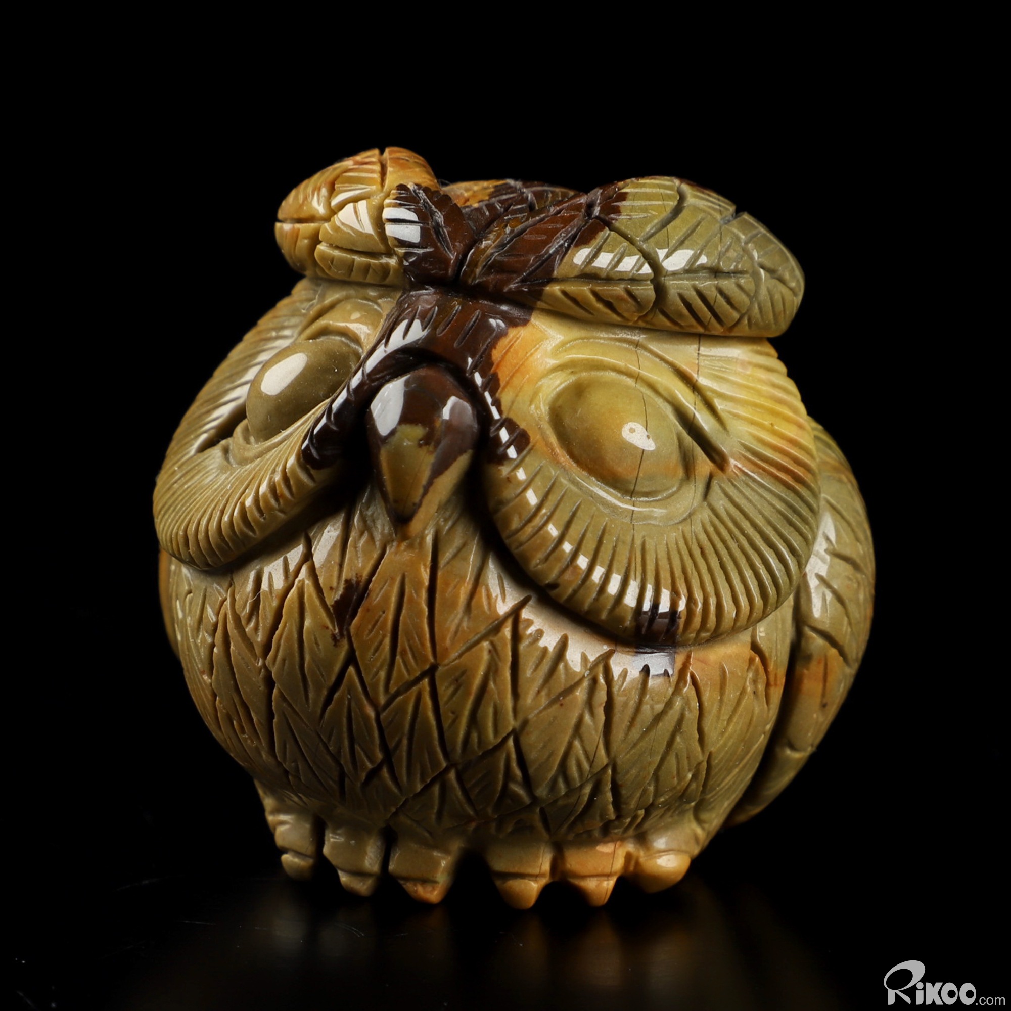 You are looking at a Polychrome Jasper sculpture. The sculpture is 1.8 inches long.