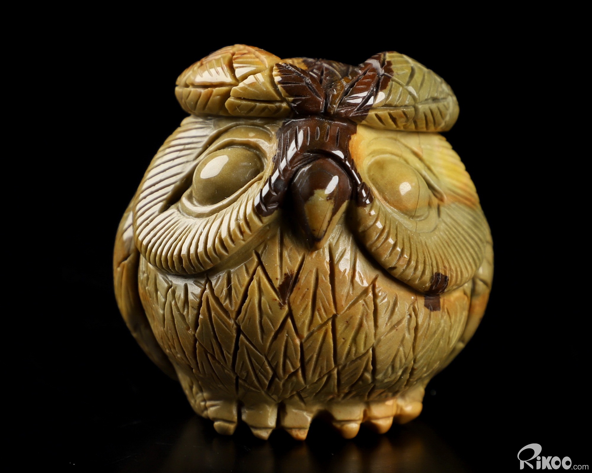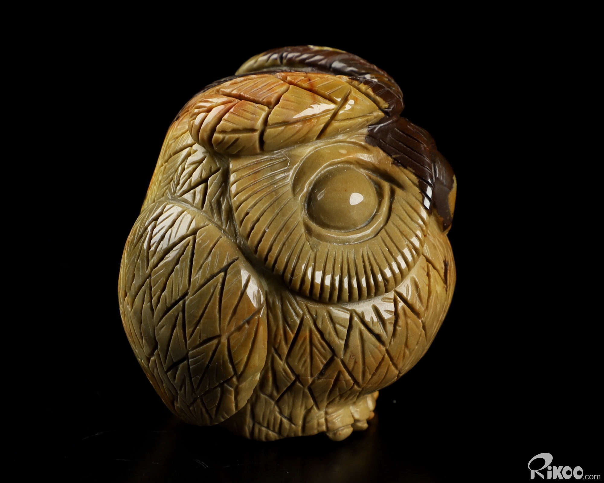 1.8" Polychrome Jasper Hand Carved Crystal Owl Sculpture, Crystal Healing