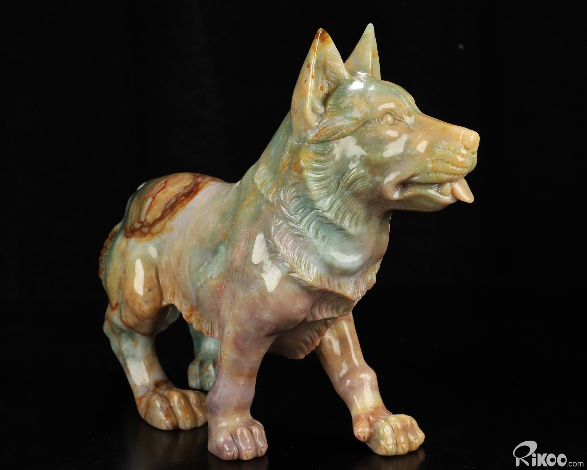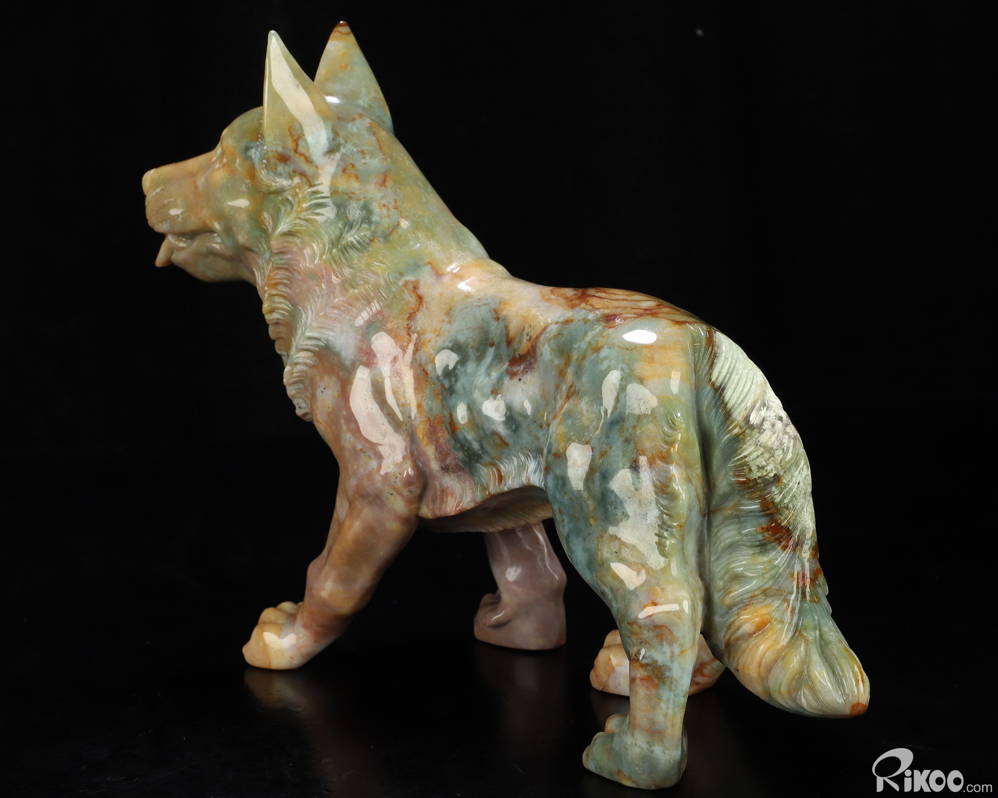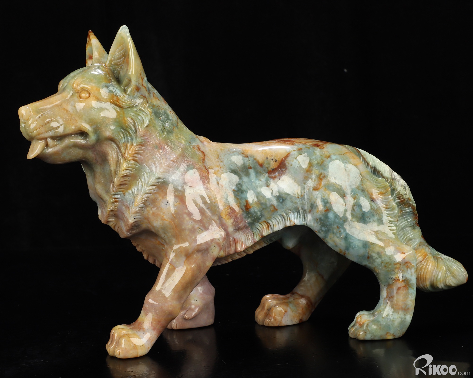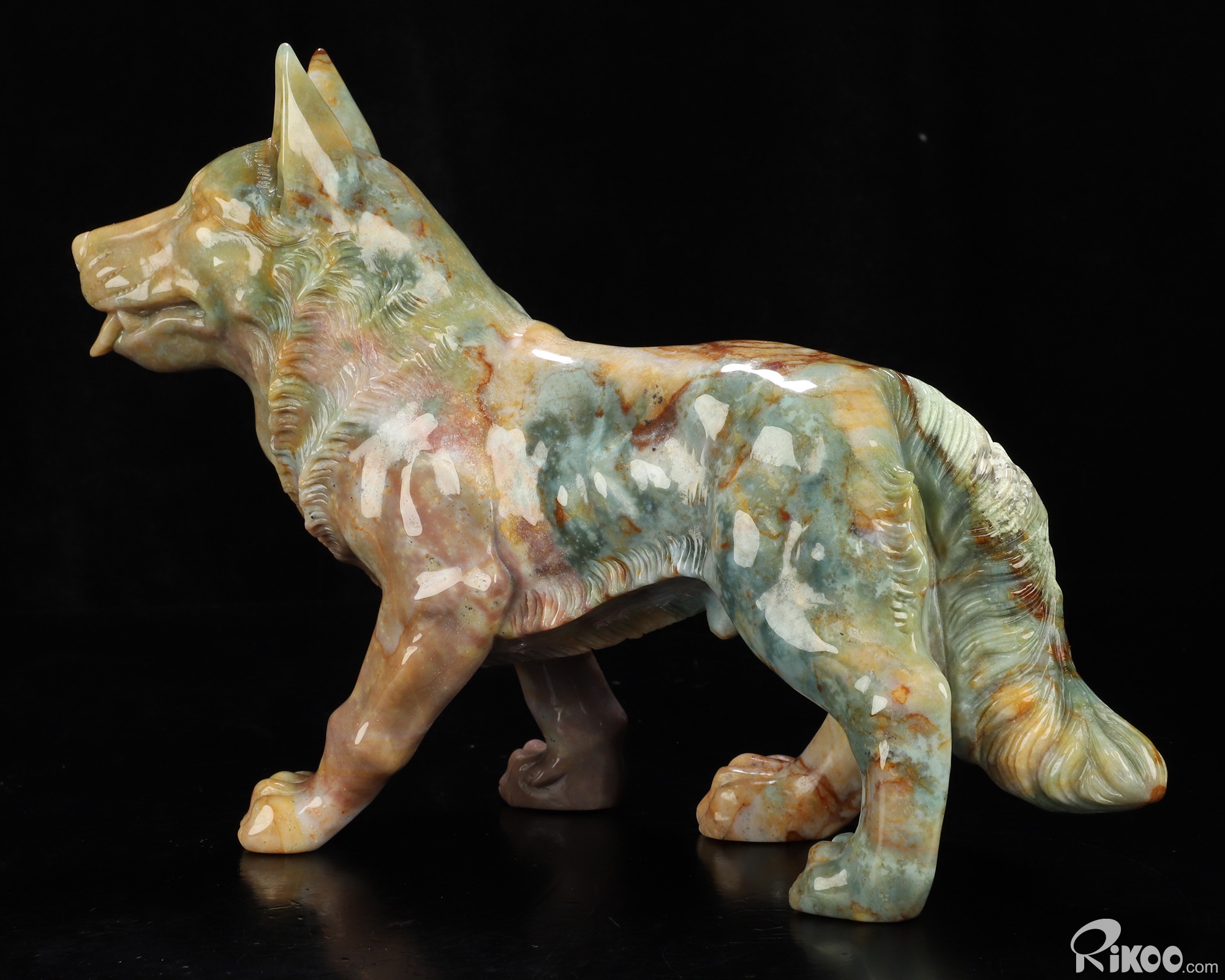 You are looking at an Indian Agate Dog/Wolfhound sculpture. The sculpture is 10 inches long.