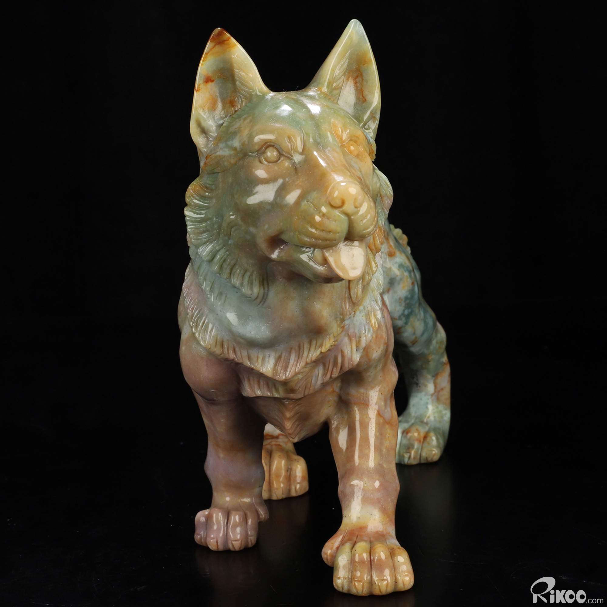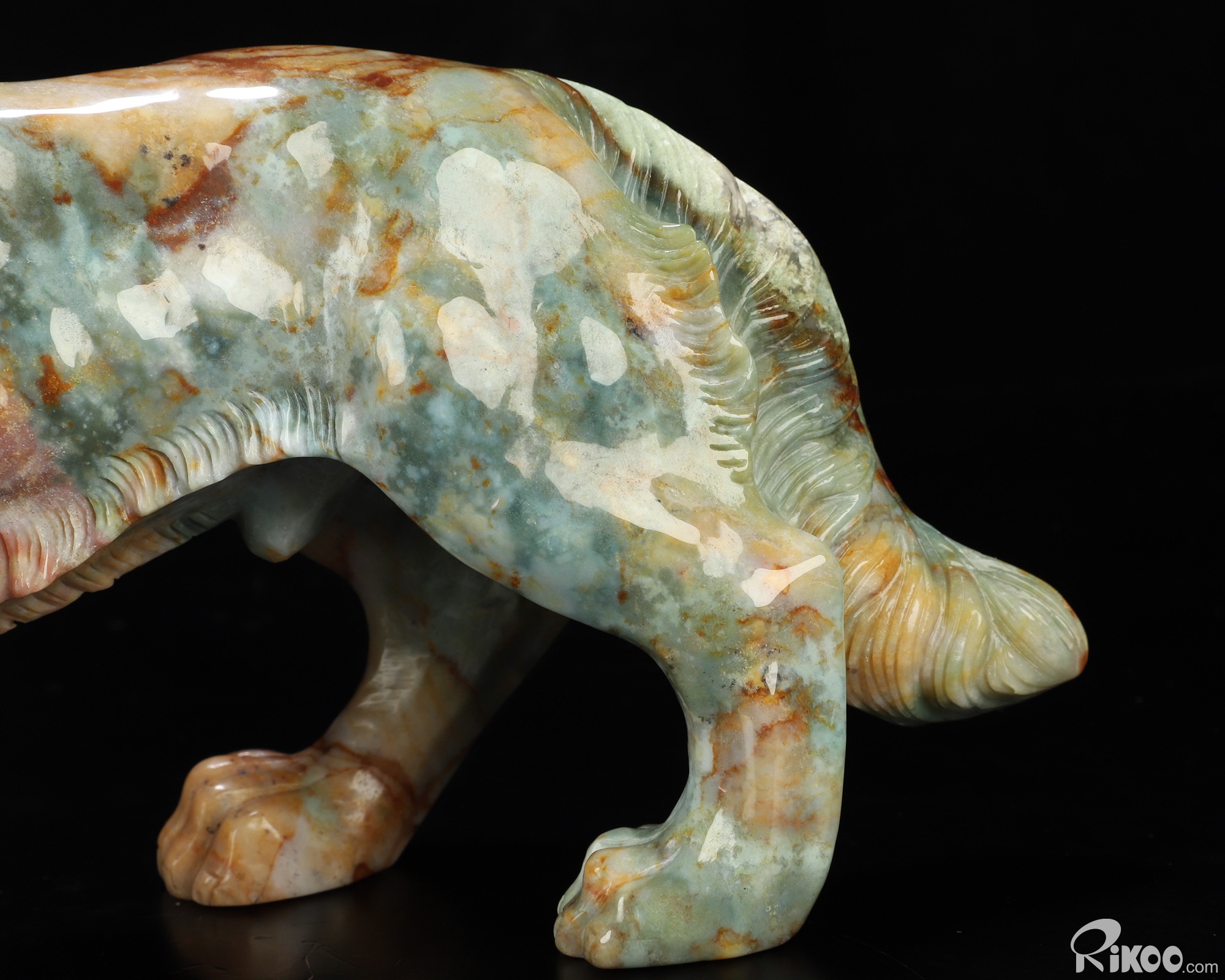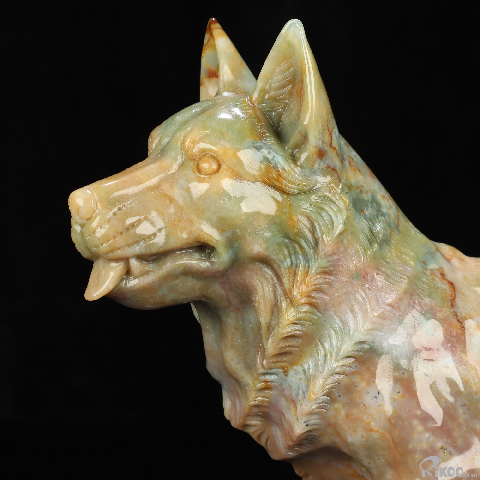 You are looking at an Indian Agate Dog/Wolfhound sculpture. The sculpture is 10 inches long.