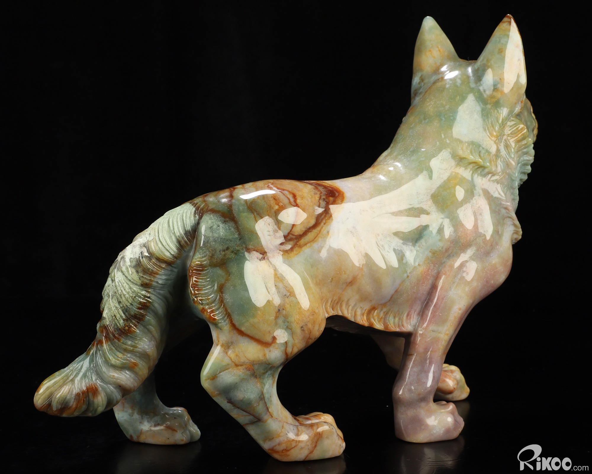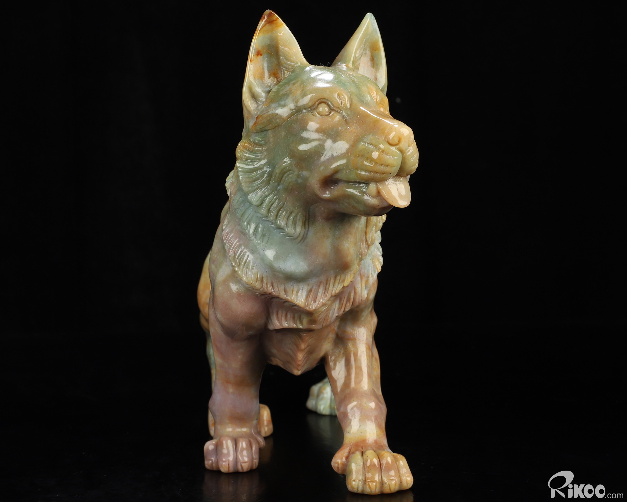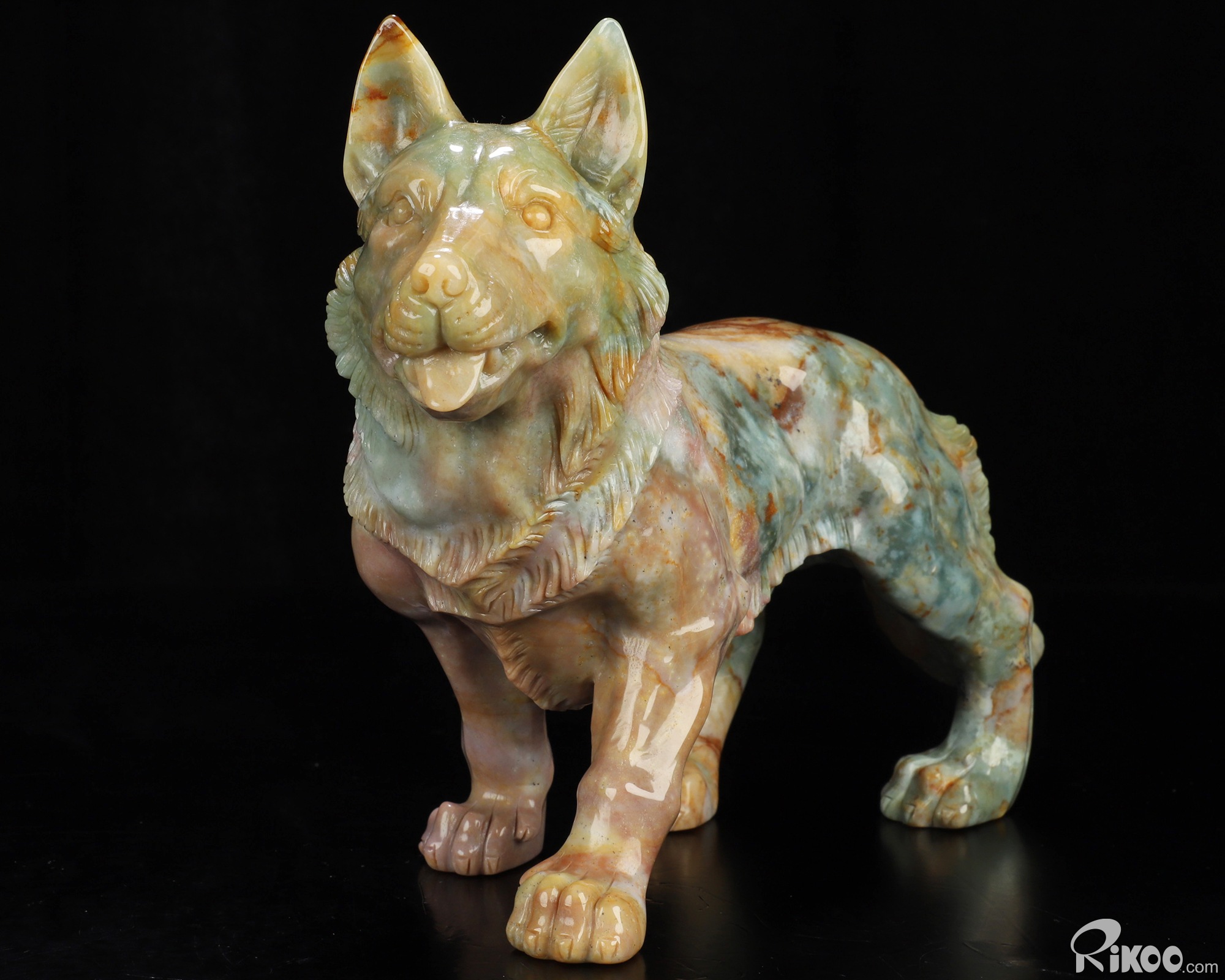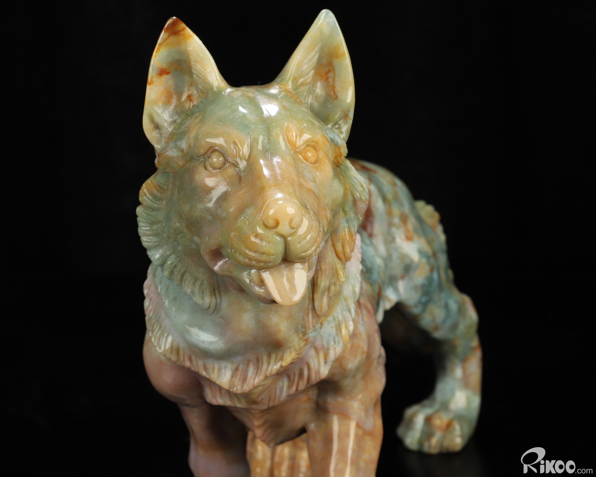 You are looking at an Indian Agate Dog/Wolfhound sculpture. The sculpture is 10 inches long.