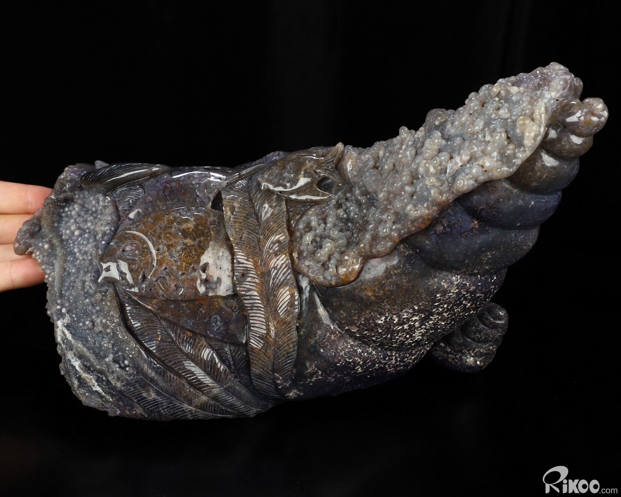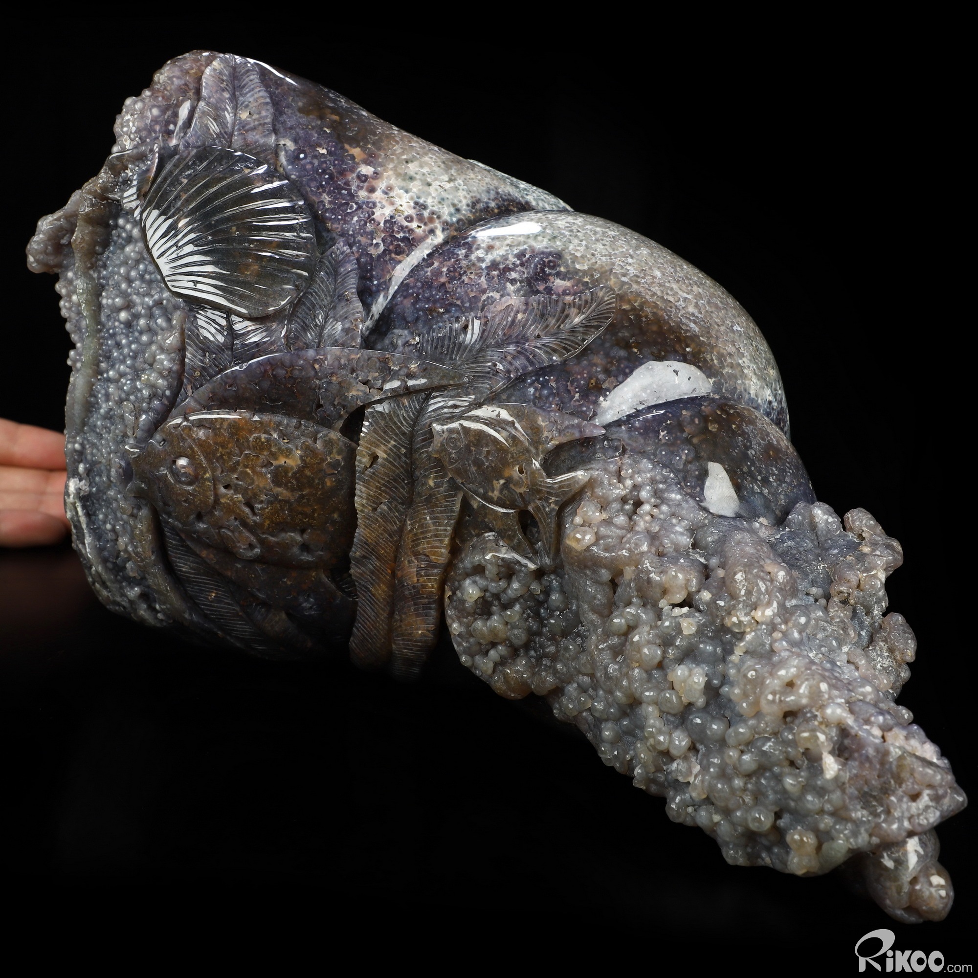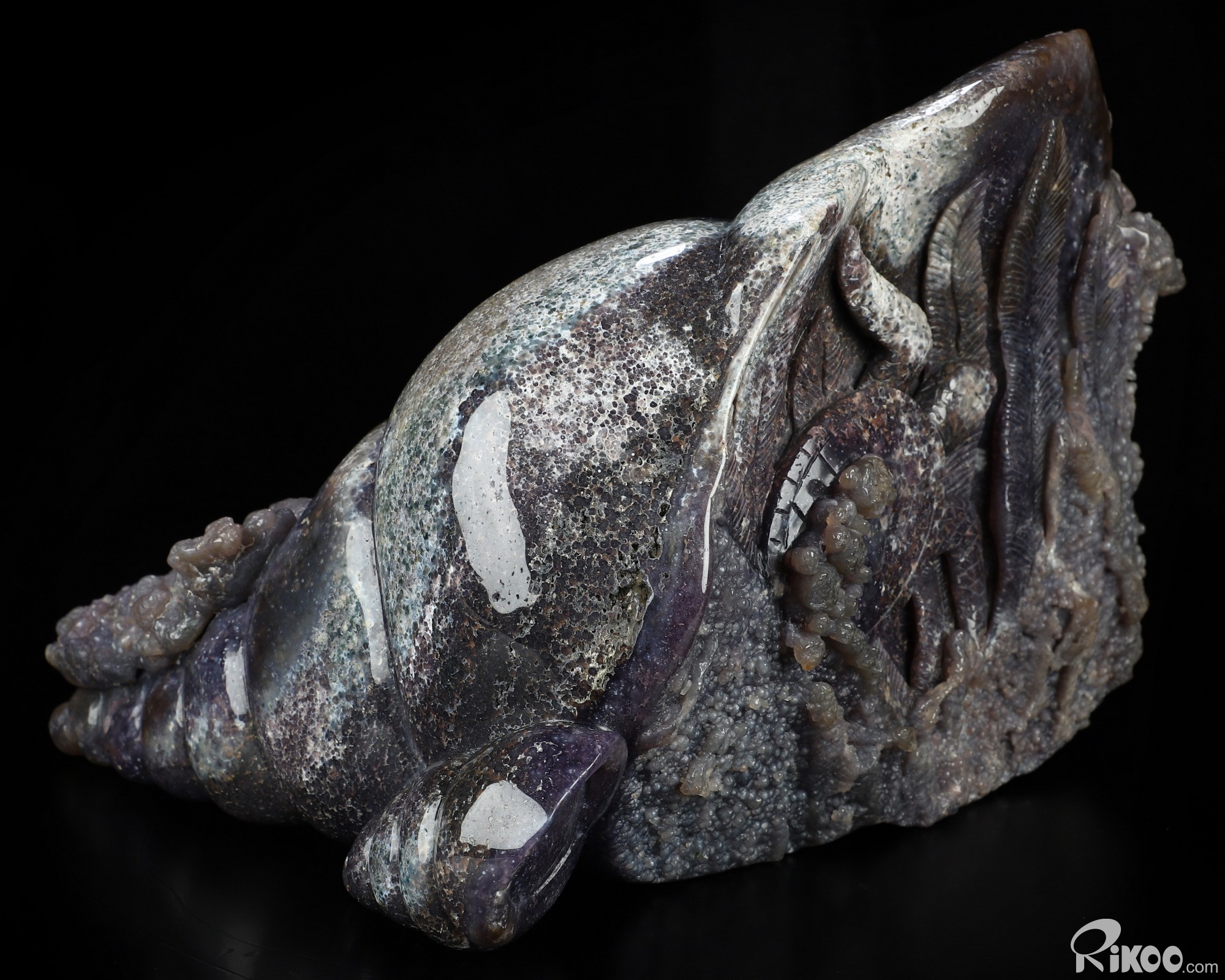 10.0" Purple Grape Agate Hand Carved Crystal Fish Sculpture, Crystal Healing