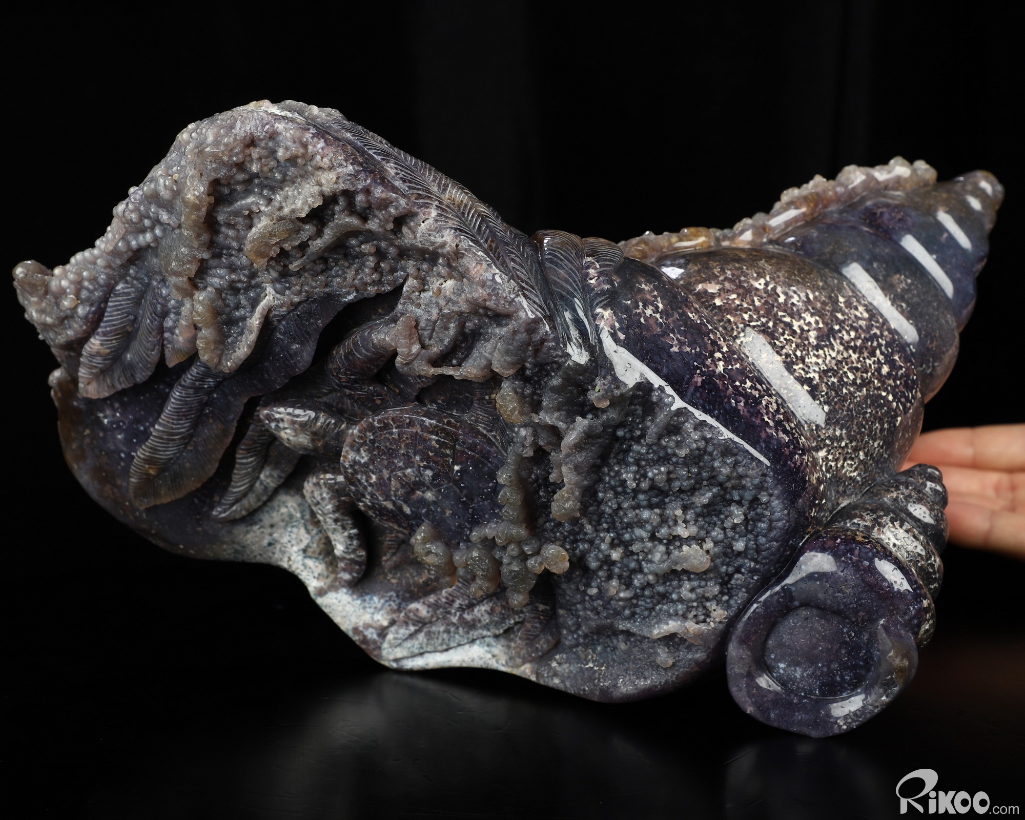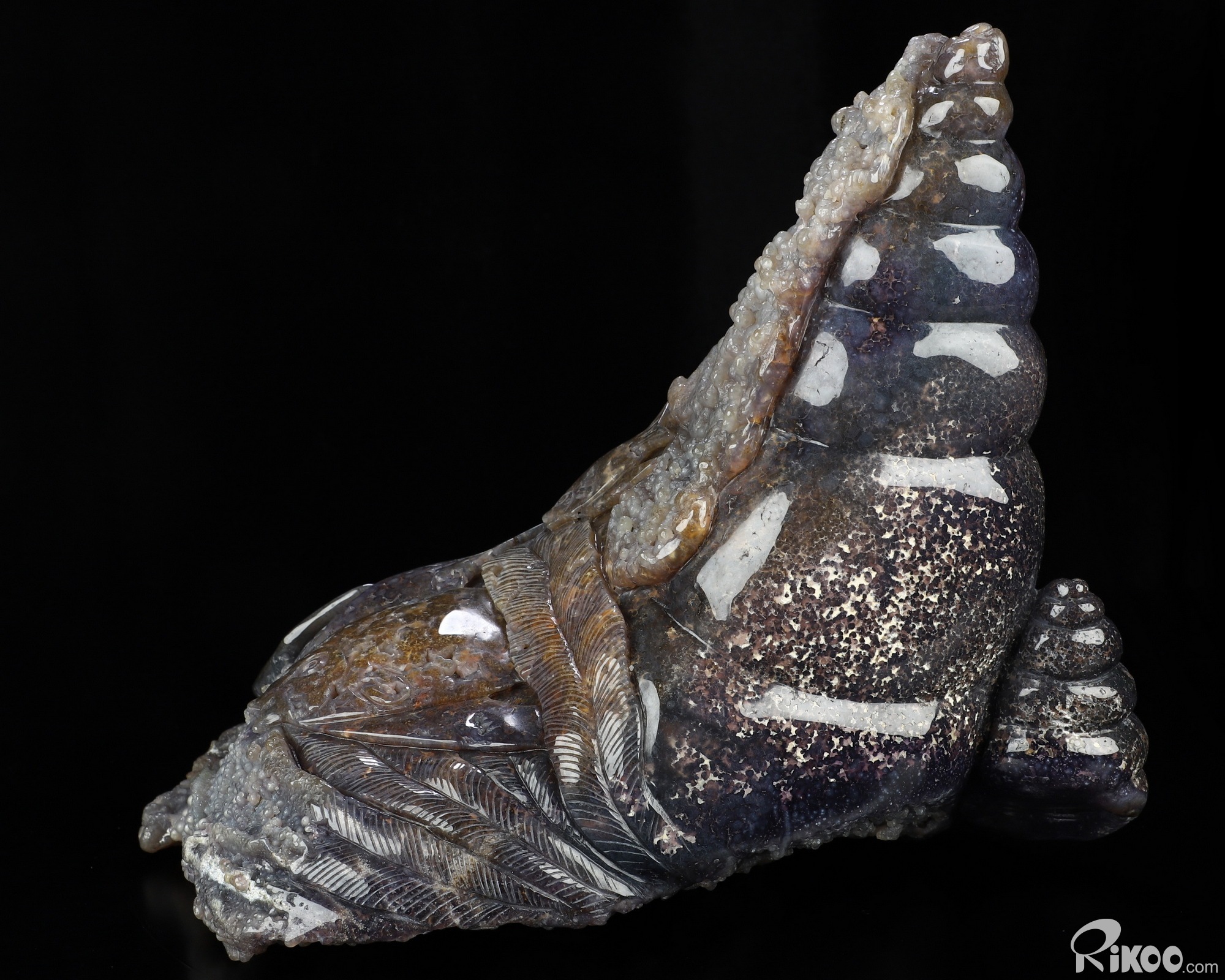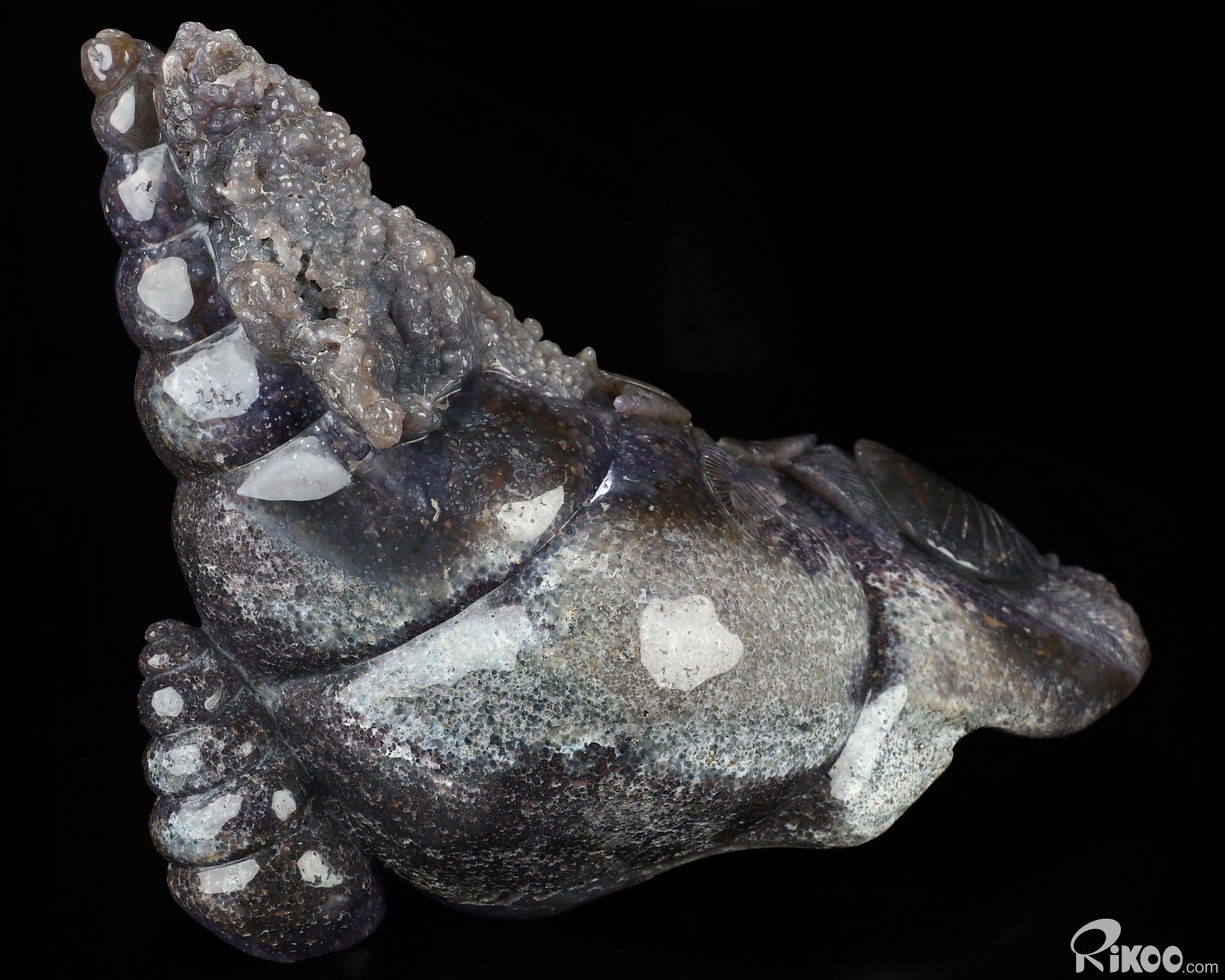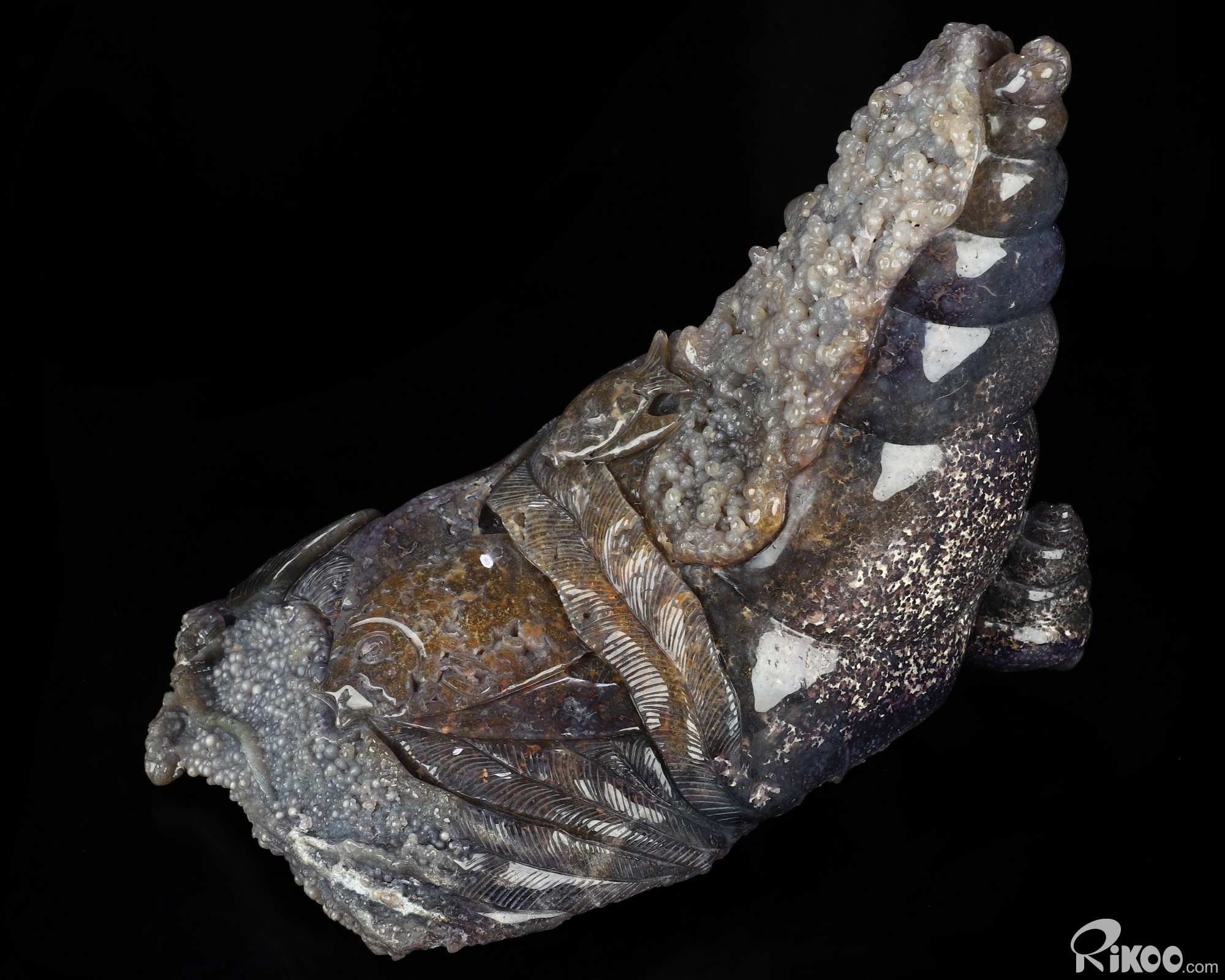 10.0" Purple Grape Agate Hand Carved Crystal Fish Sculpture, Crystal Healing