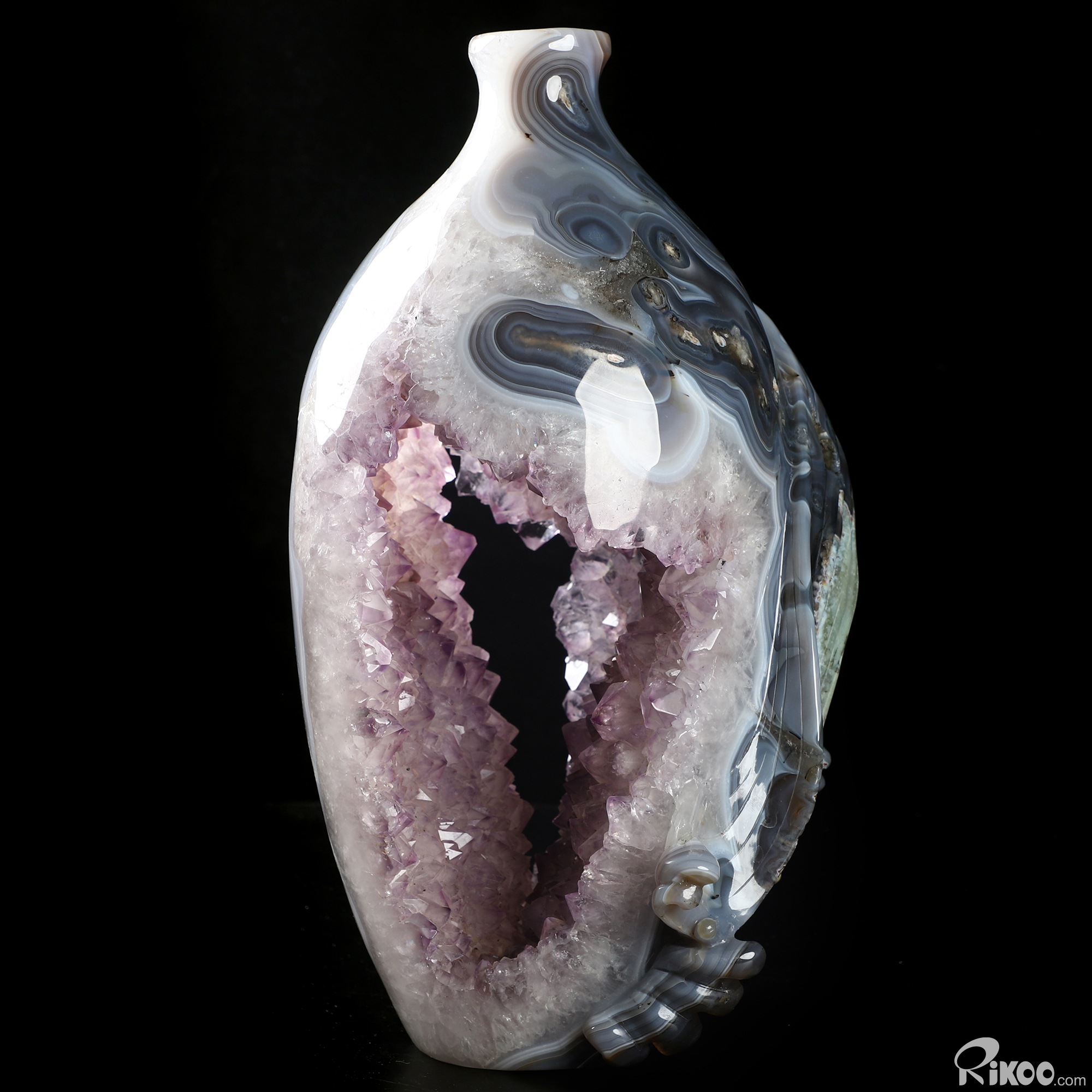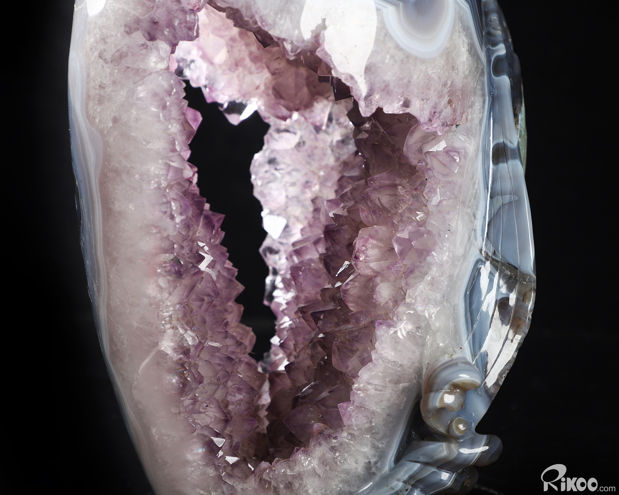 You are looking at an Agate Amethyst Geode sculpture. The sculpture is 10.4 inches long.
