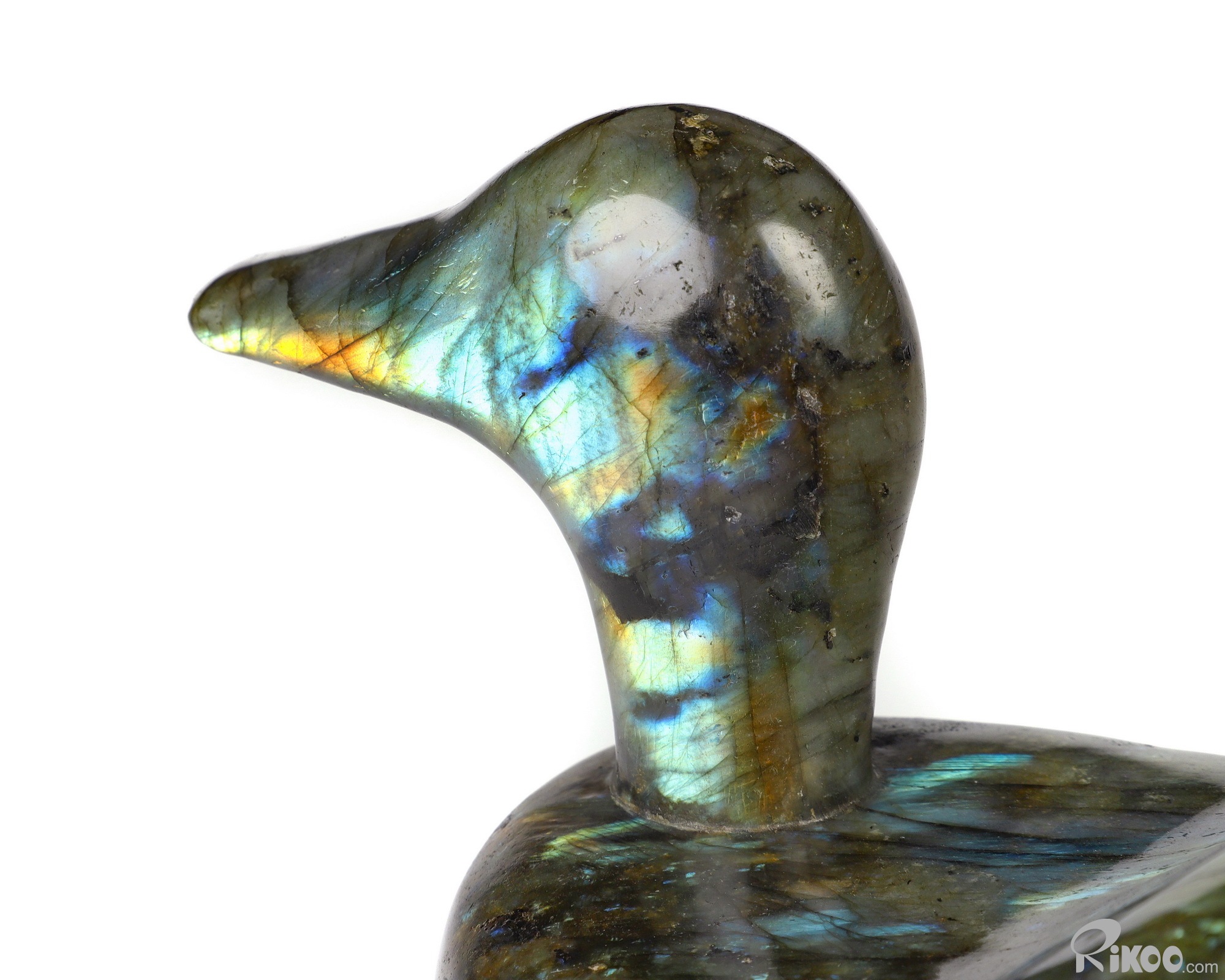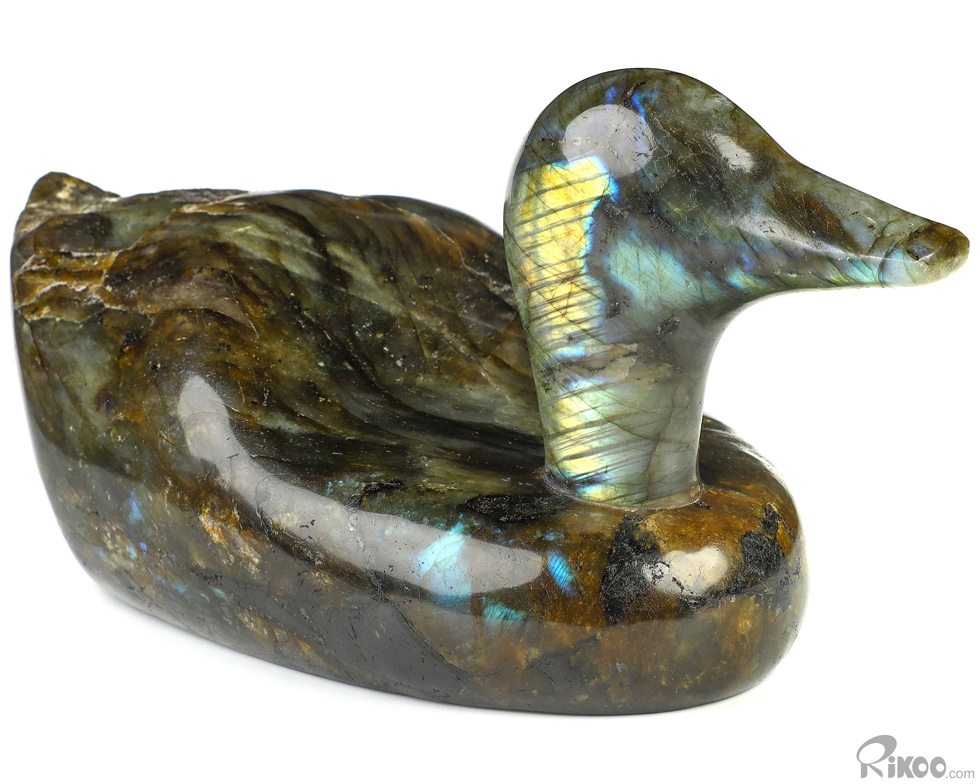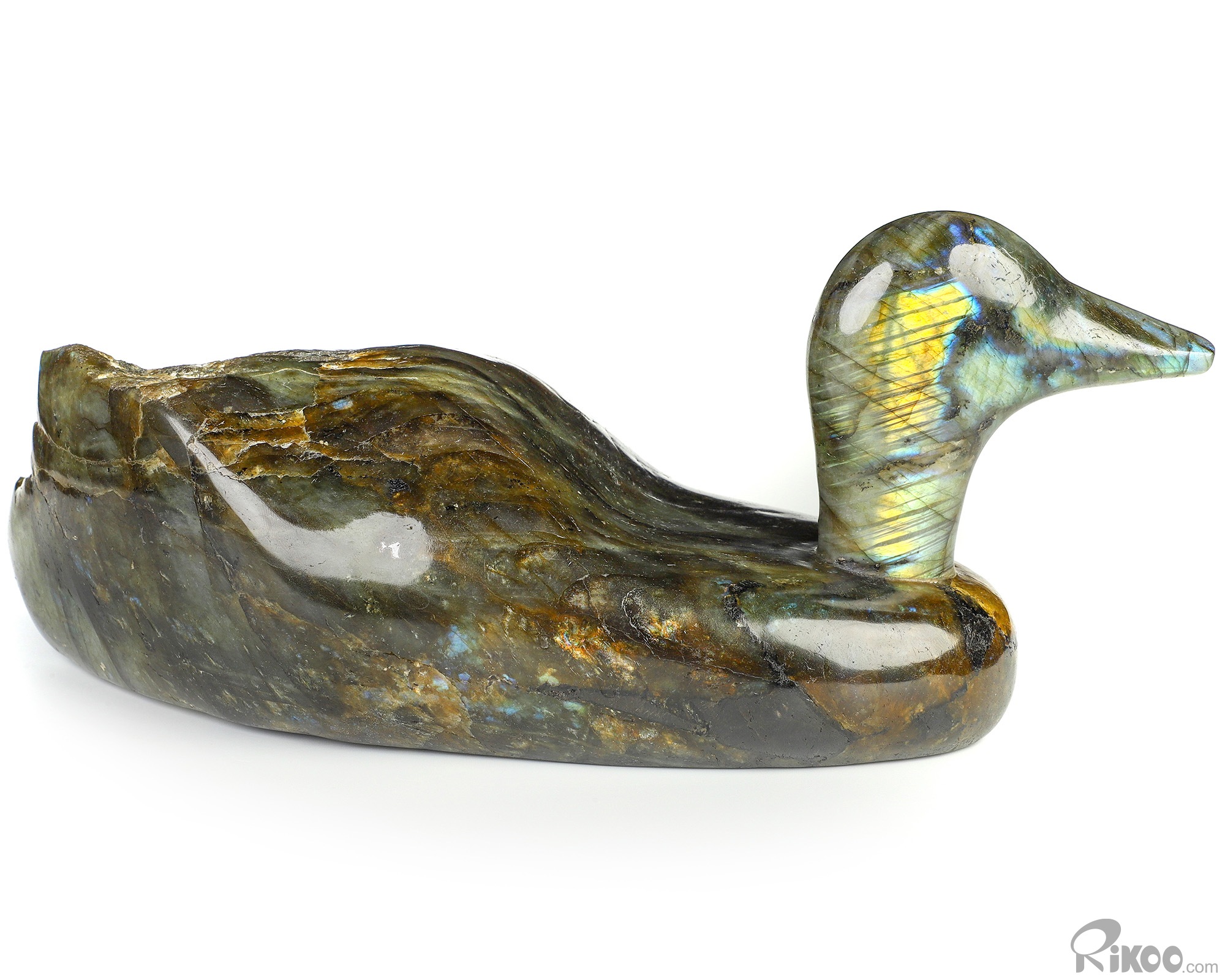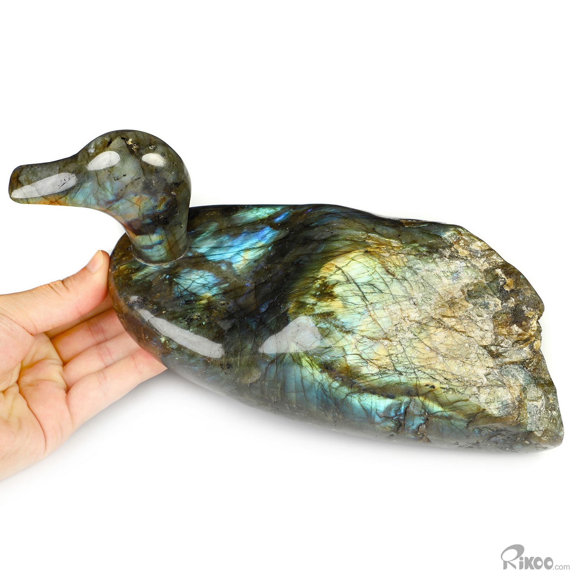 10.4" Labradorite Hand Carved Crystal Duck Sculpture, Crystal Healing
