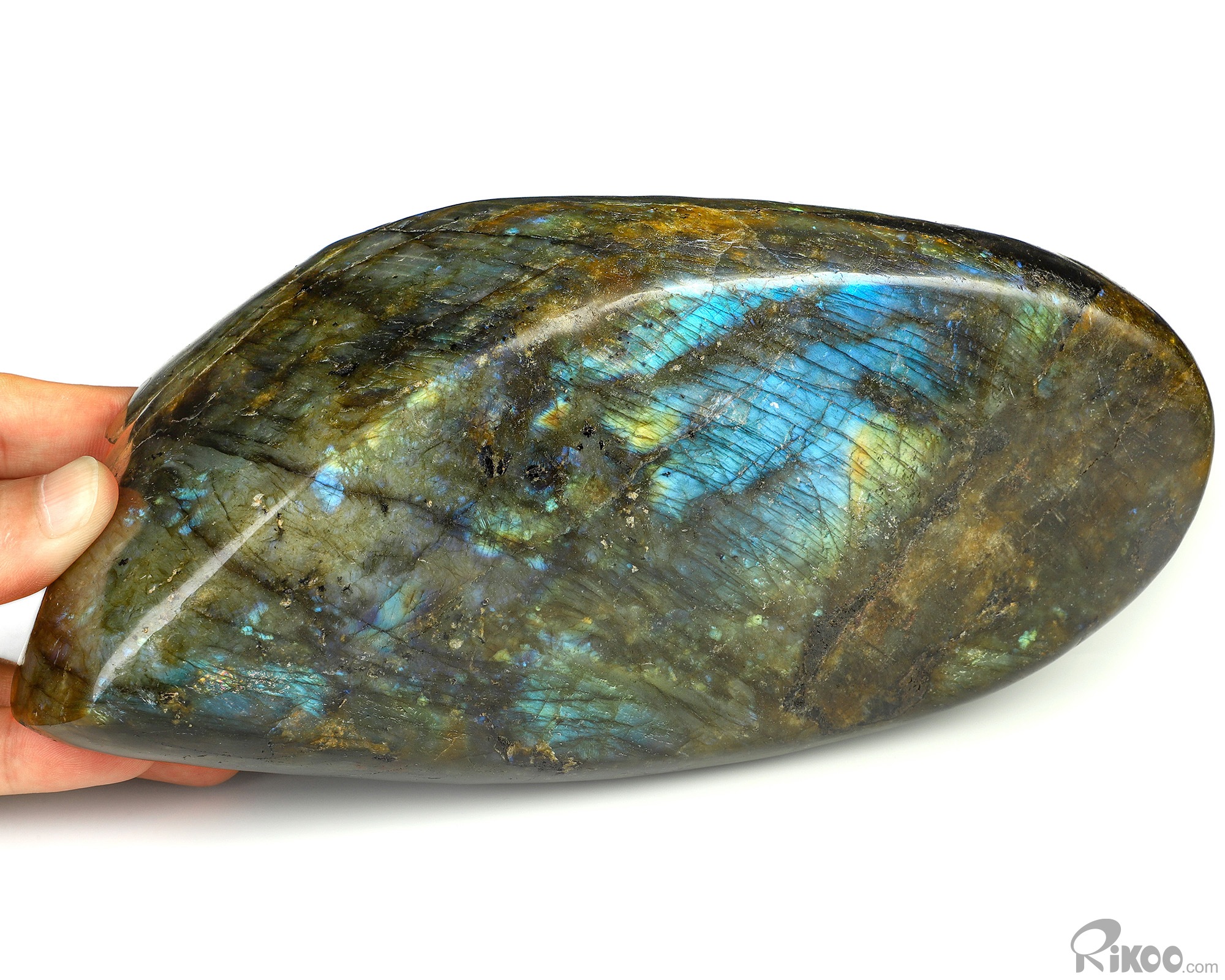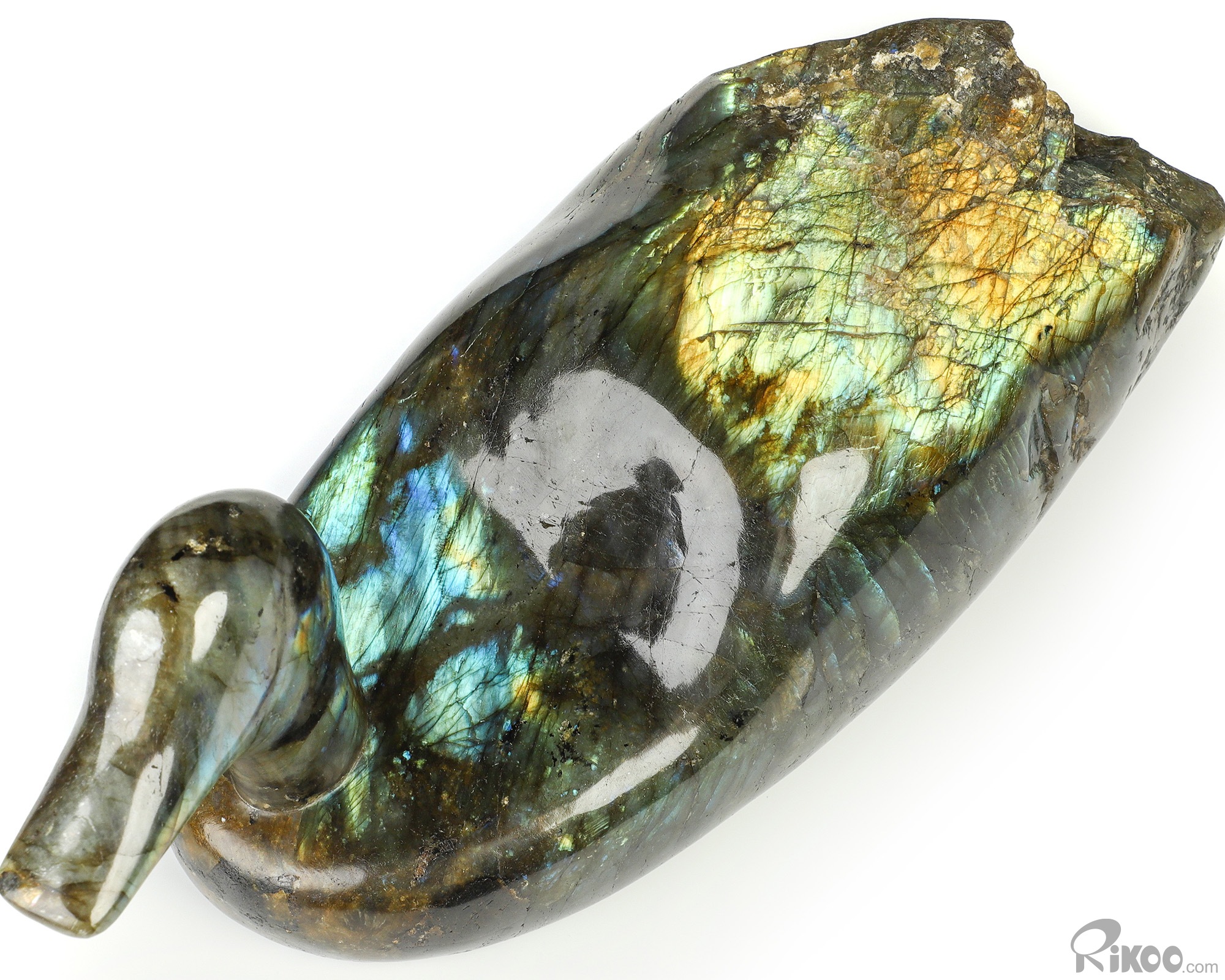 You are looking at a Labradorite sculpture. The sculpture is 10.4 inches long.