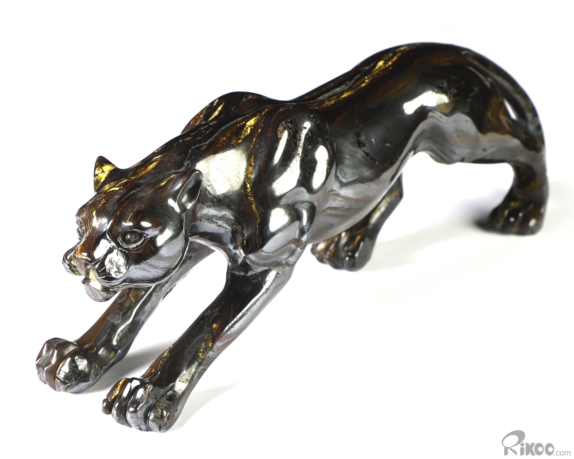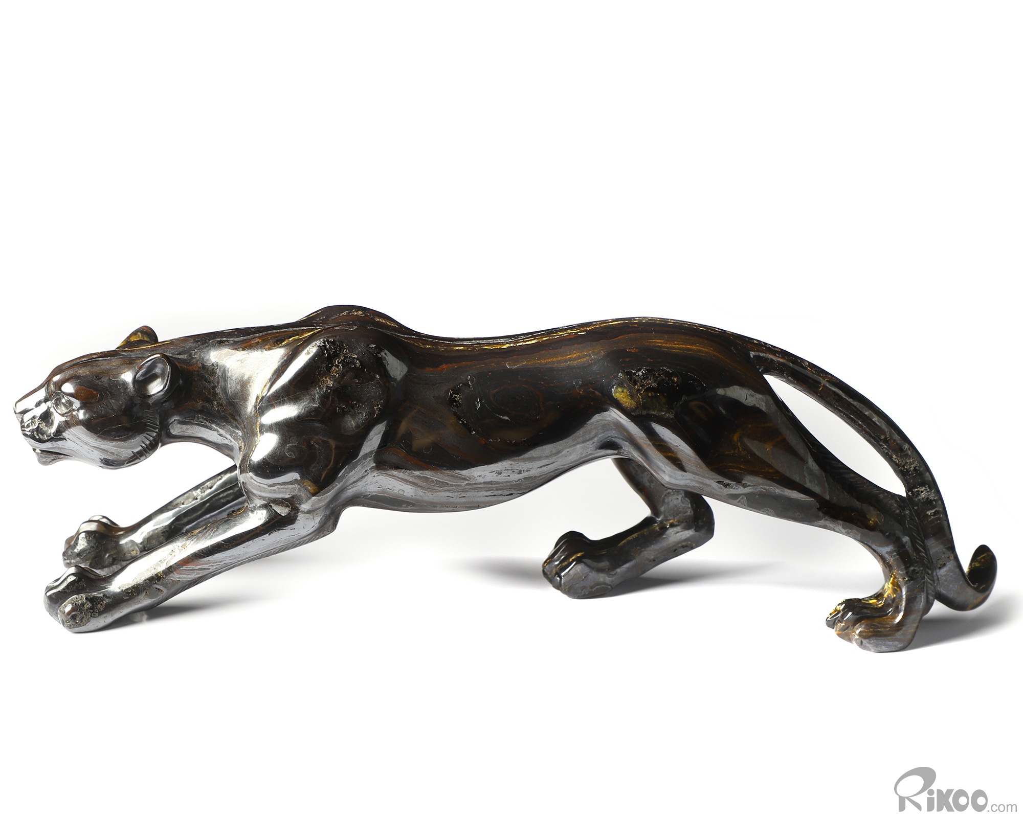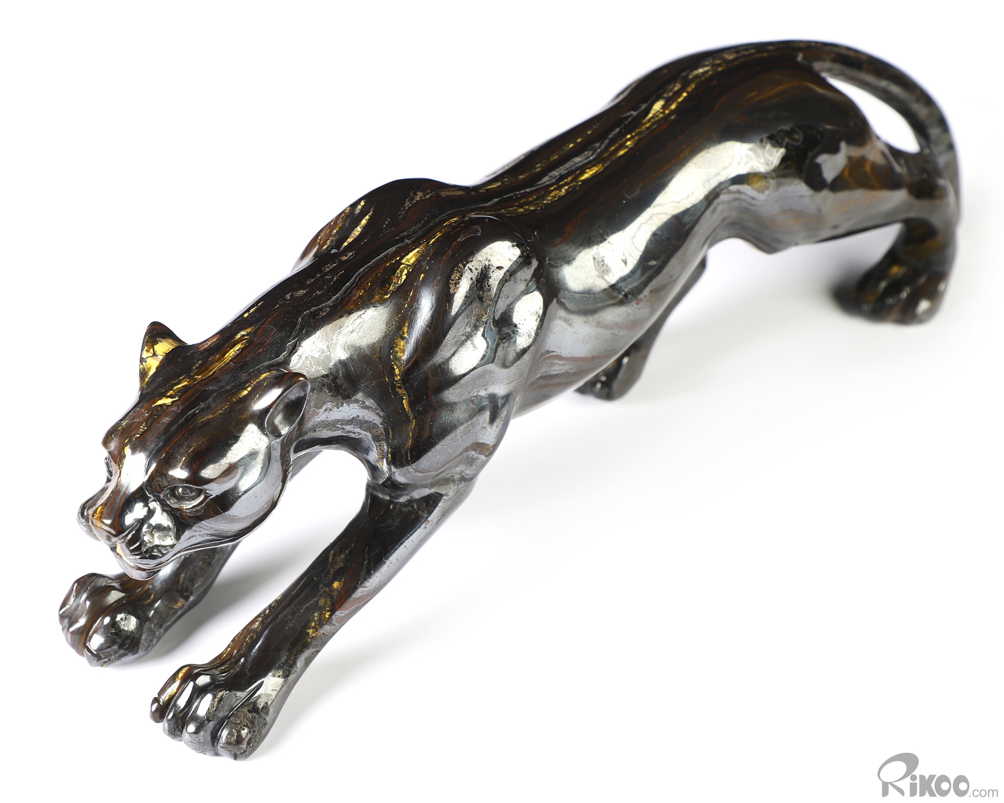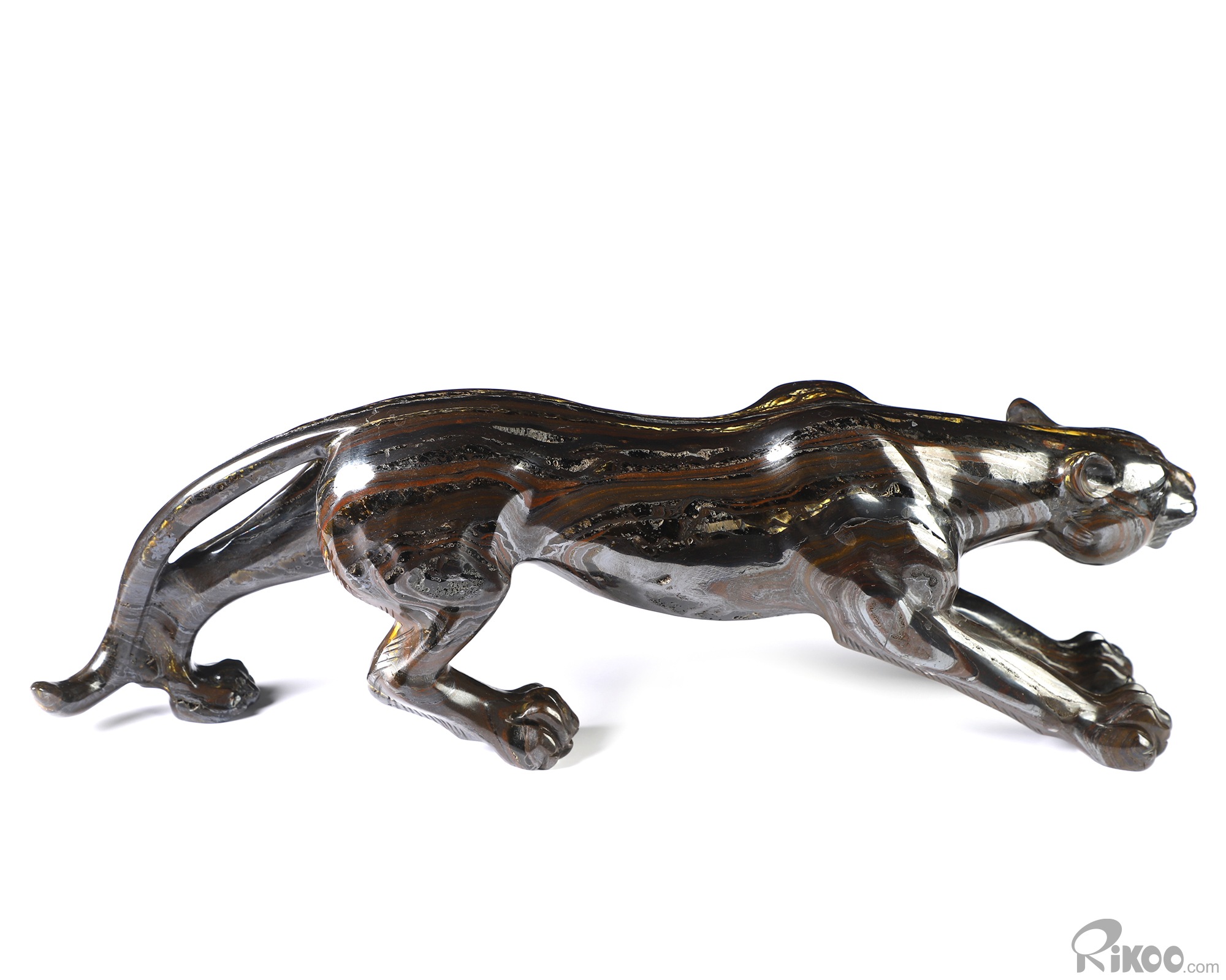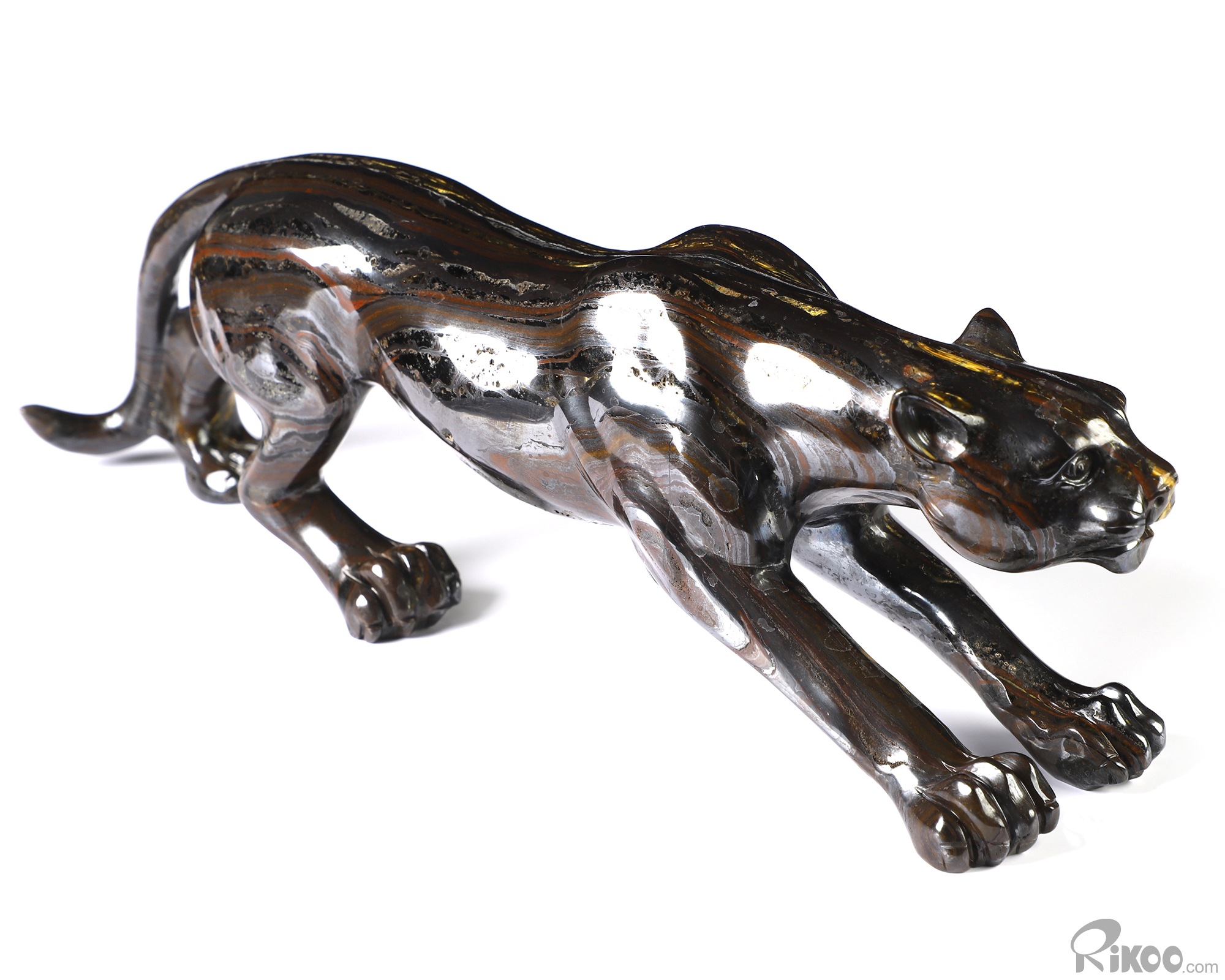 10.5" Colorful Tiger Iron Eye Hand Carved Crystal Leopard Sculpture, Crystal Healing