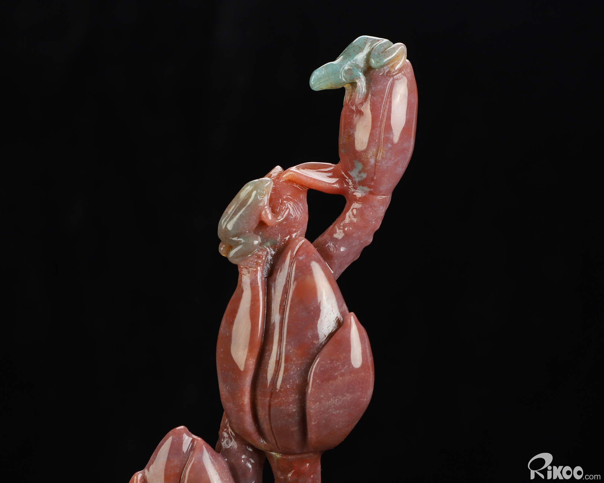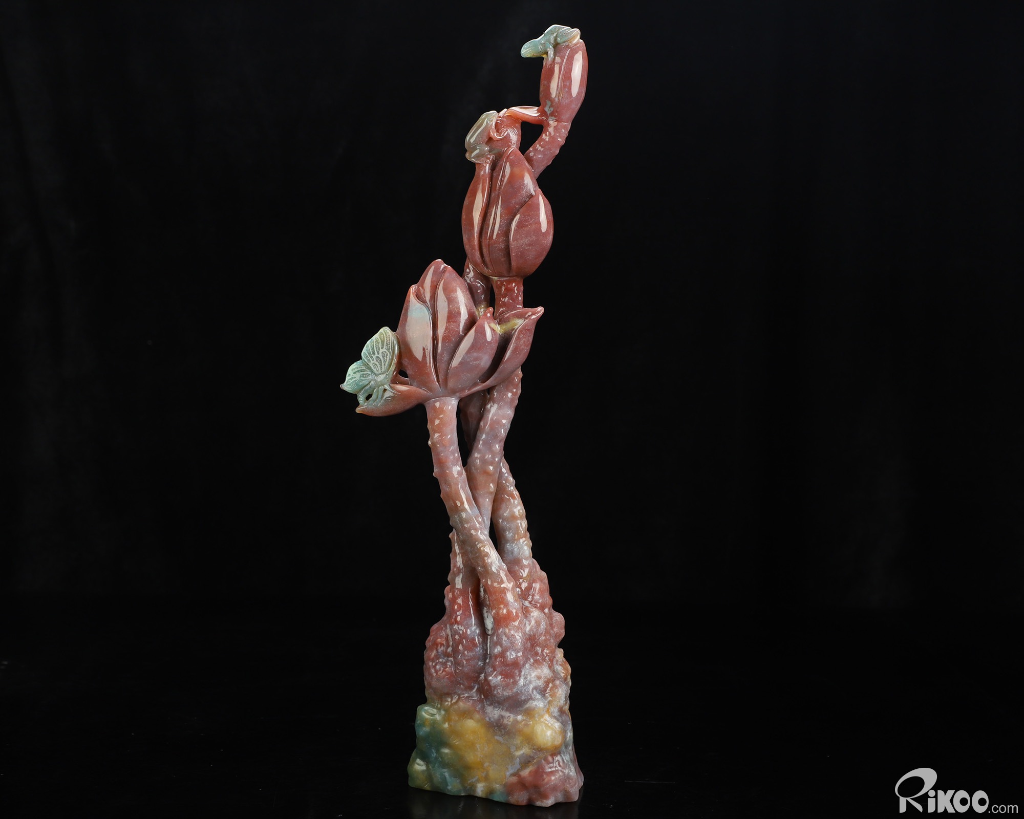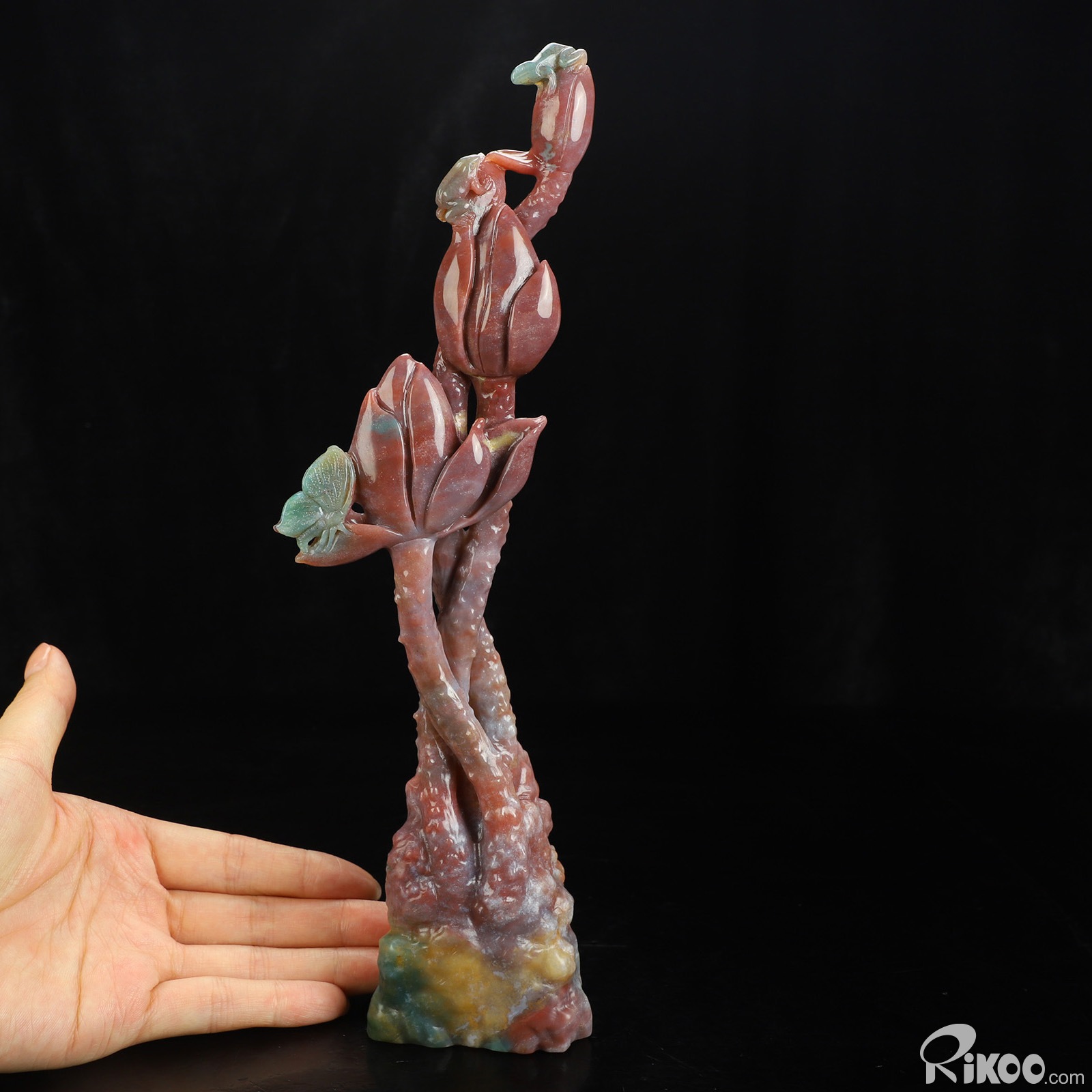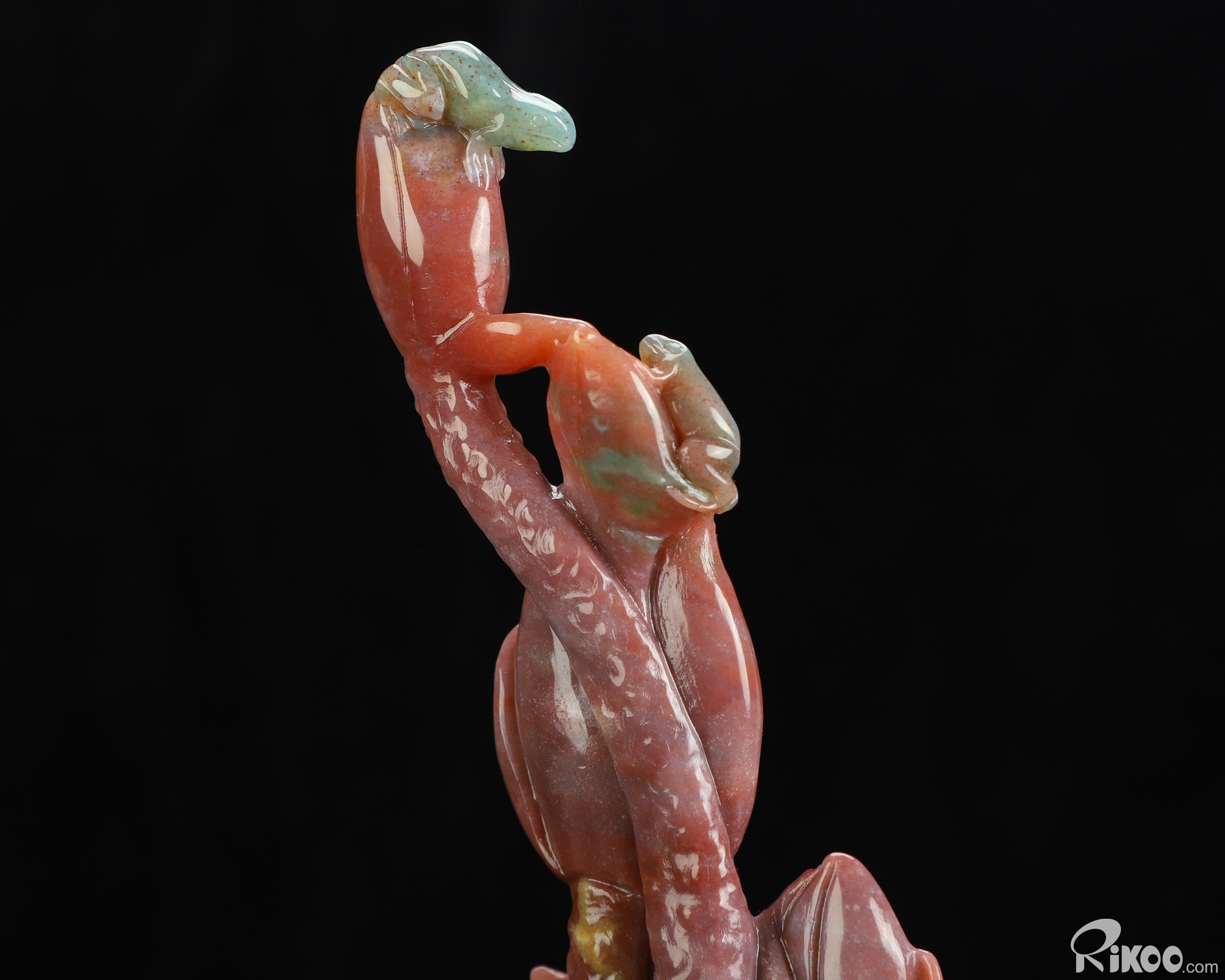You are looking at an Indian Agate Plant & Frog sculpture. The sculpture is 10.5 inches long.
