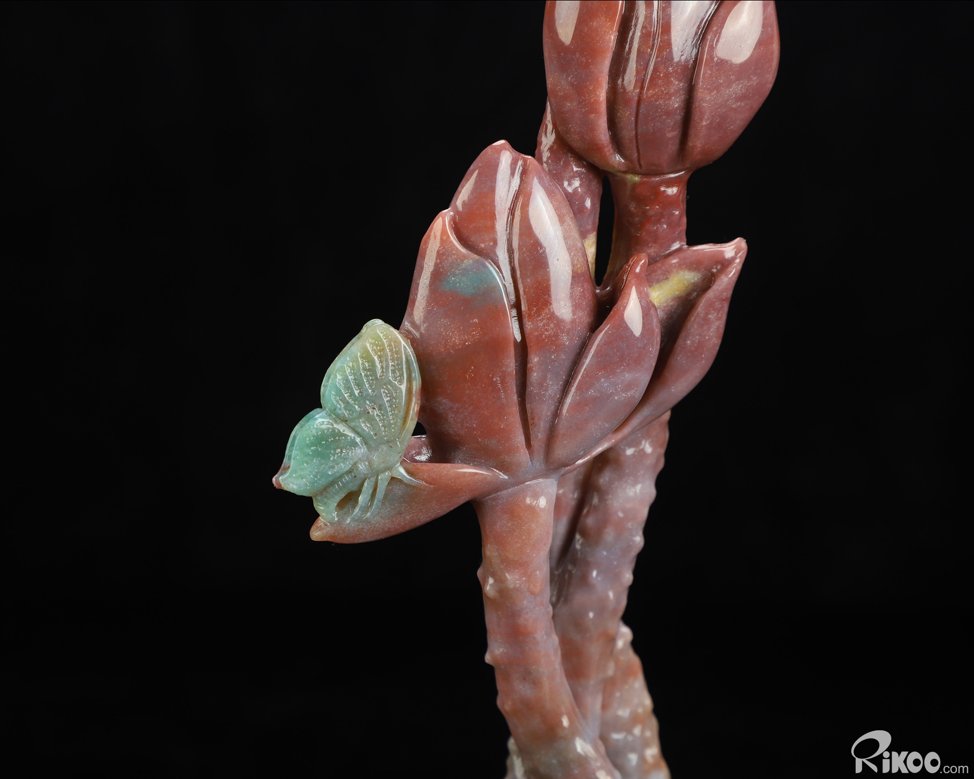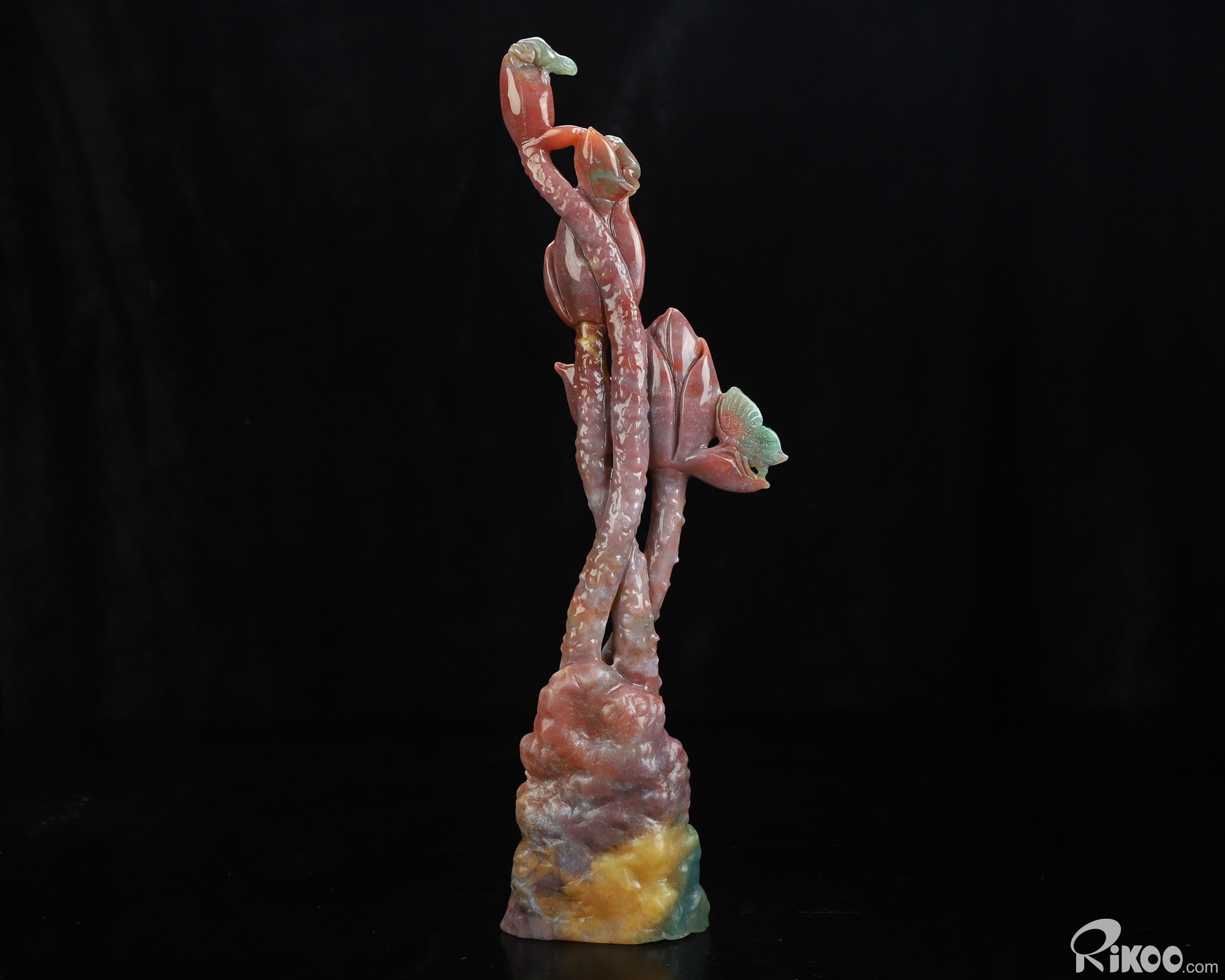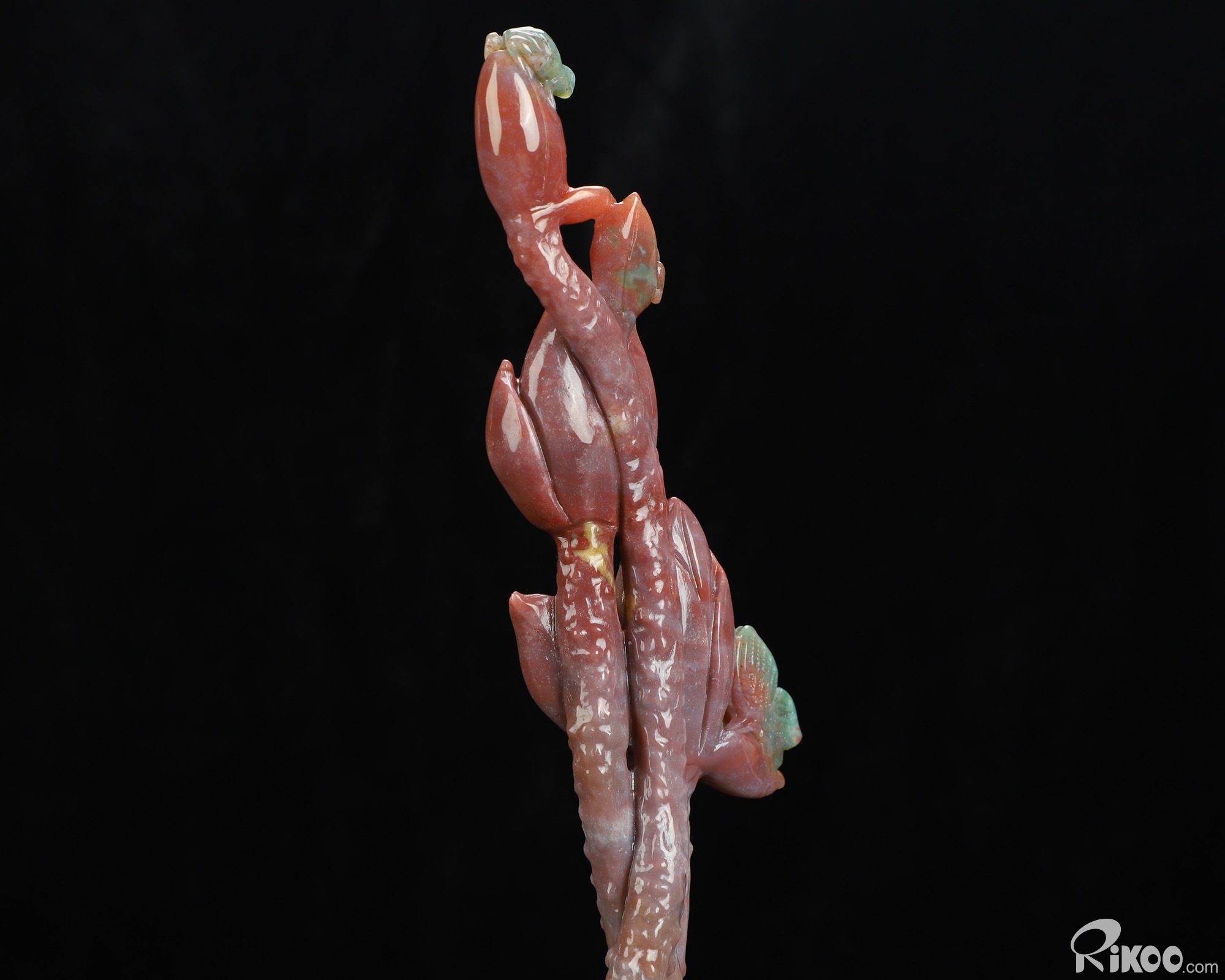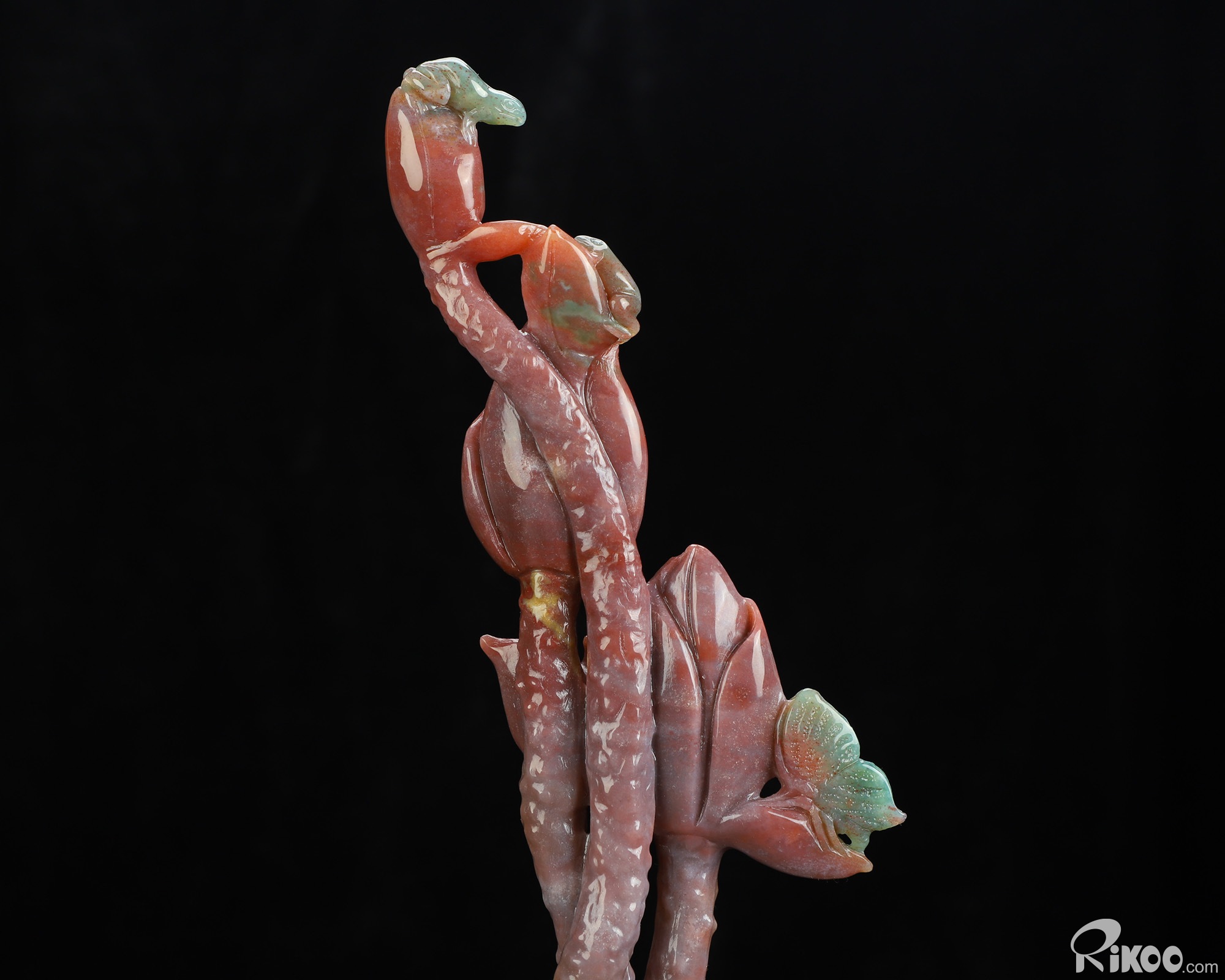 You are looking at an Indian Agate Plant & Frog sculpture. The sculpture is 10.5 inches long.
