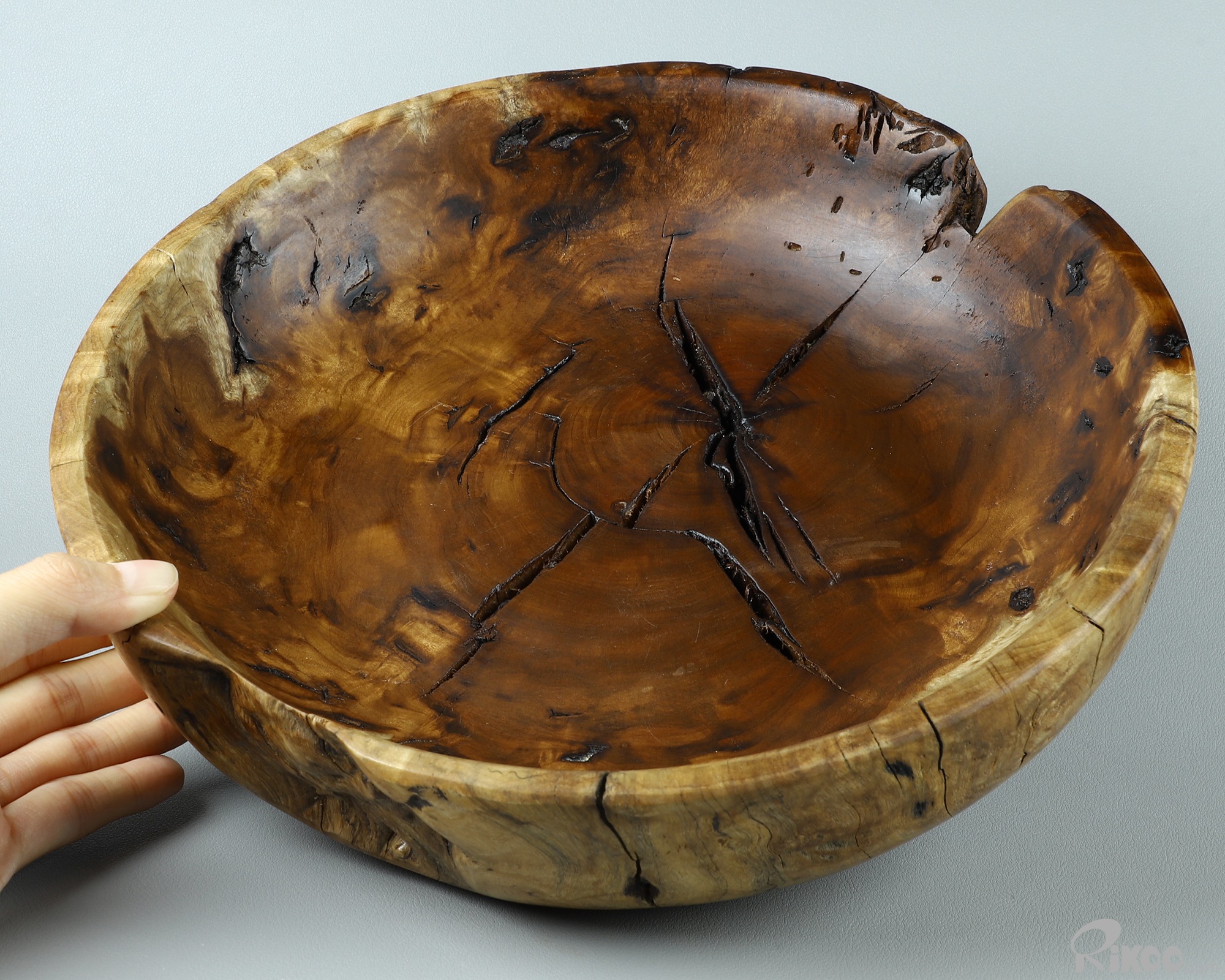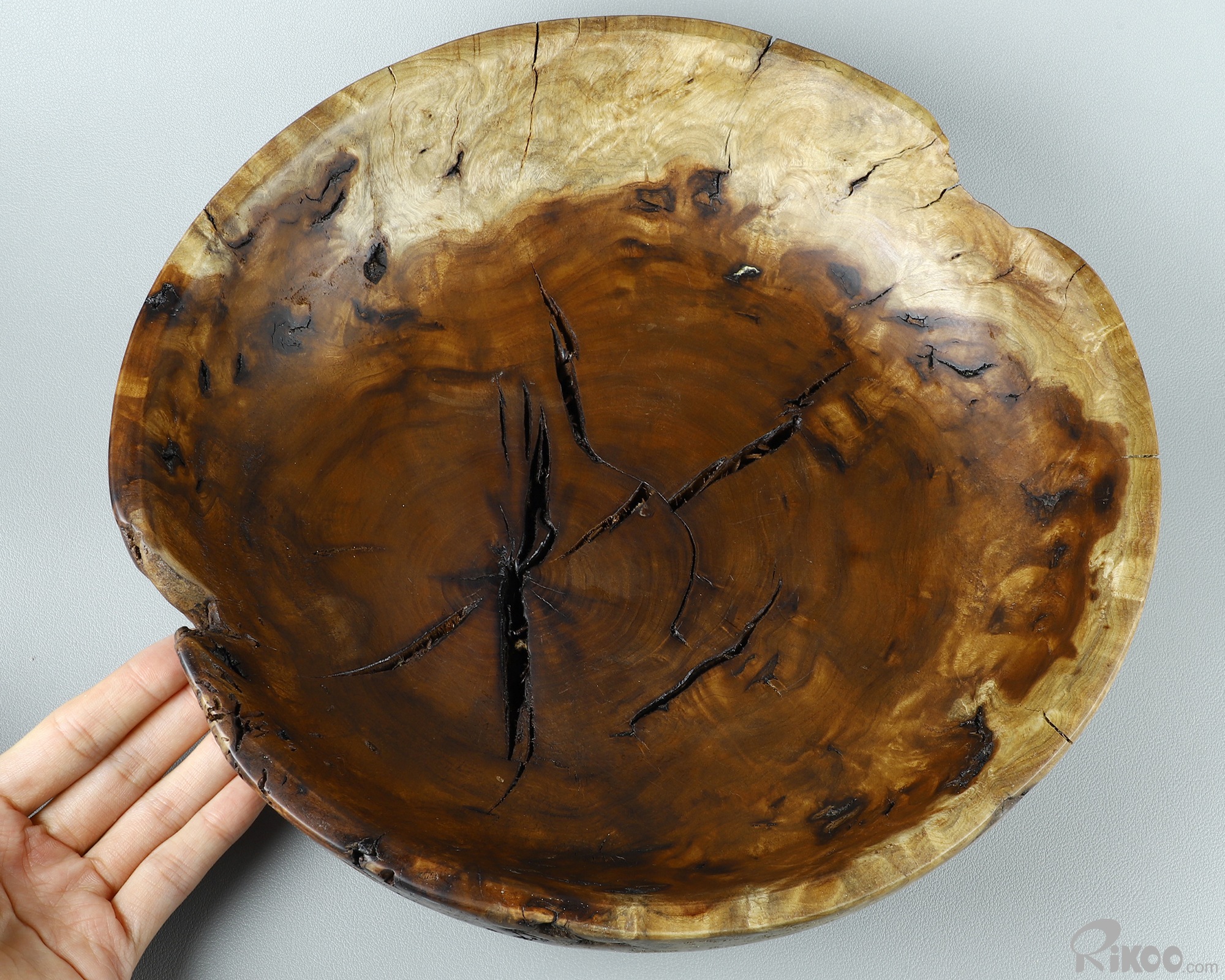 10.7" Wood Hand Carved Crystal Bowl, Crystal Healing