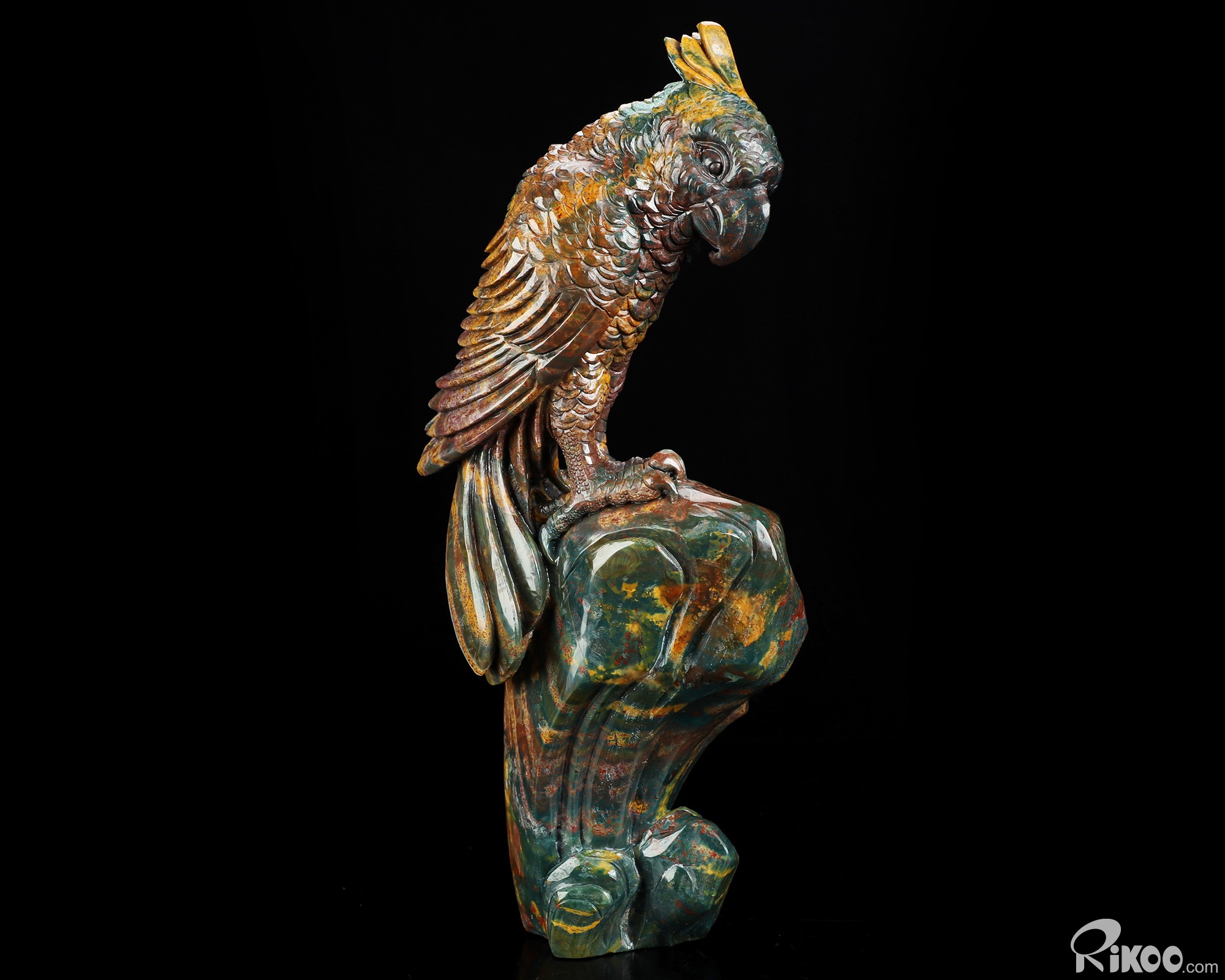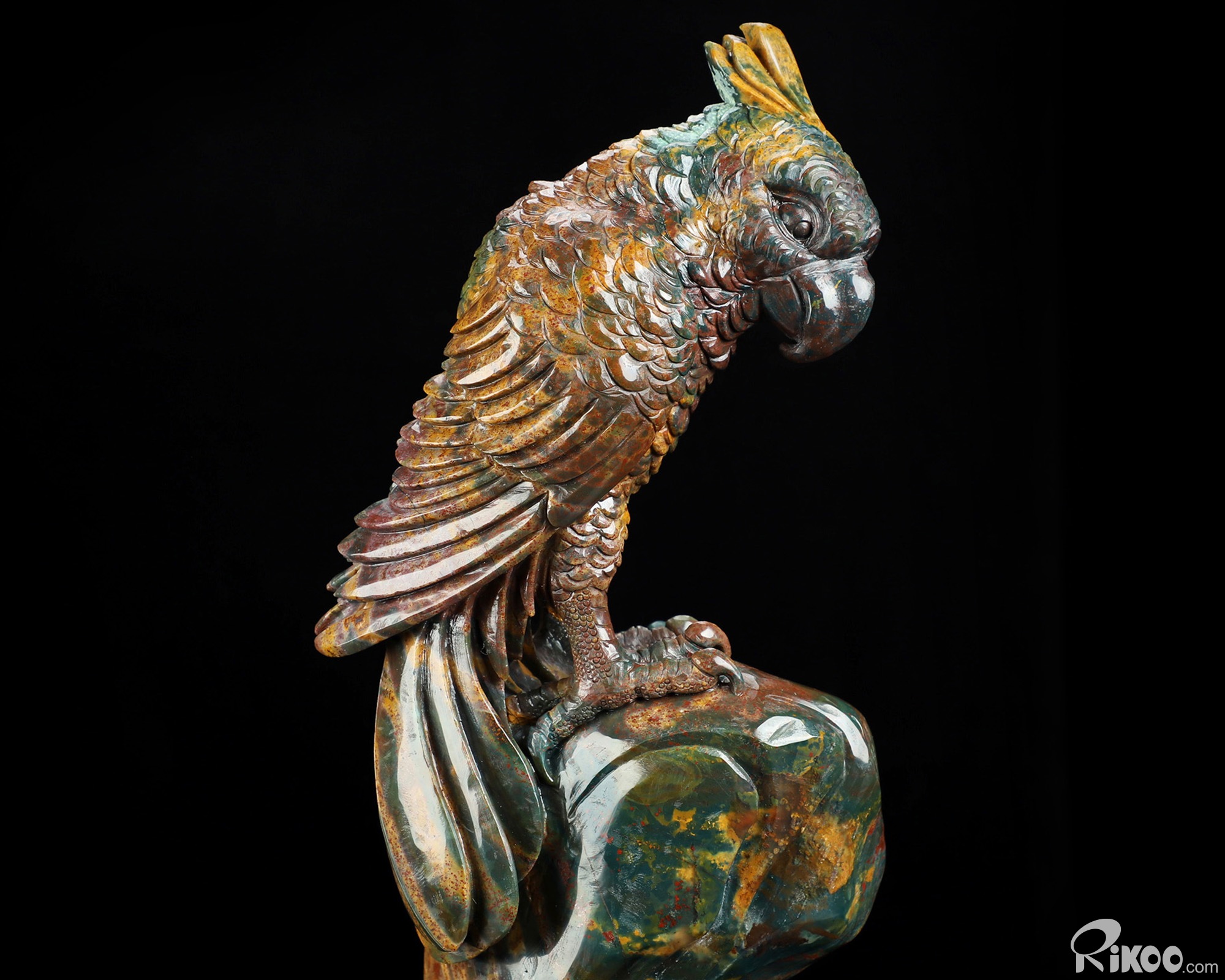 You are looking at a Bloodstone sculpture. The sculpture is 10.8 inches long.