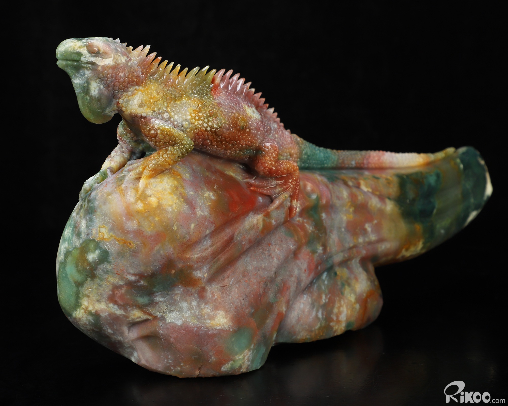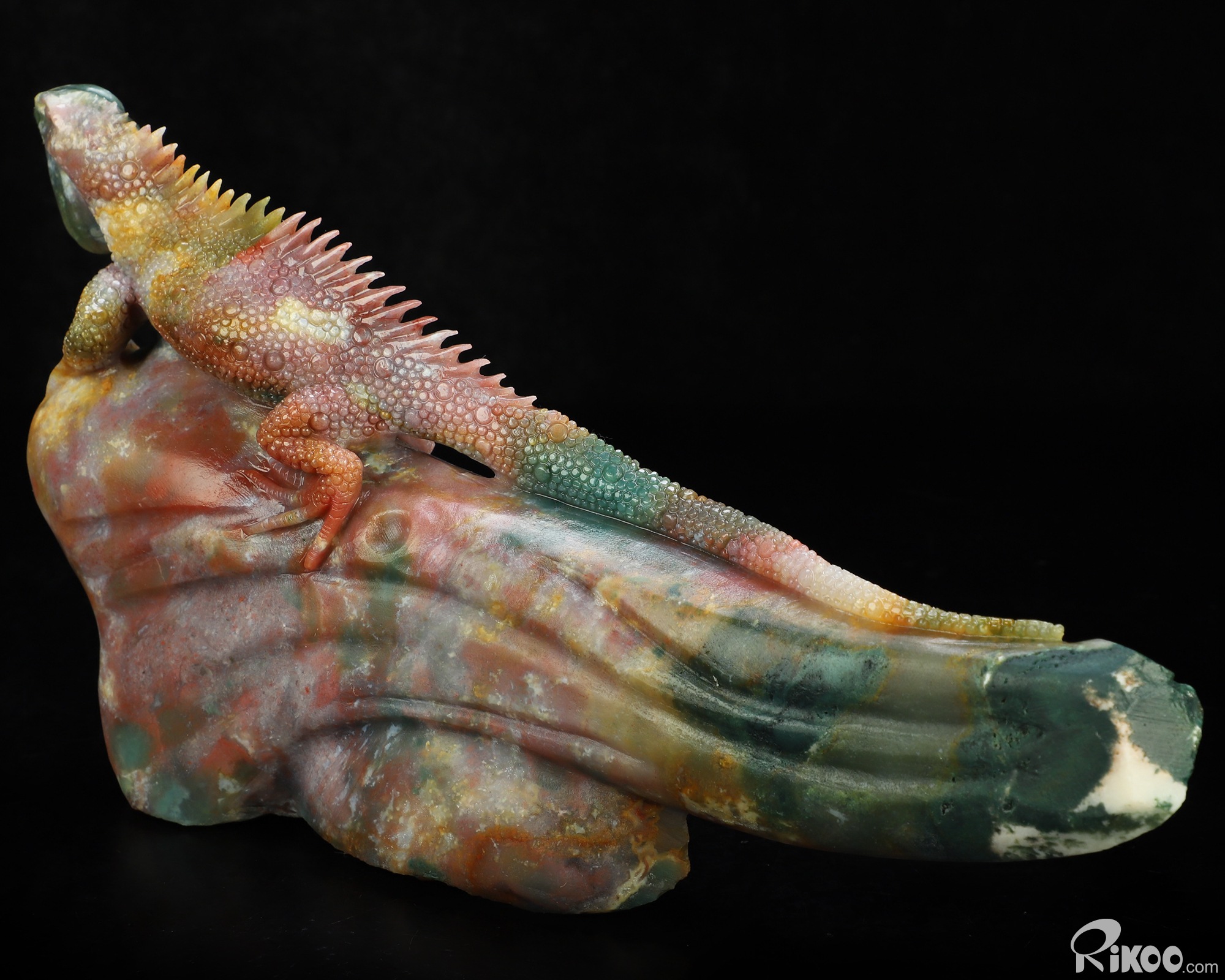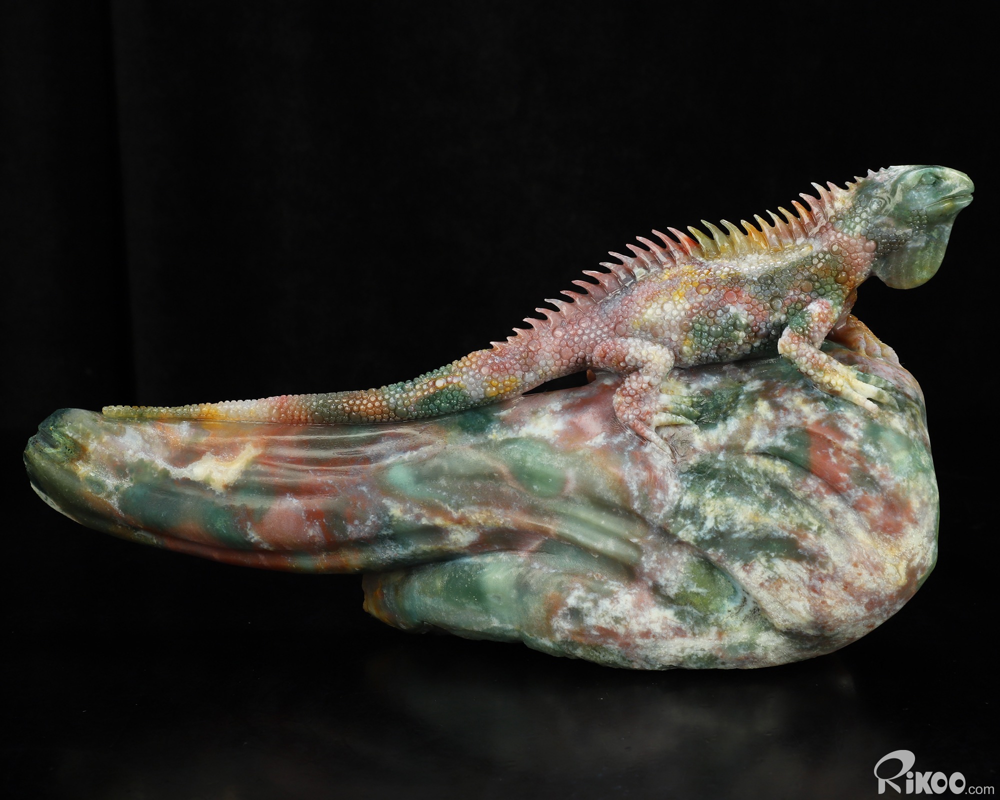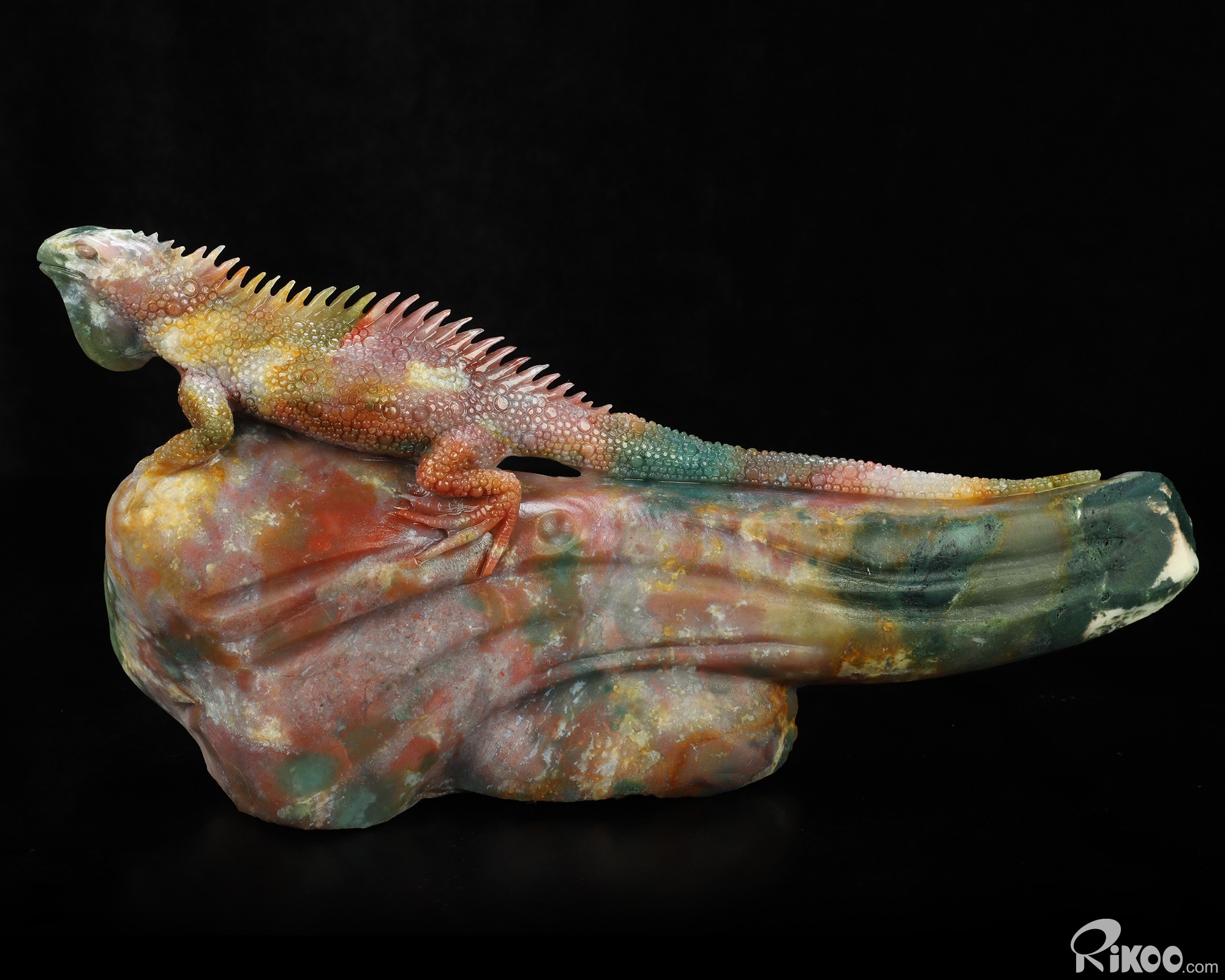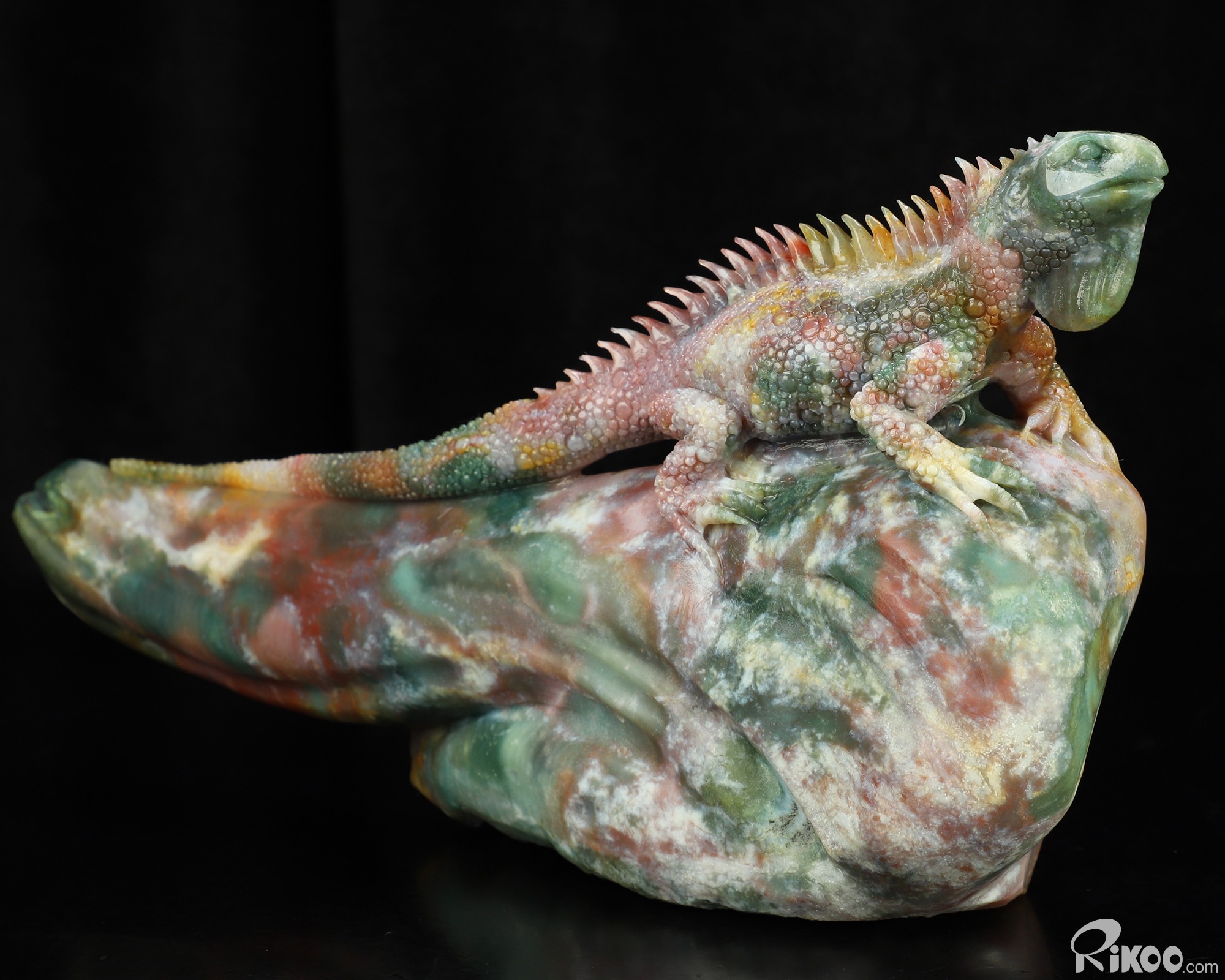 10.8" Indian Agate Hand Carved Crystal Lizard Sculpture, Crystal Healing