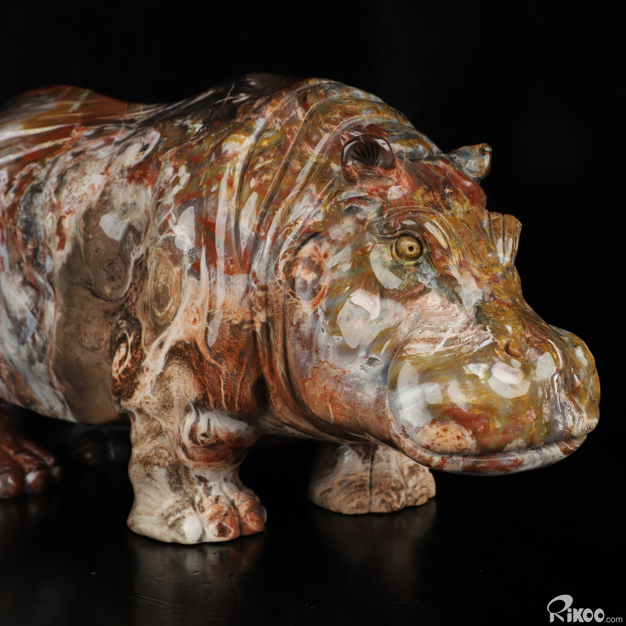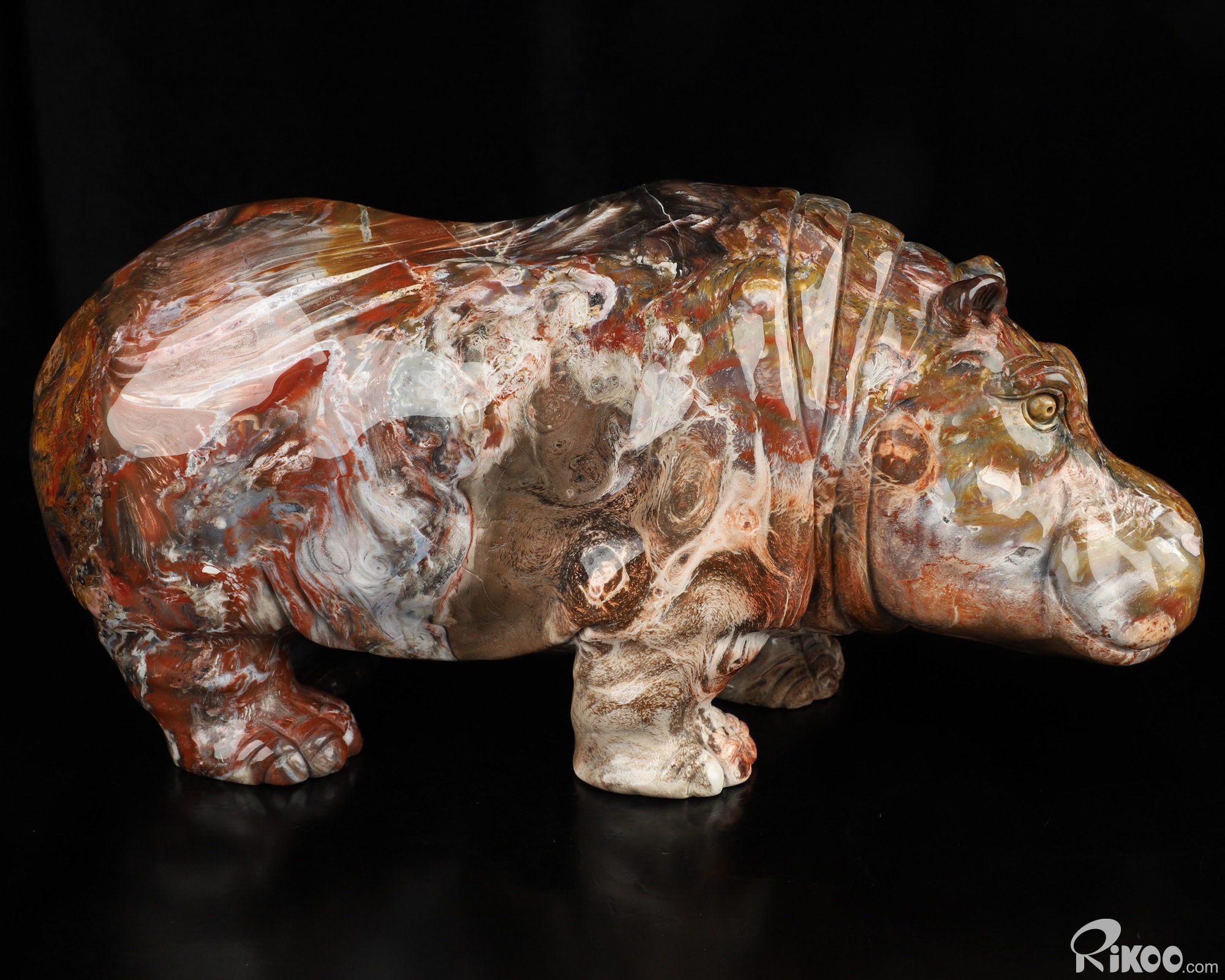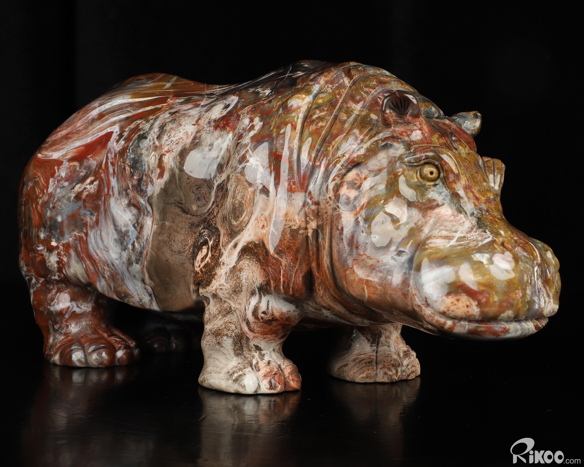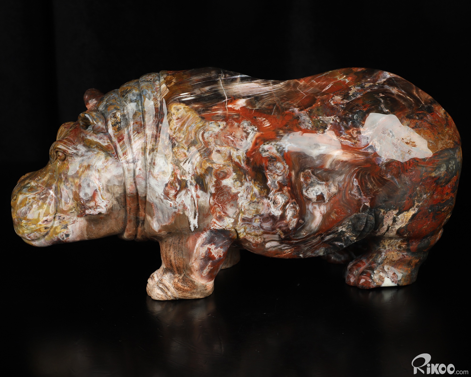 Awesome 10.8" Petrified Wood Hand Carved Crystal Hippo Sculpture, Crystal Healing