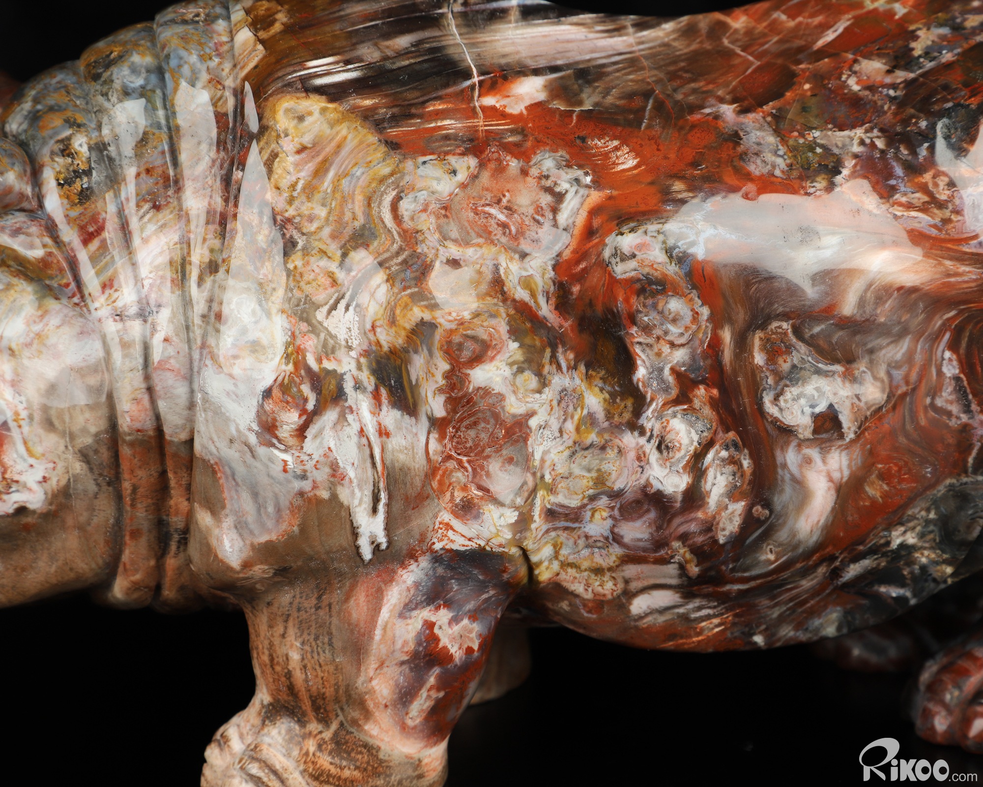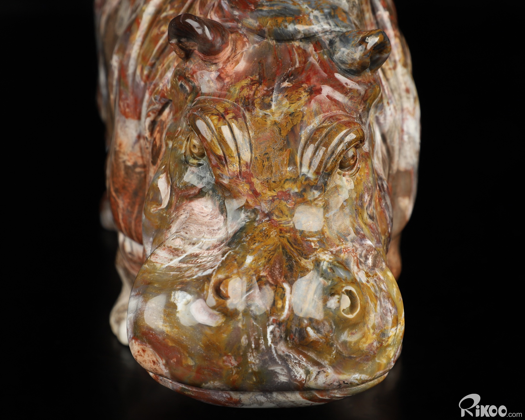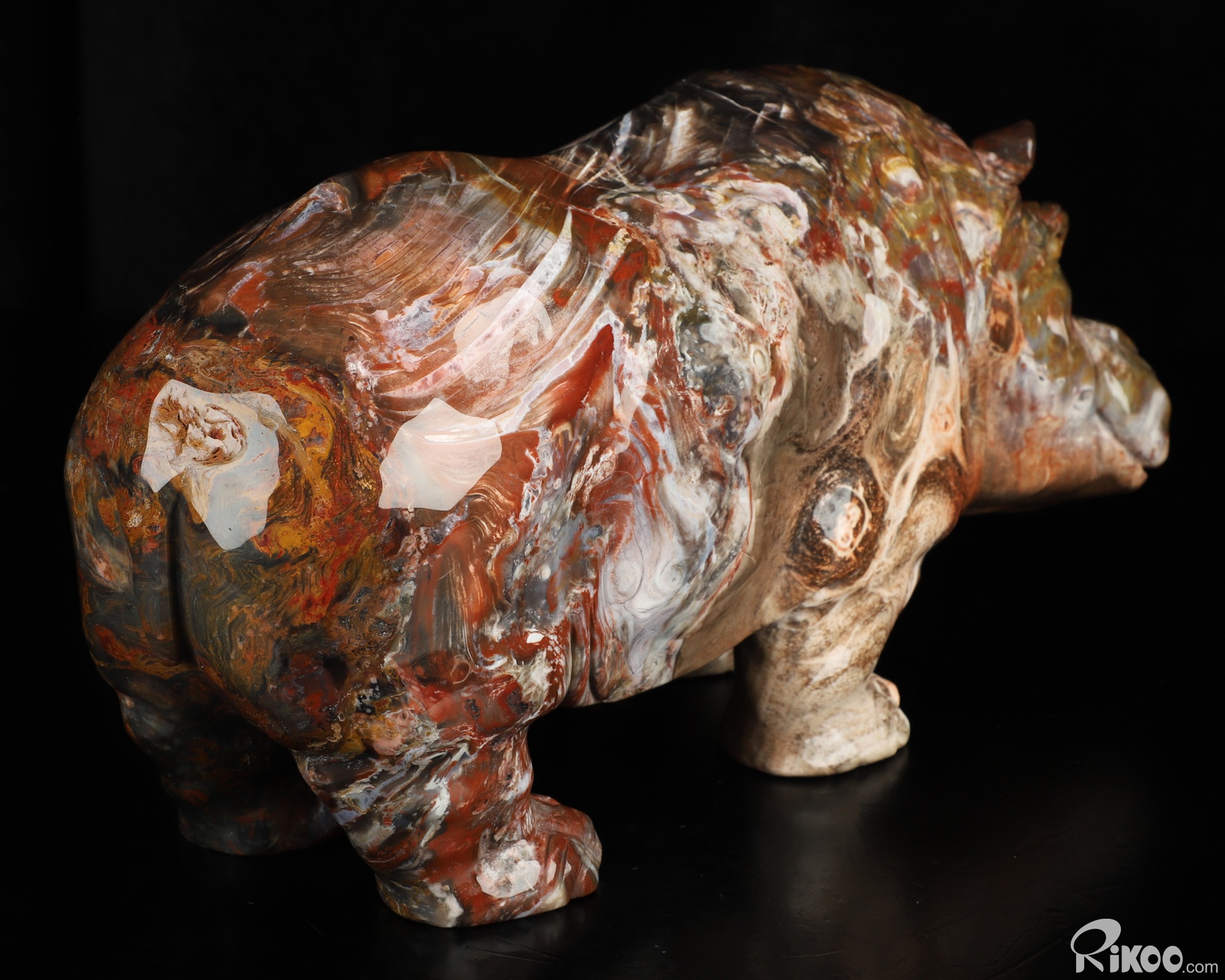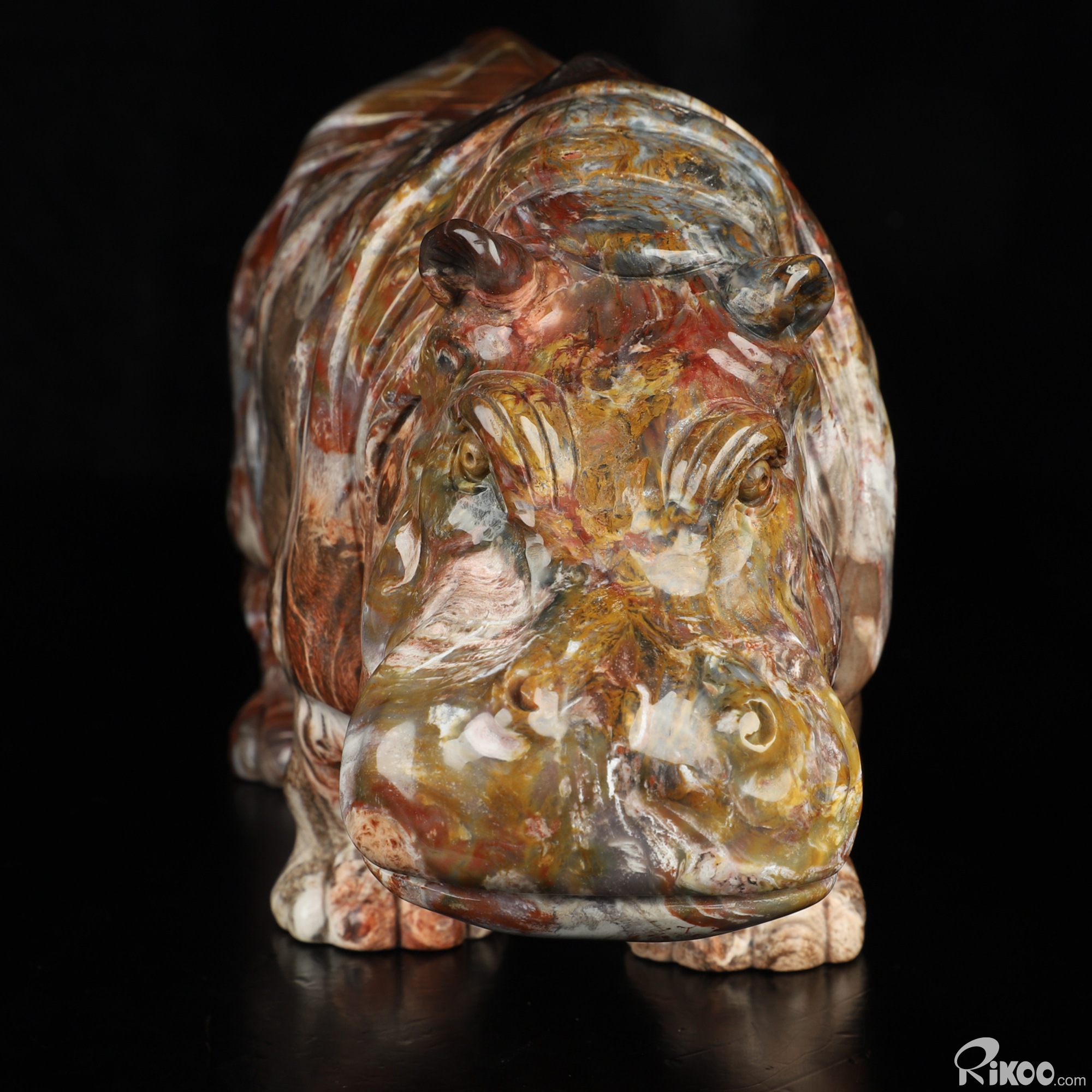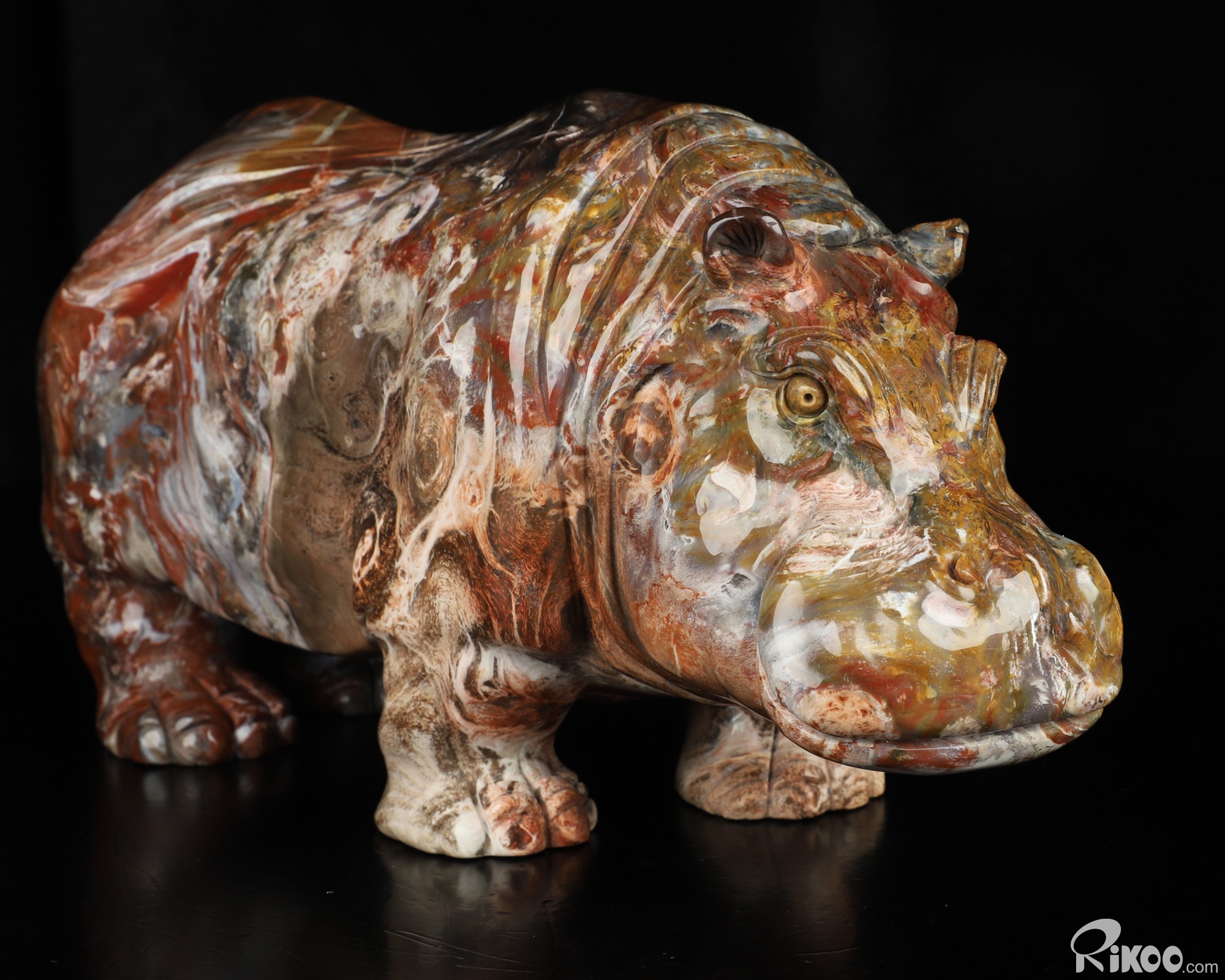 Awesome 10.8" Petrified Wood Hand Carved Crystal Hippo Sculpture, Crystal Healing