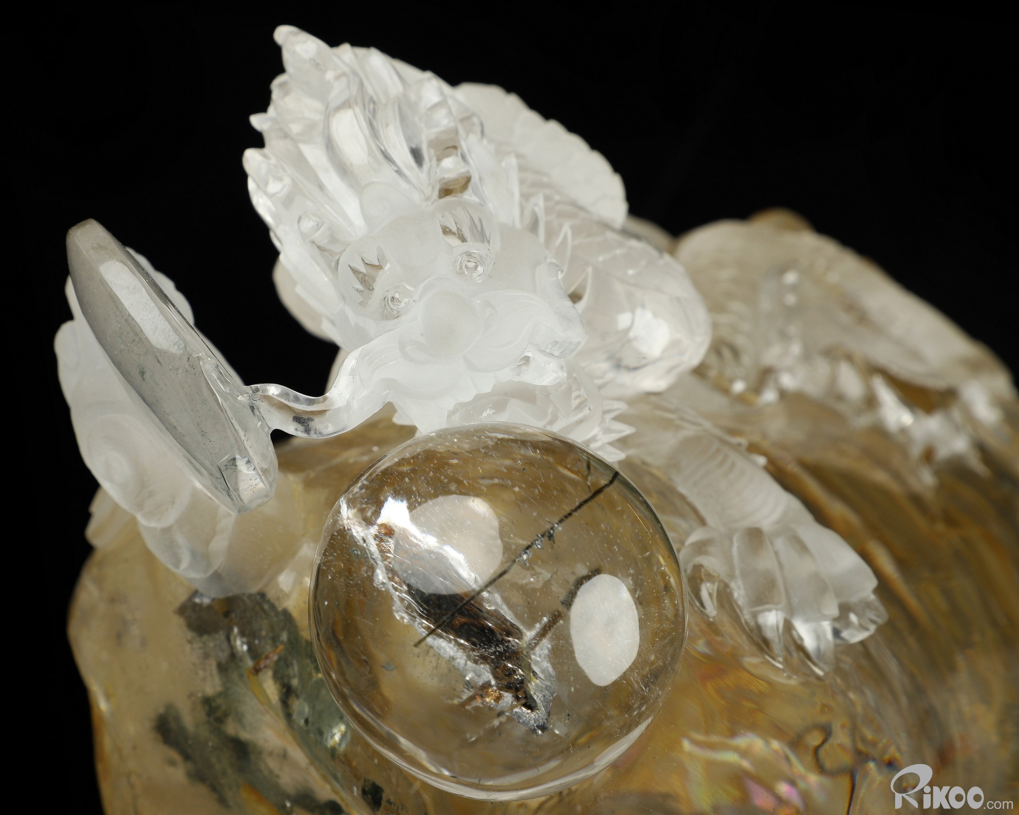 11.1" Quartz Rock Crystal Hand Carved Crystal Dragon Sculpture, Crystal Healing