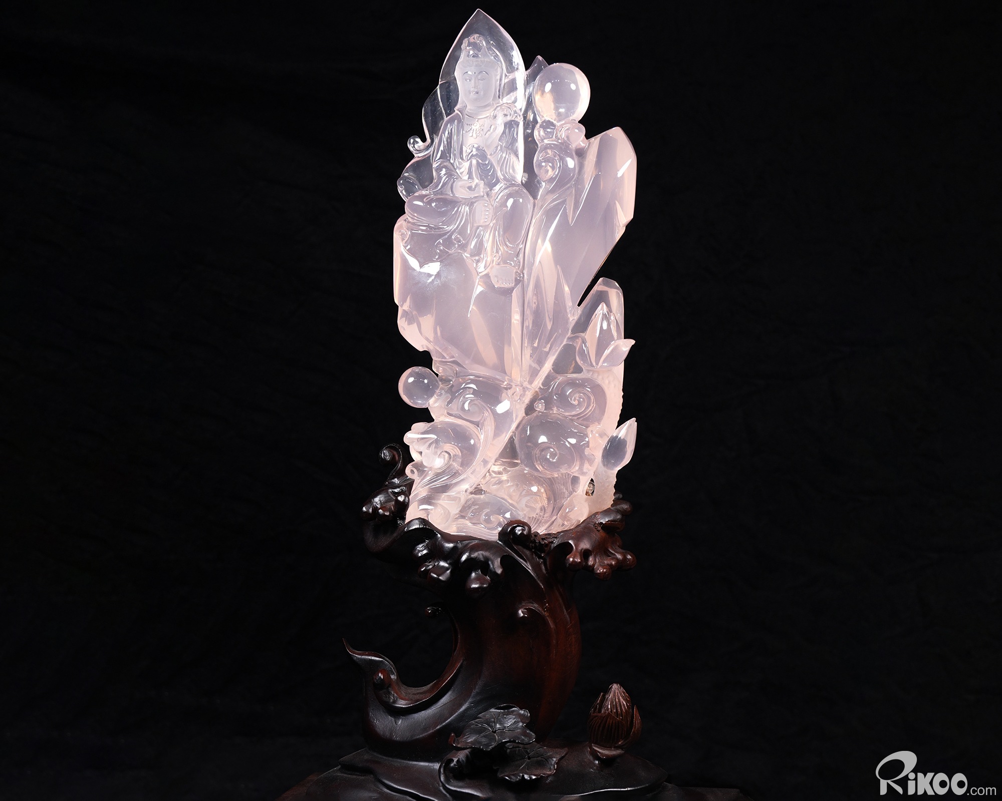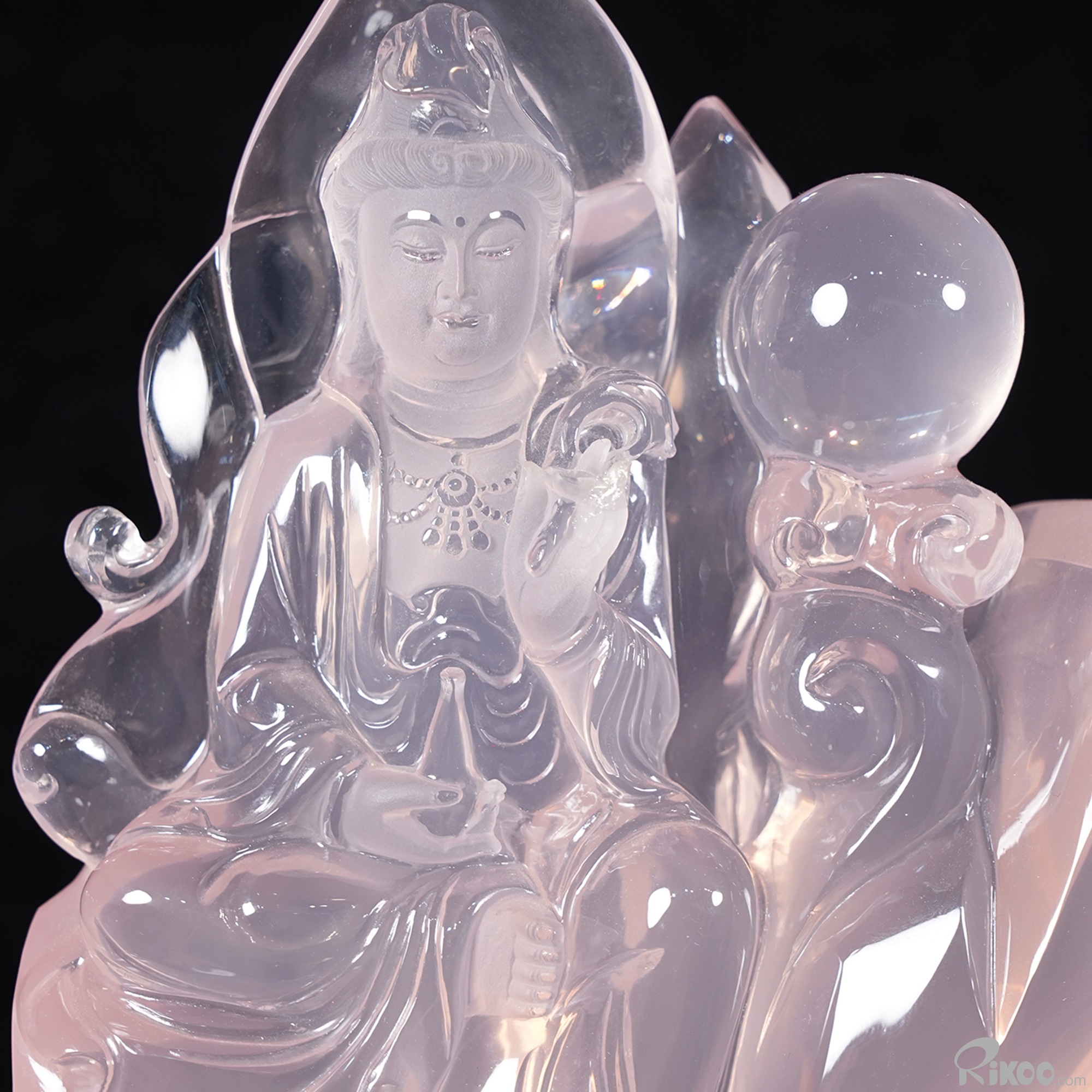 11.2" Rose Quartz Hand Carved Crystal Kwan-yin Sculpture, Crystal Healing