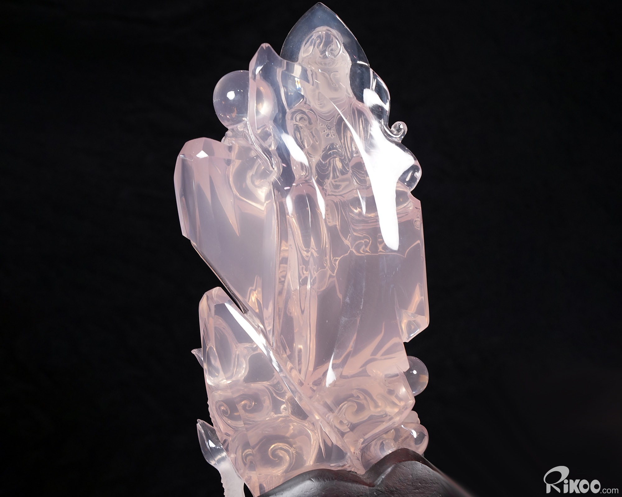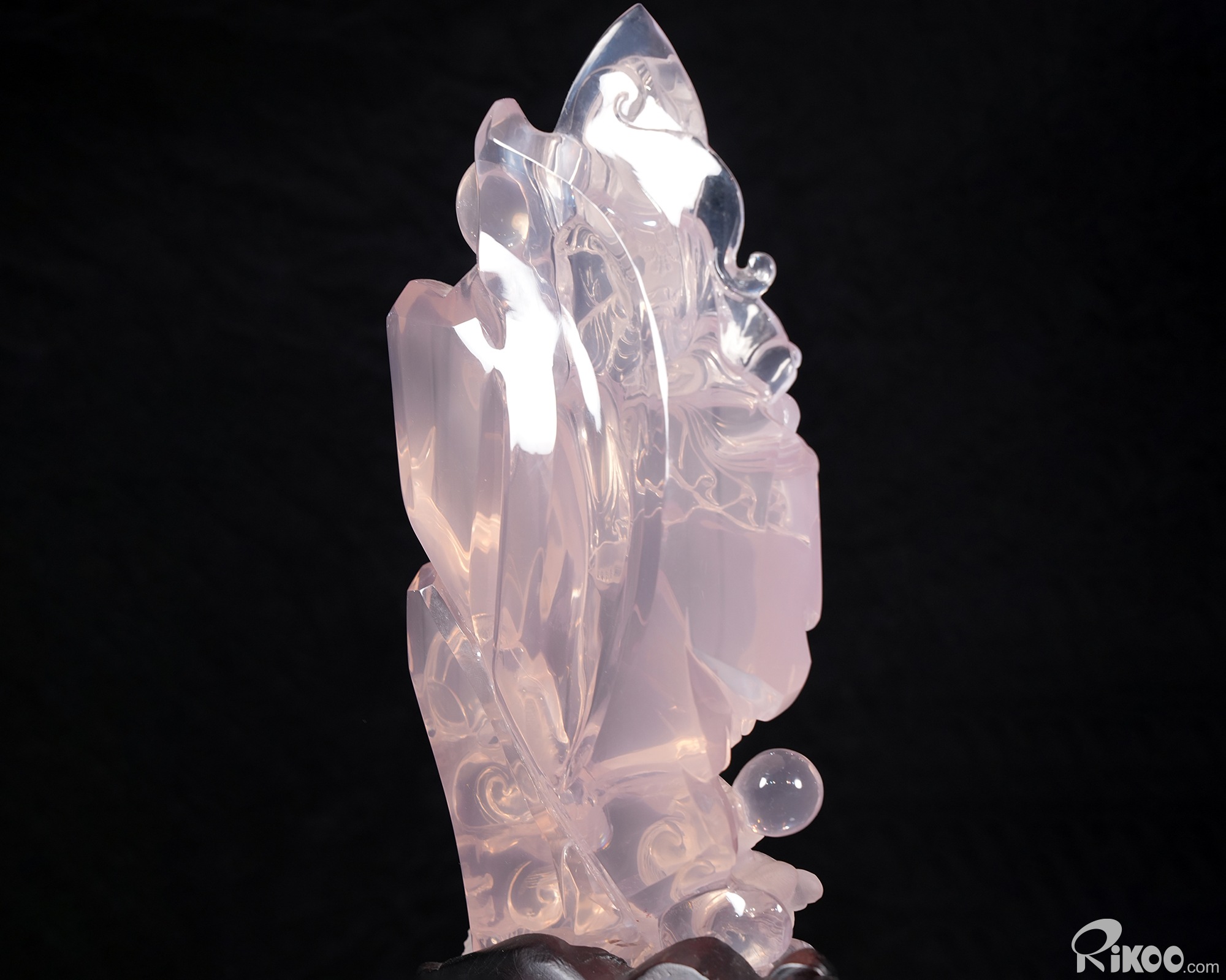 You are looking at a Rose Quartz sculpture. The sculpture is 11.2 inches long.