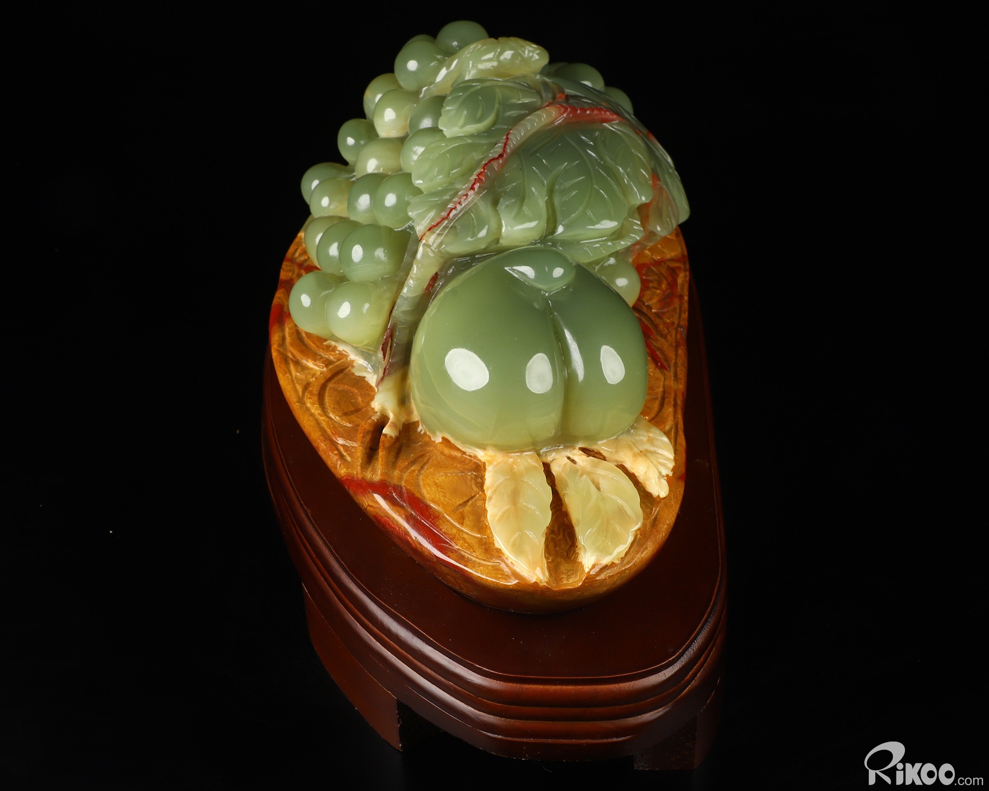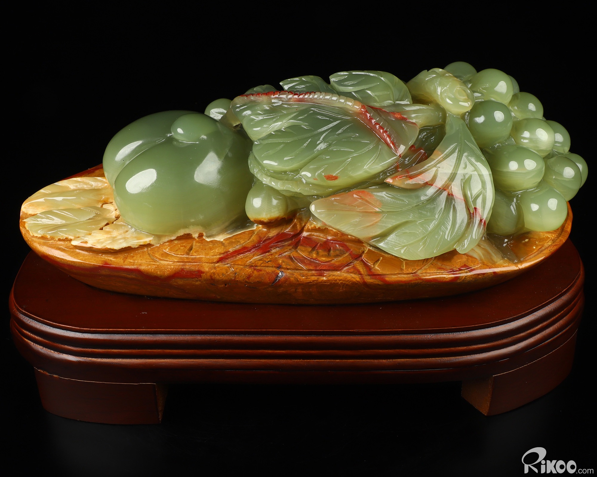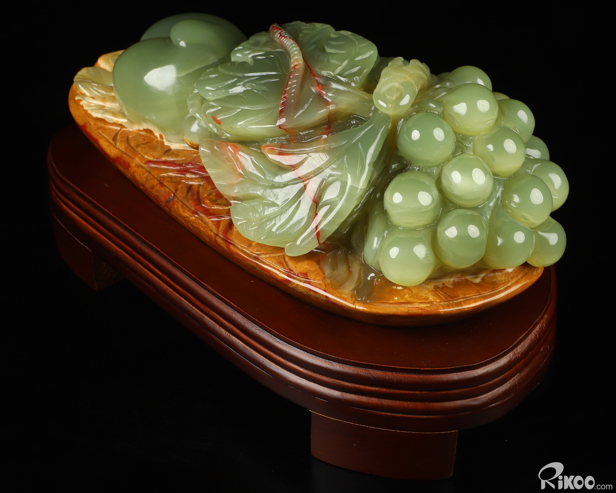 11.4" Afghanistan Jade Hand Carved Crystal Grape Sculpture, Crystal Healing