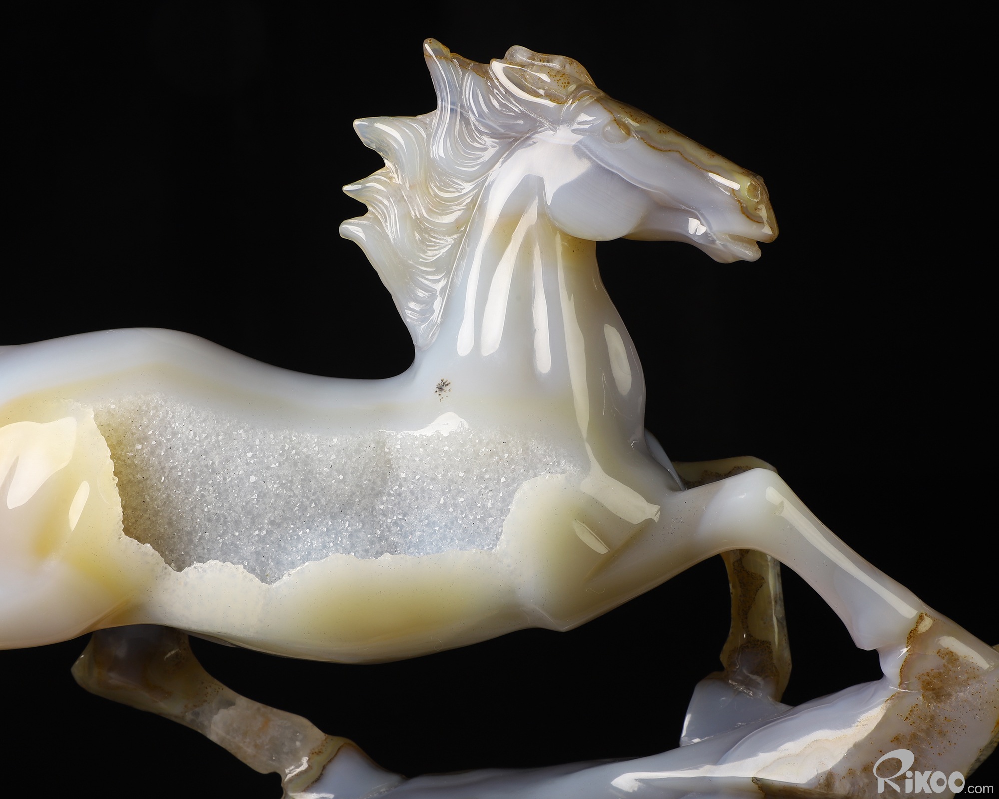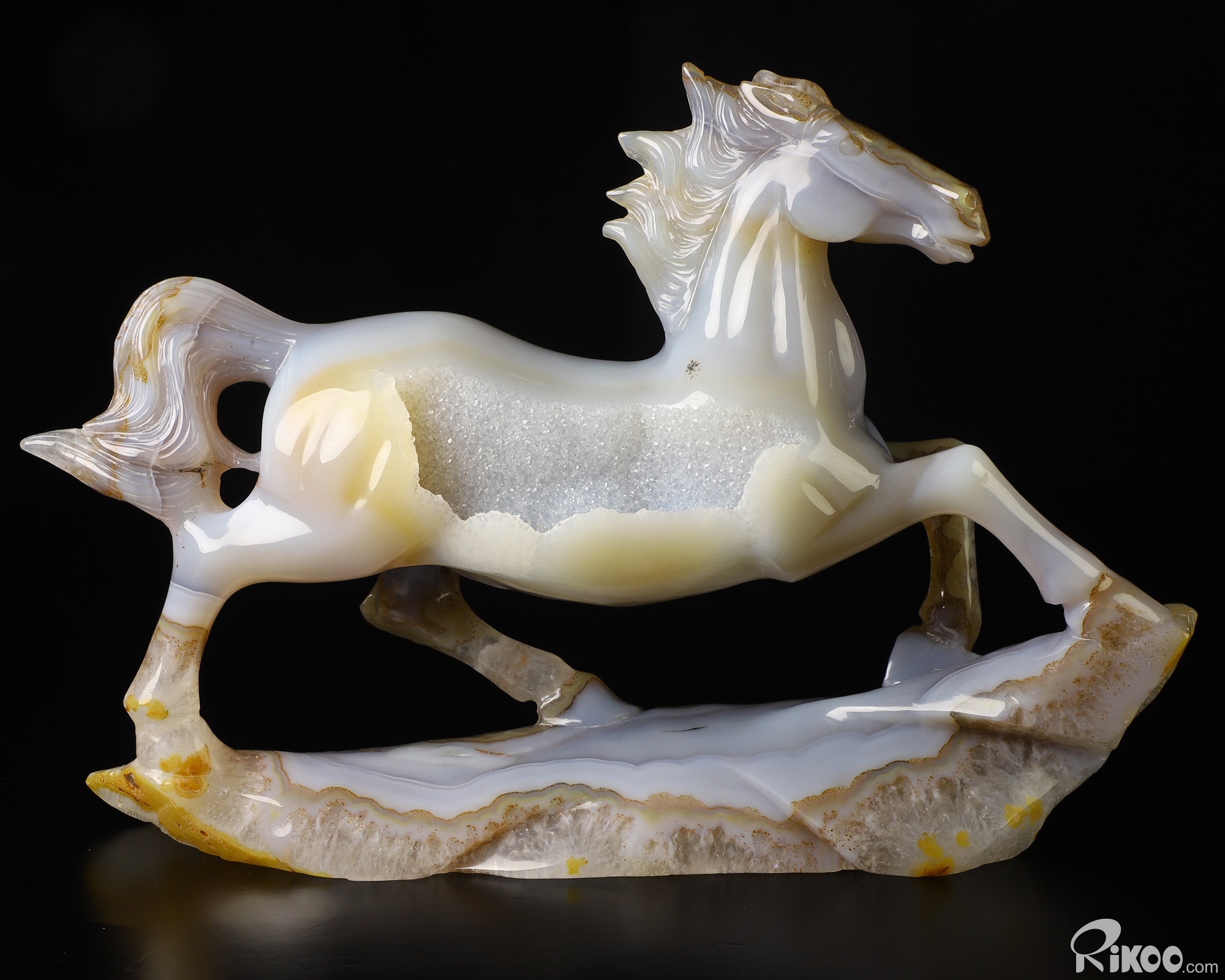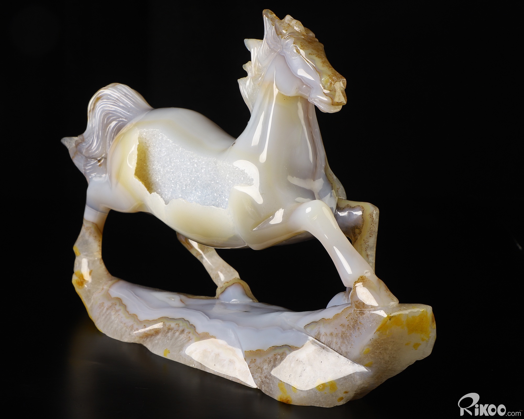 11.4" Agate Geode Hand Carved Crystal Horse Sculpture, Crystal Healing