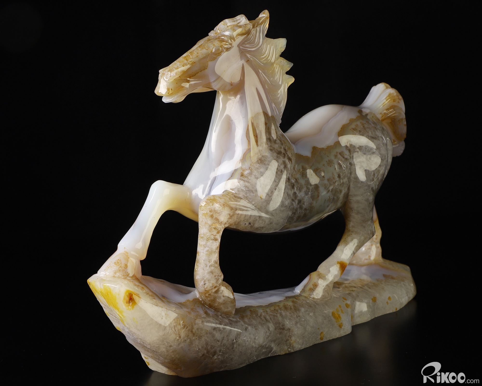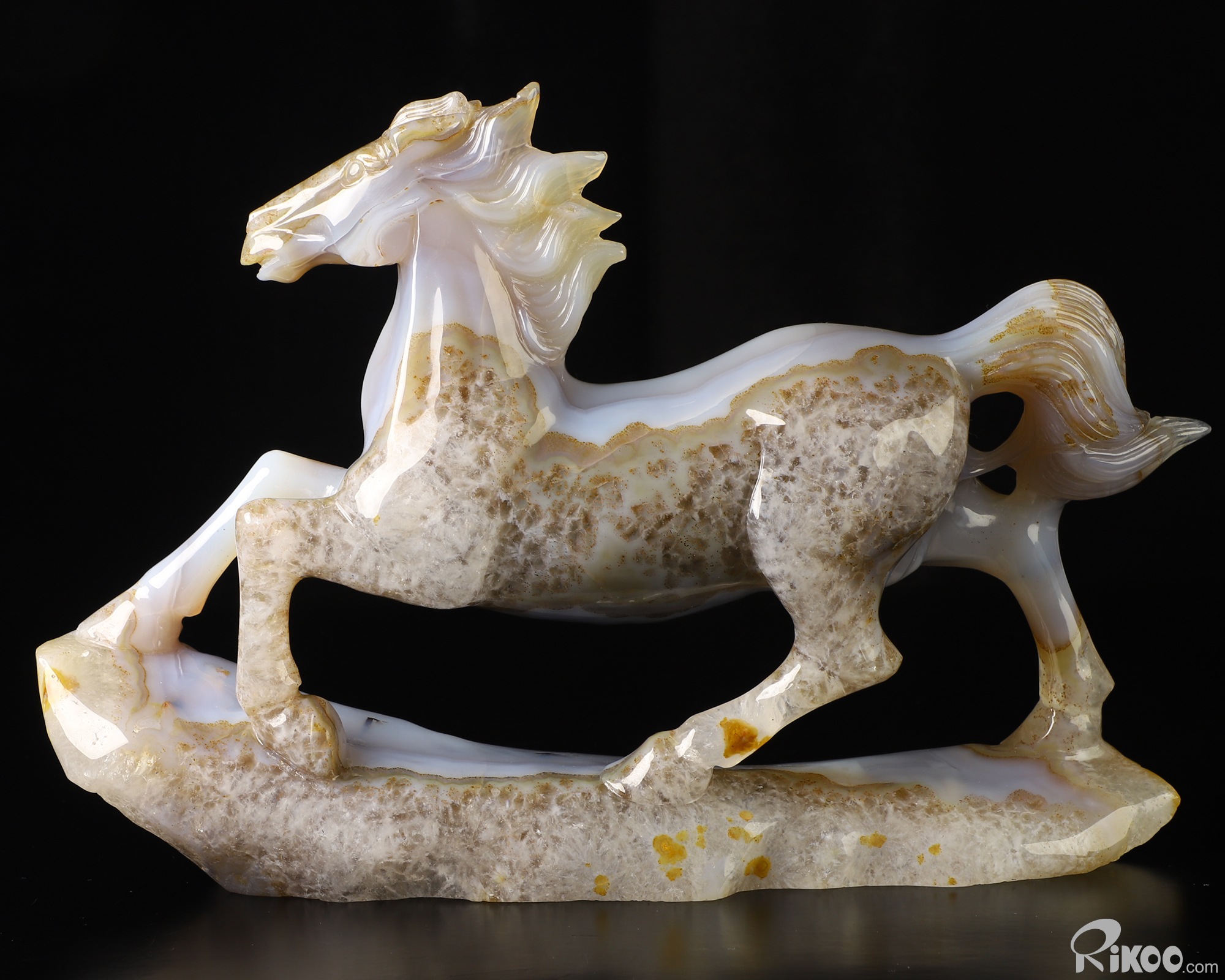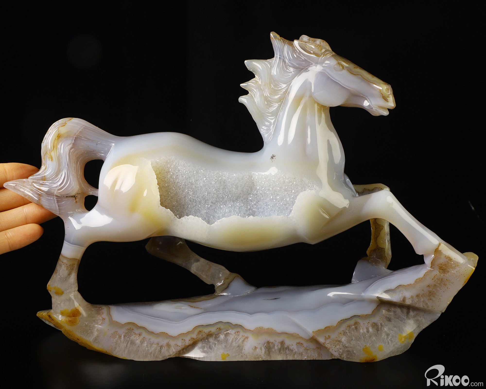 11.4" Agate Geode Hand Carved Crystal Horse Sculpture, Crystal Healing
