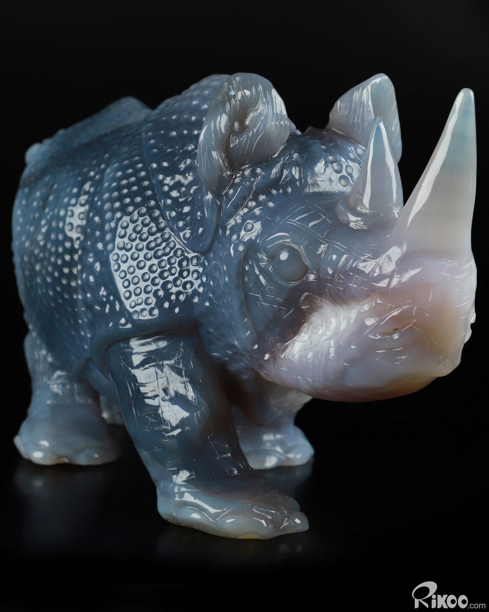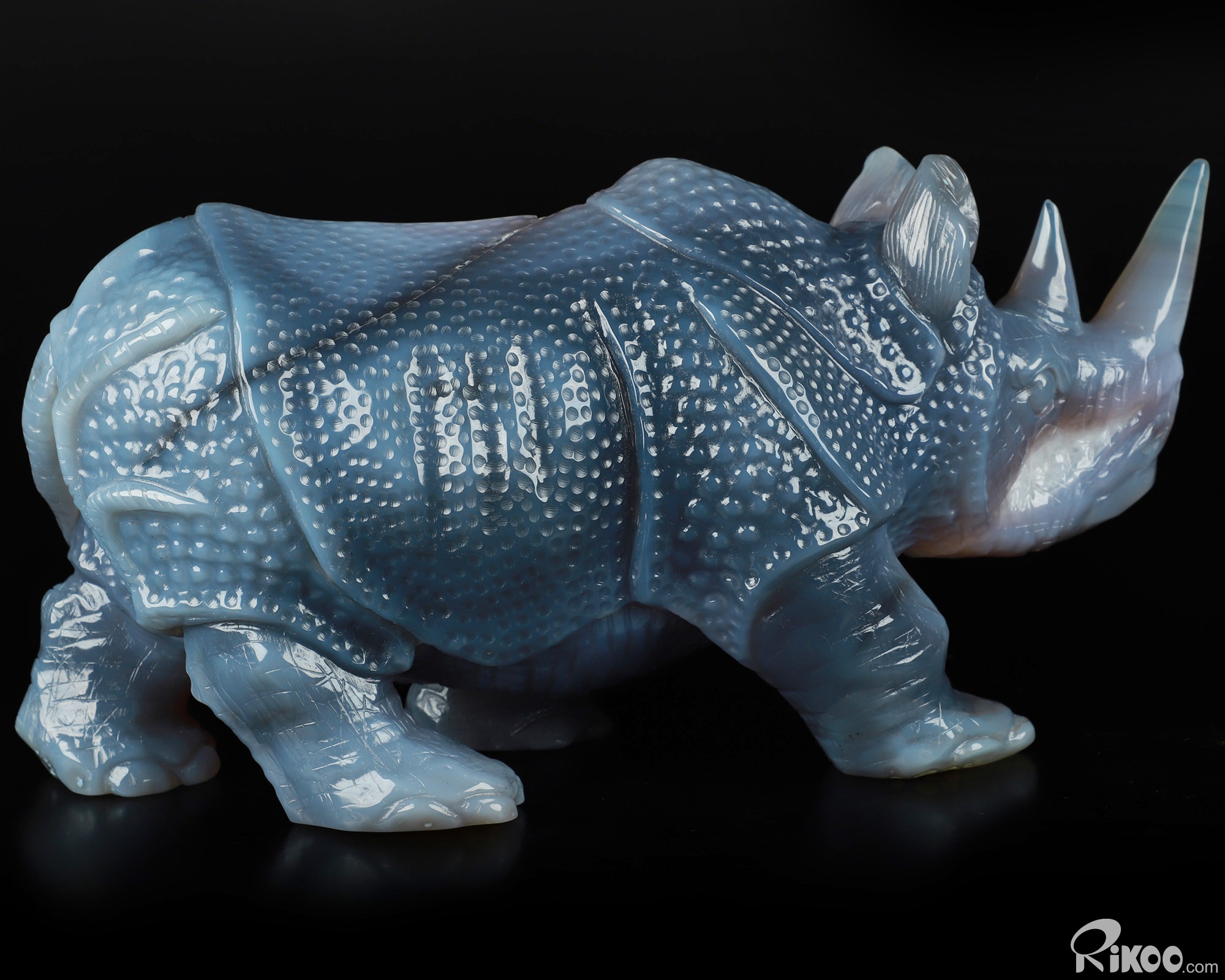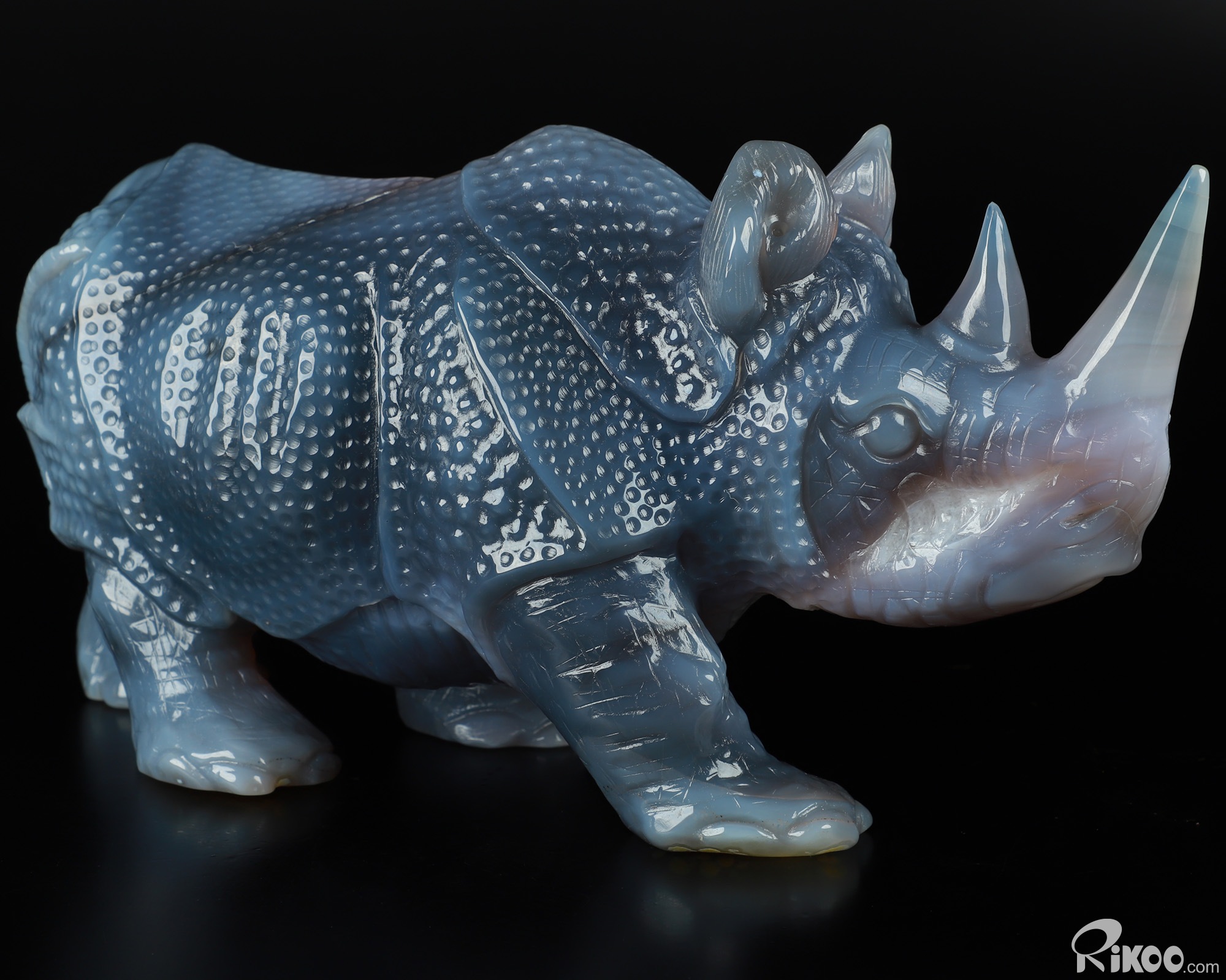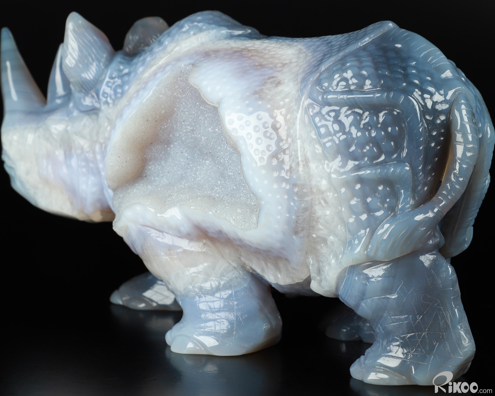 You are looking at a Agate Geode Rhinoceros. The Rhinoceros is 11.4 inches long from front to back.