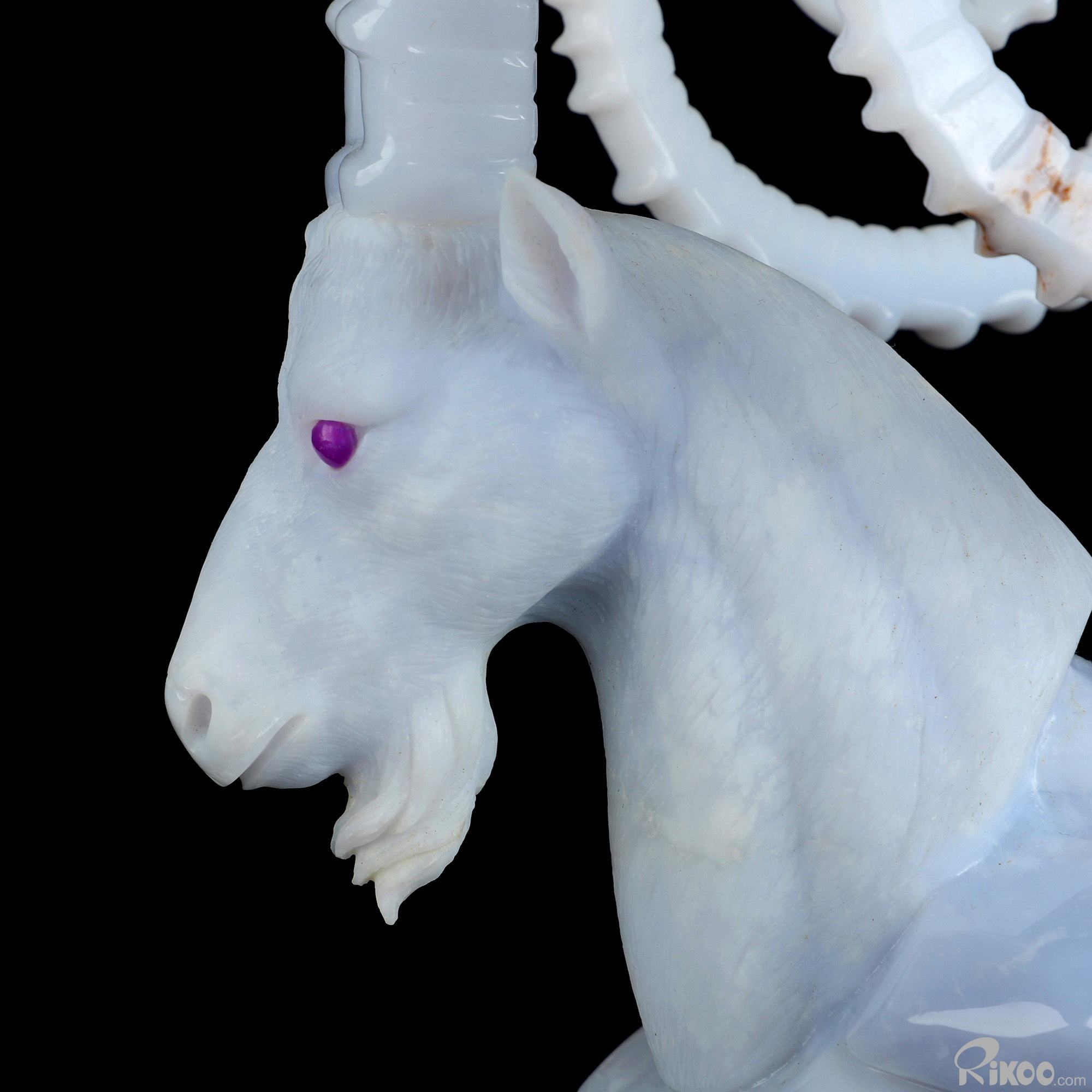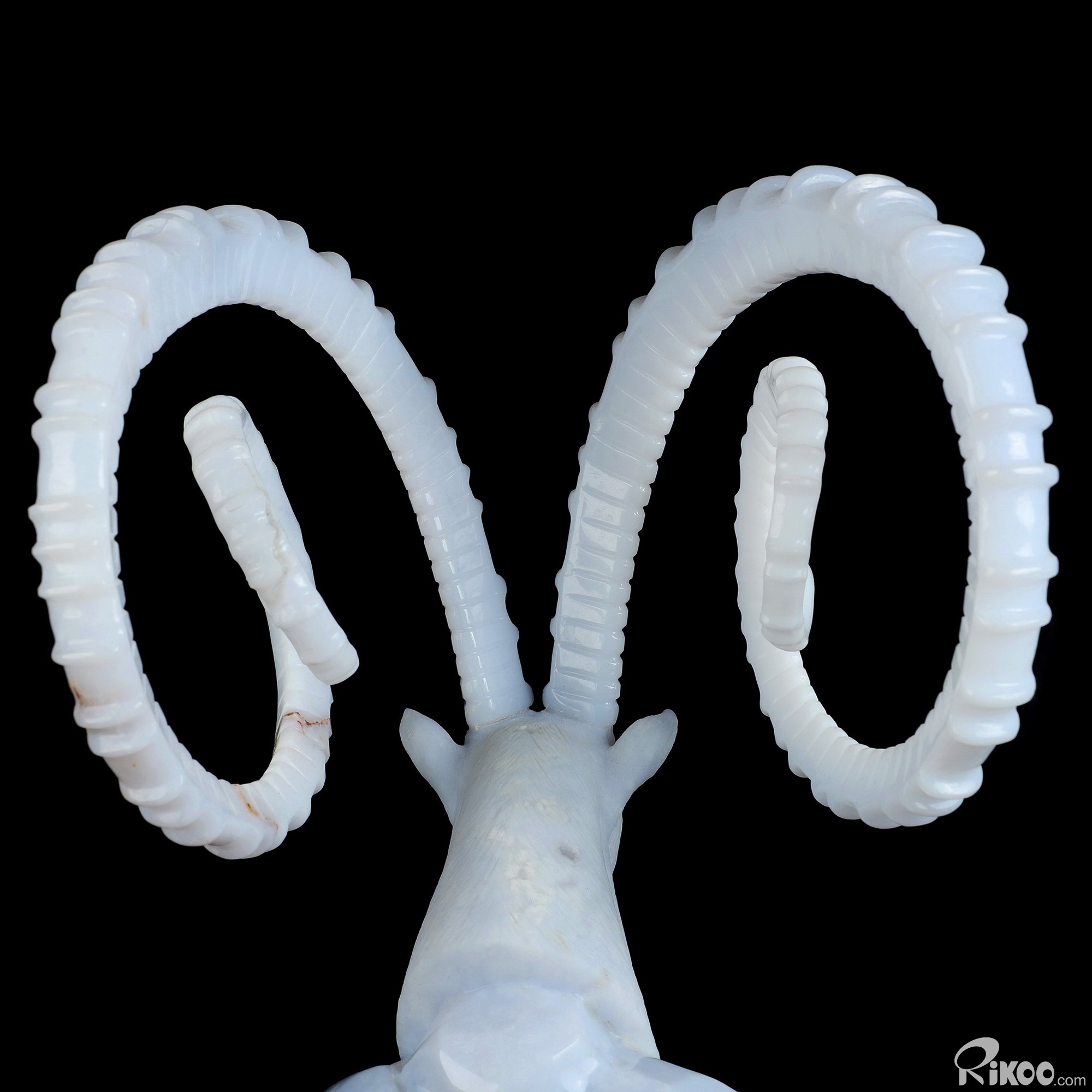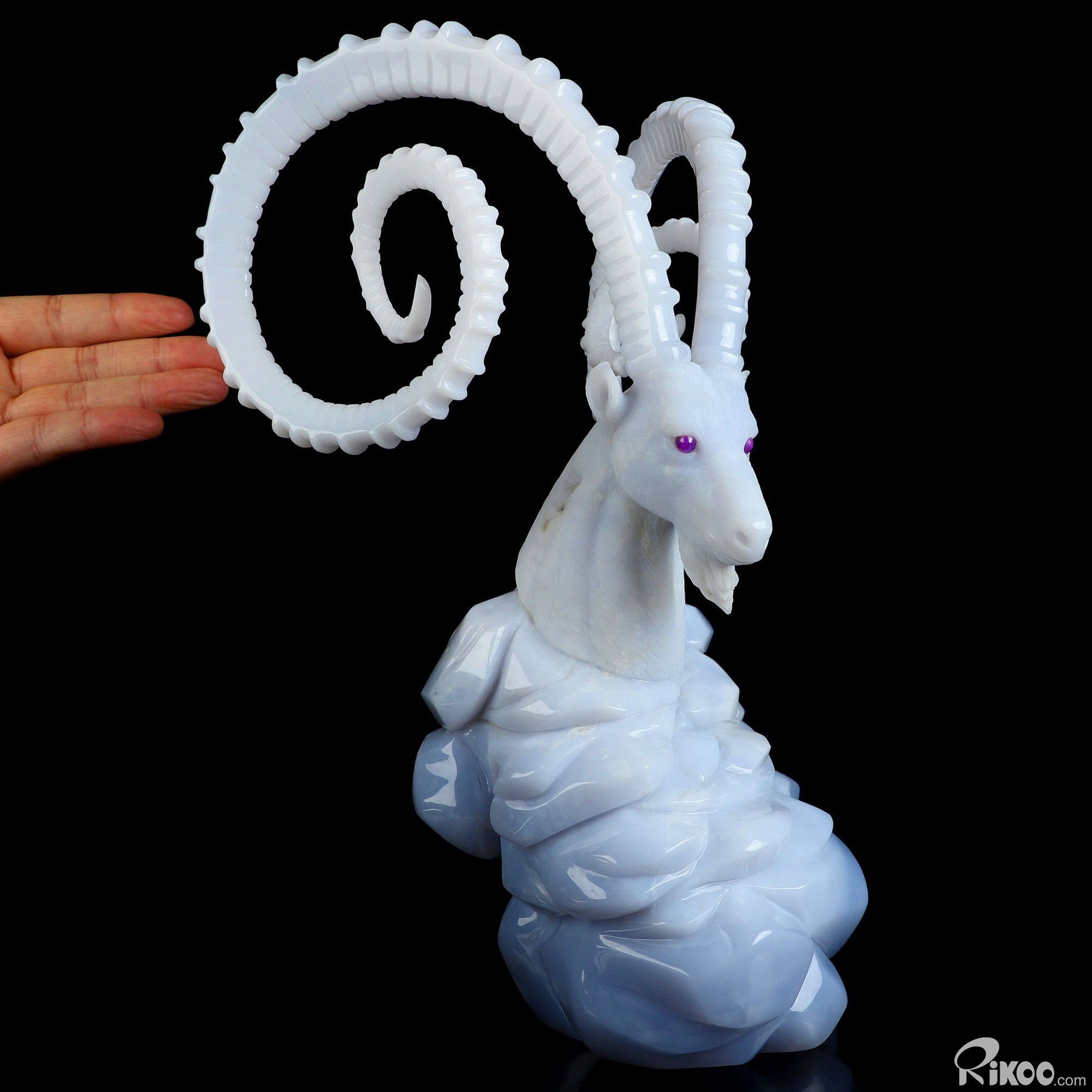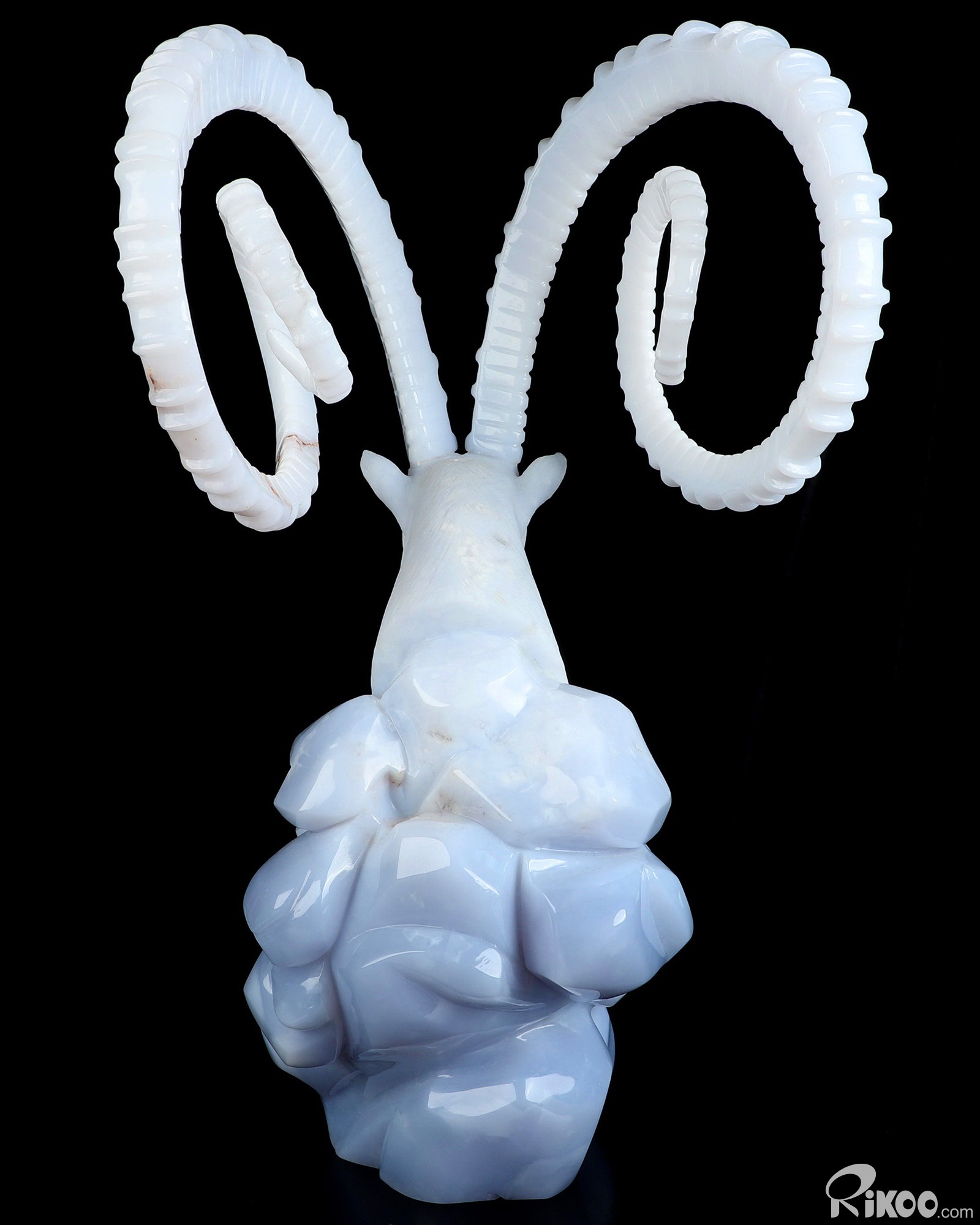 Please note: The horns are glued. You are looking at a Blue Chalcedony sculpture. The sculpture is 11.6 inches long.