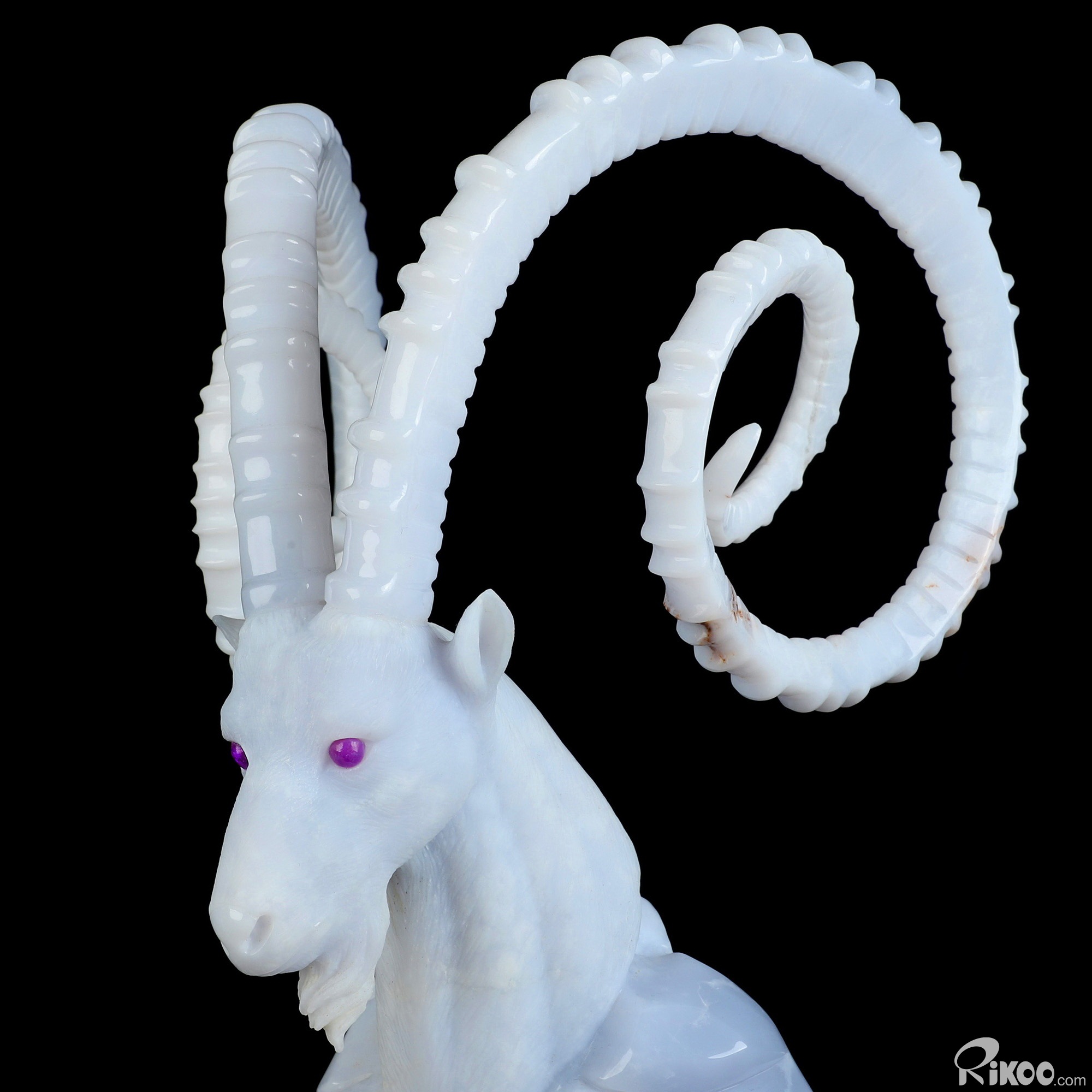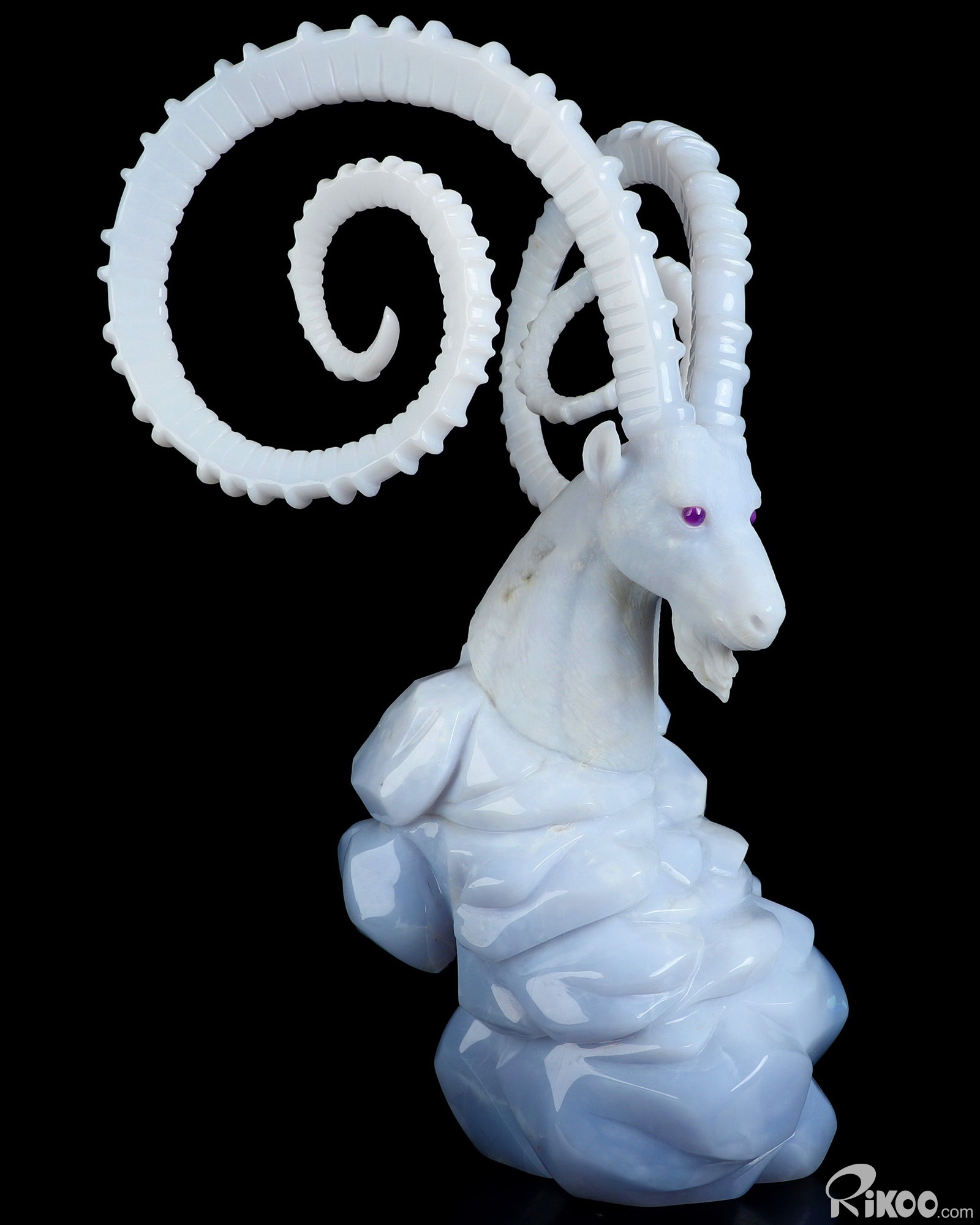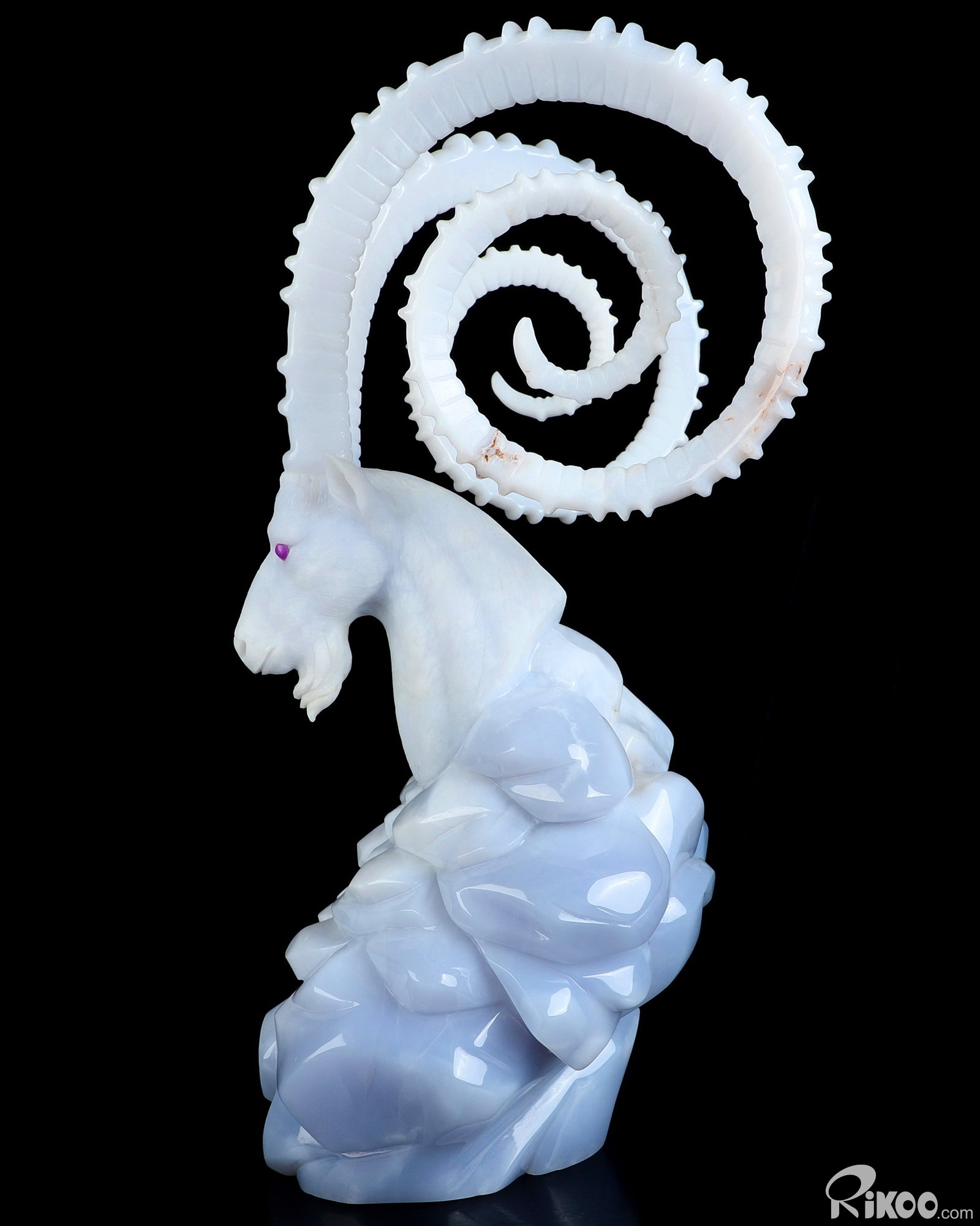 Please note: The horns are glued. You are looking at a Blue Chalcedony sculpture. The sculpture is 11.6 inches long.