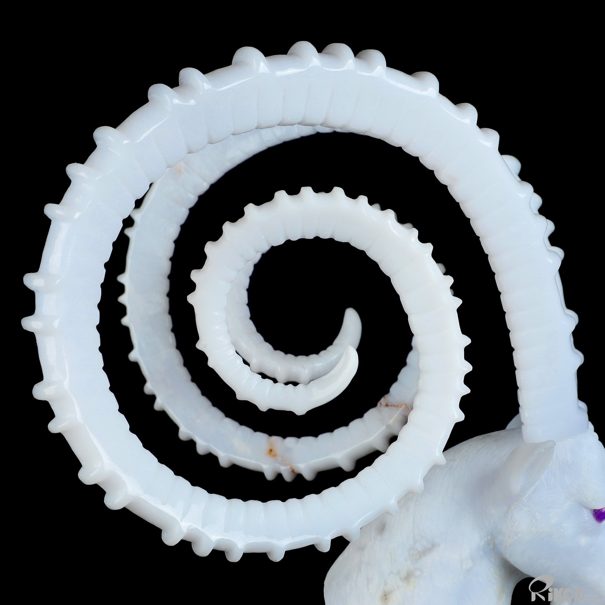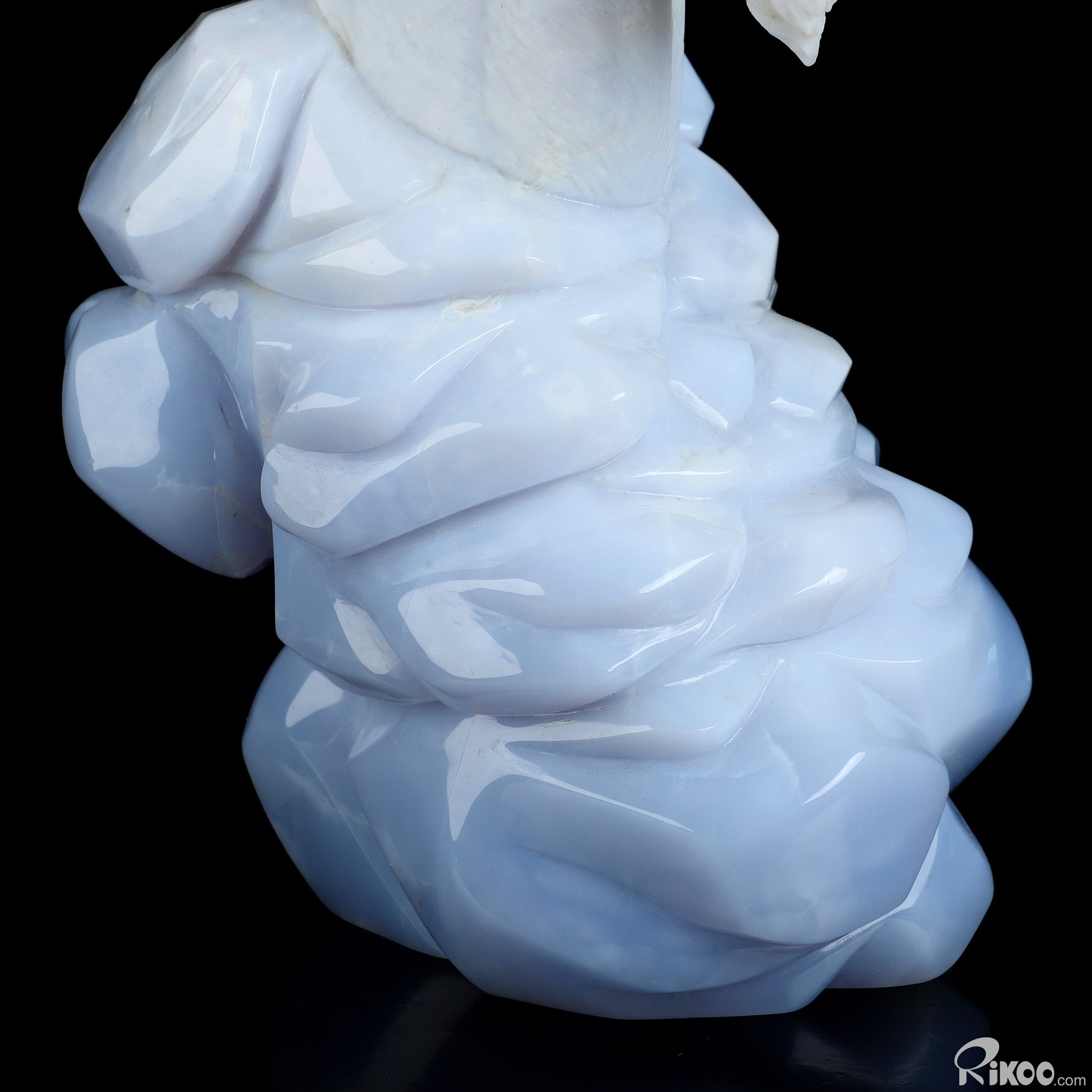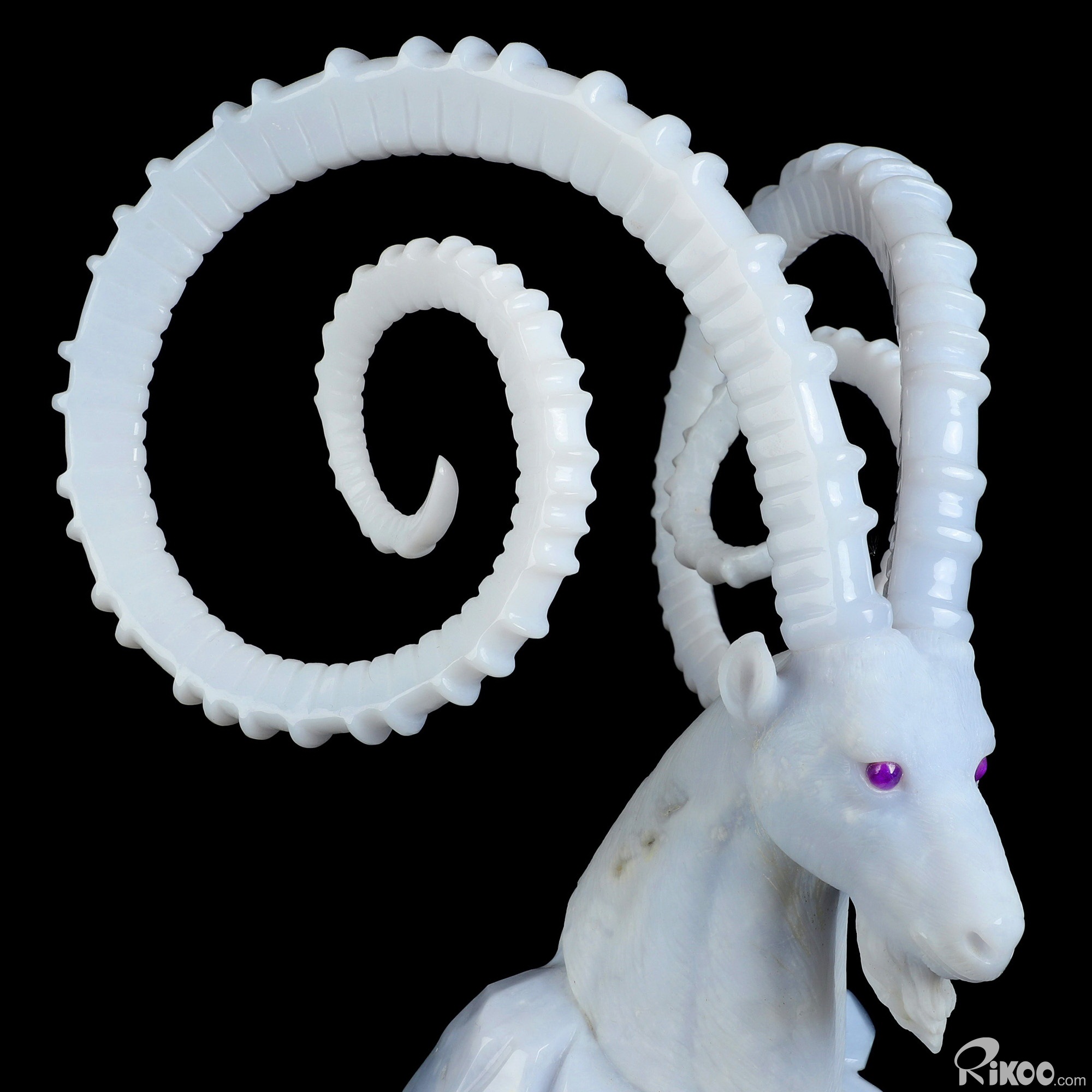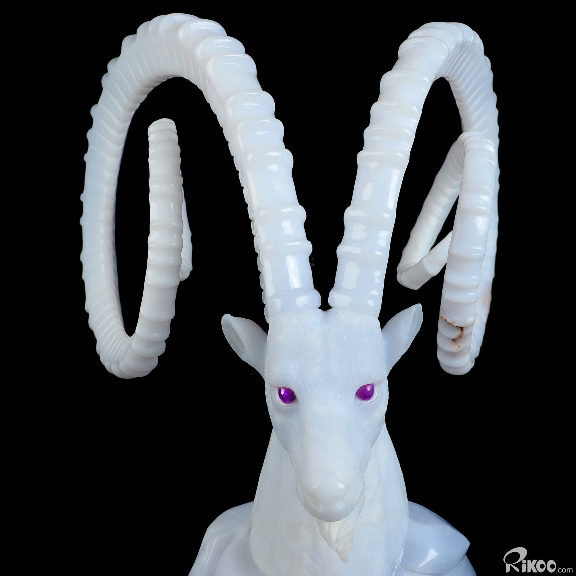 Please note: The horns are glued. You are looking at a Blue Chalcedony sculpture. The sculpture is 11.6 inches long.