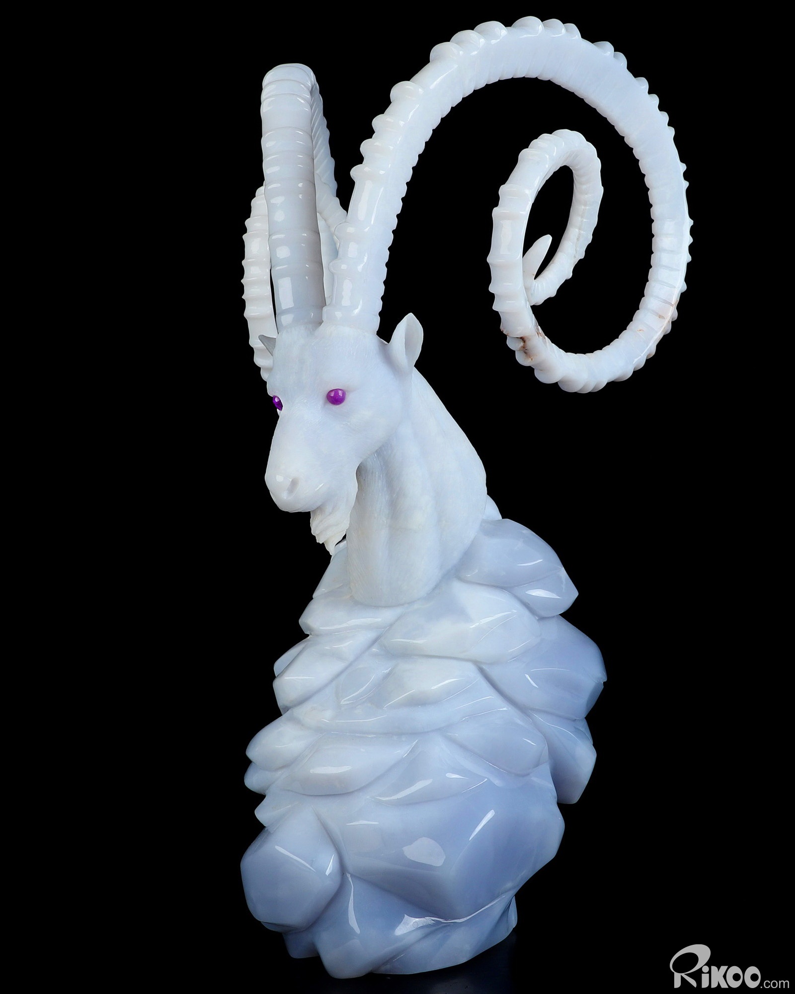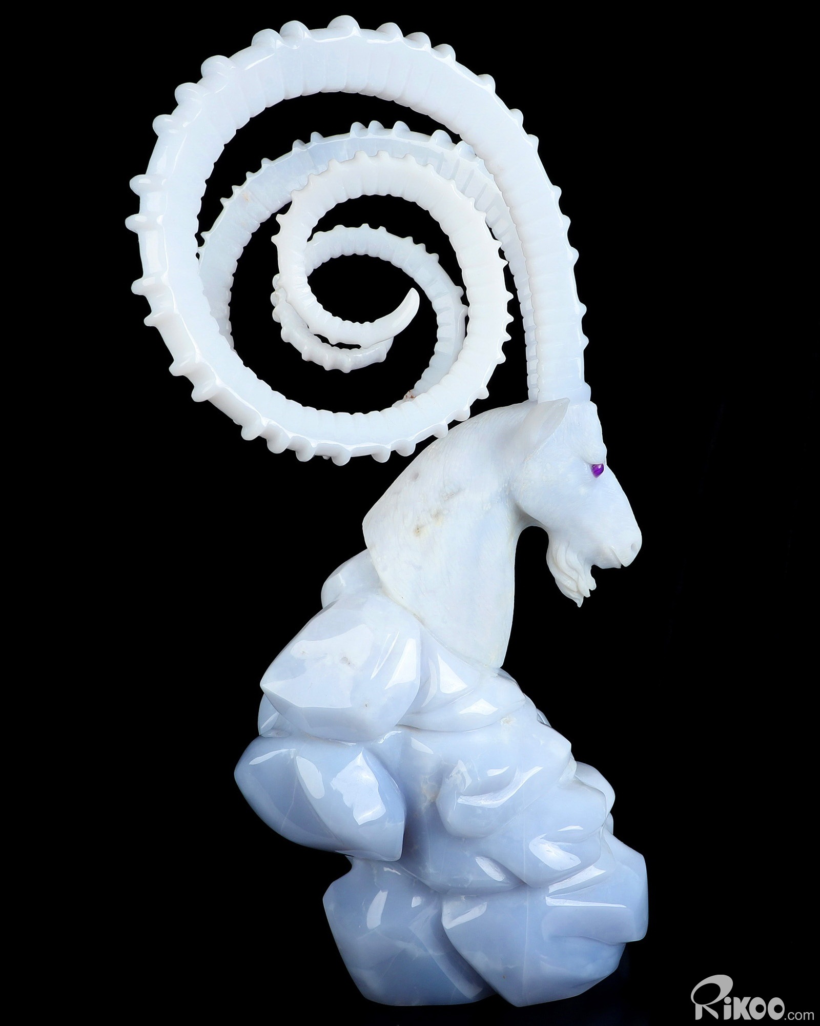 11.6" Blue Chalcedony Hand Carved Crystal Nubian Ibex with Sugilite Eyes Sculpture, Crystal Healing
